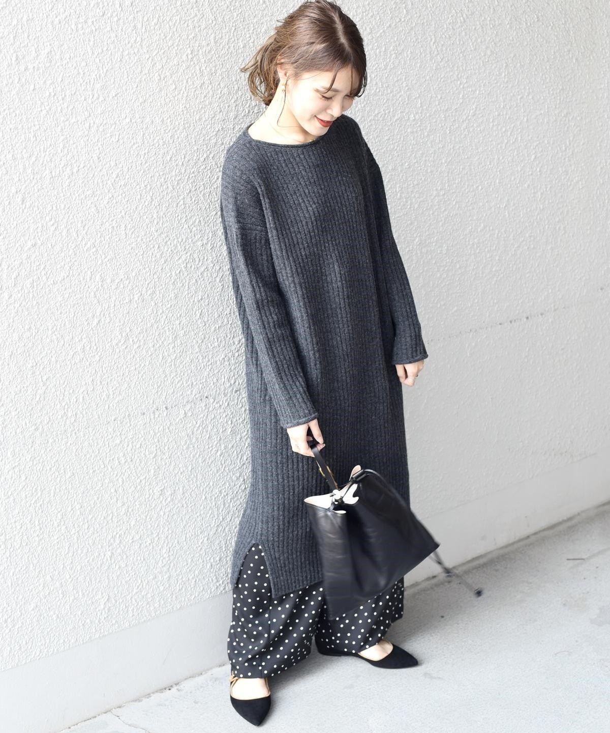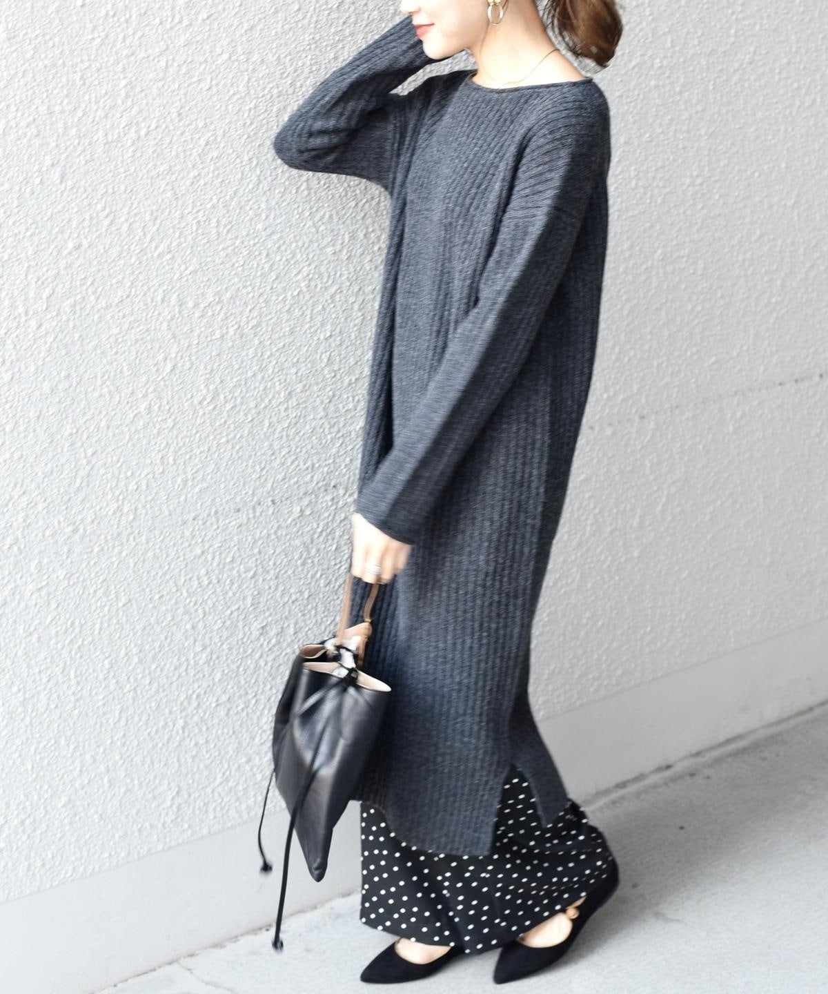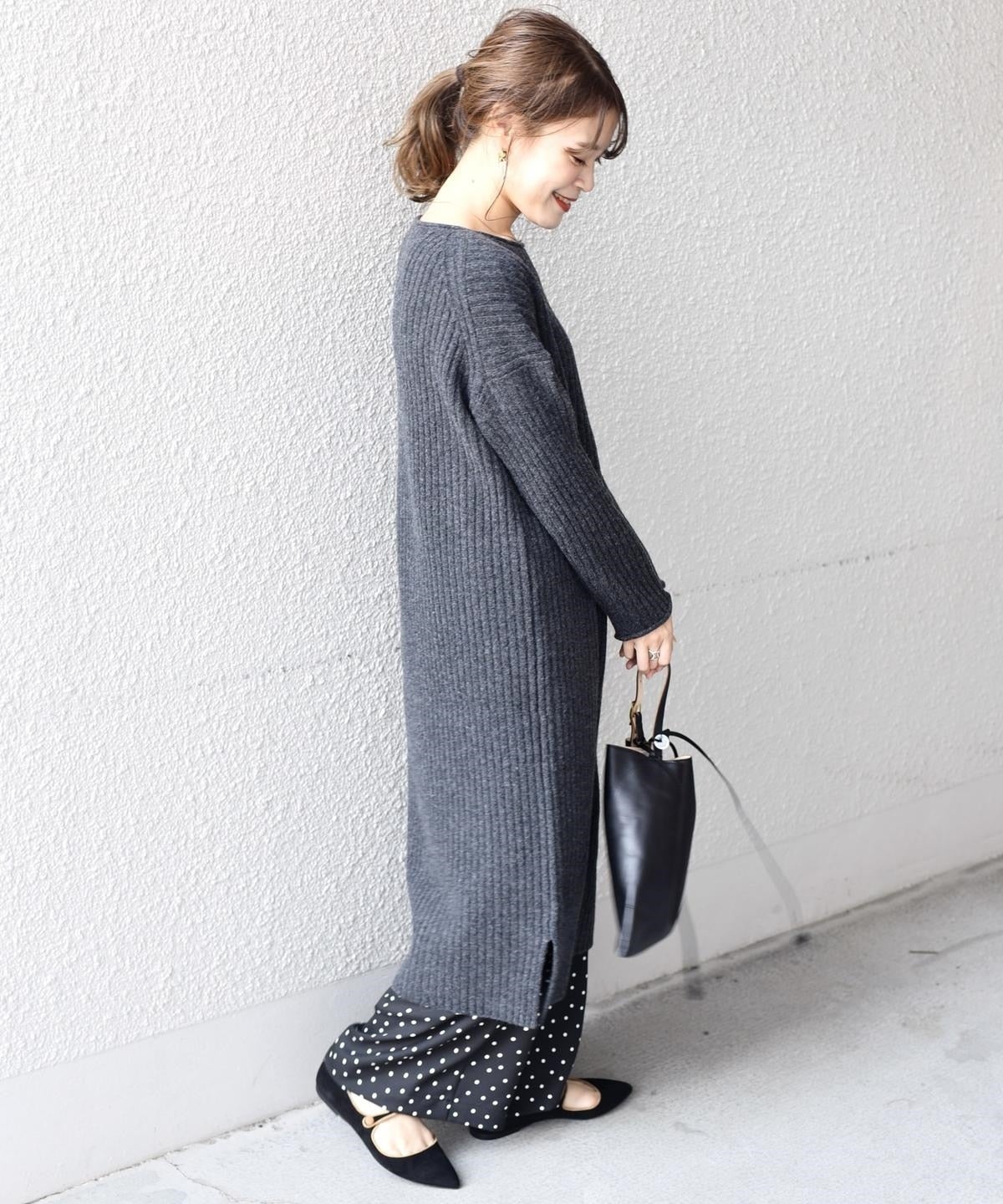 コメント:タイツにブーツ合わせでフェミニンにはもちろん、パンツとレイヤードしてカジュアルめにも着られる便利な一着です!