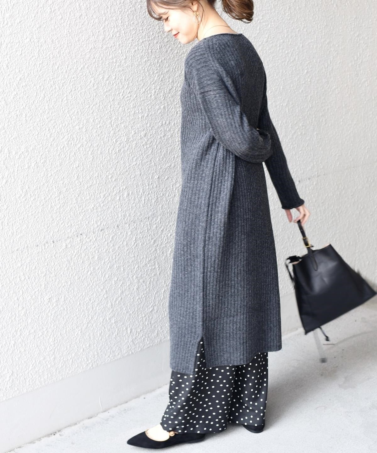 深すぎないサイドスリットで1枚ではもちろん、パンツを重ねても着用しやすい丈感がポイントです◎