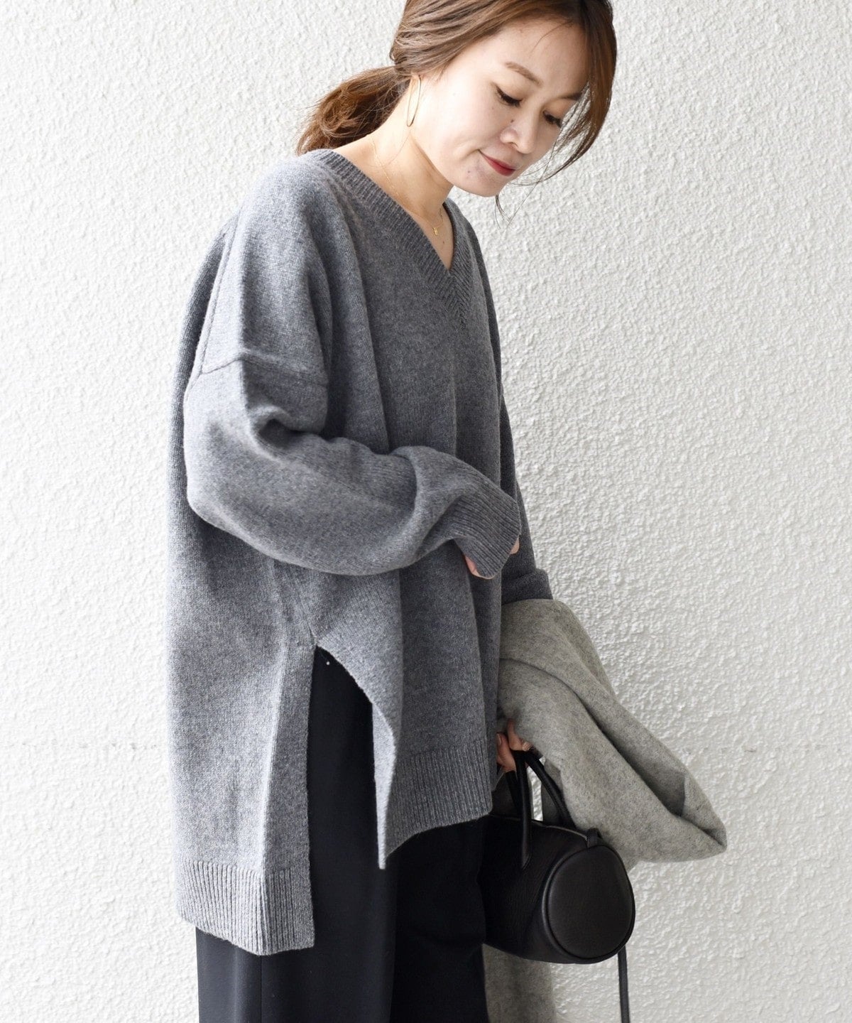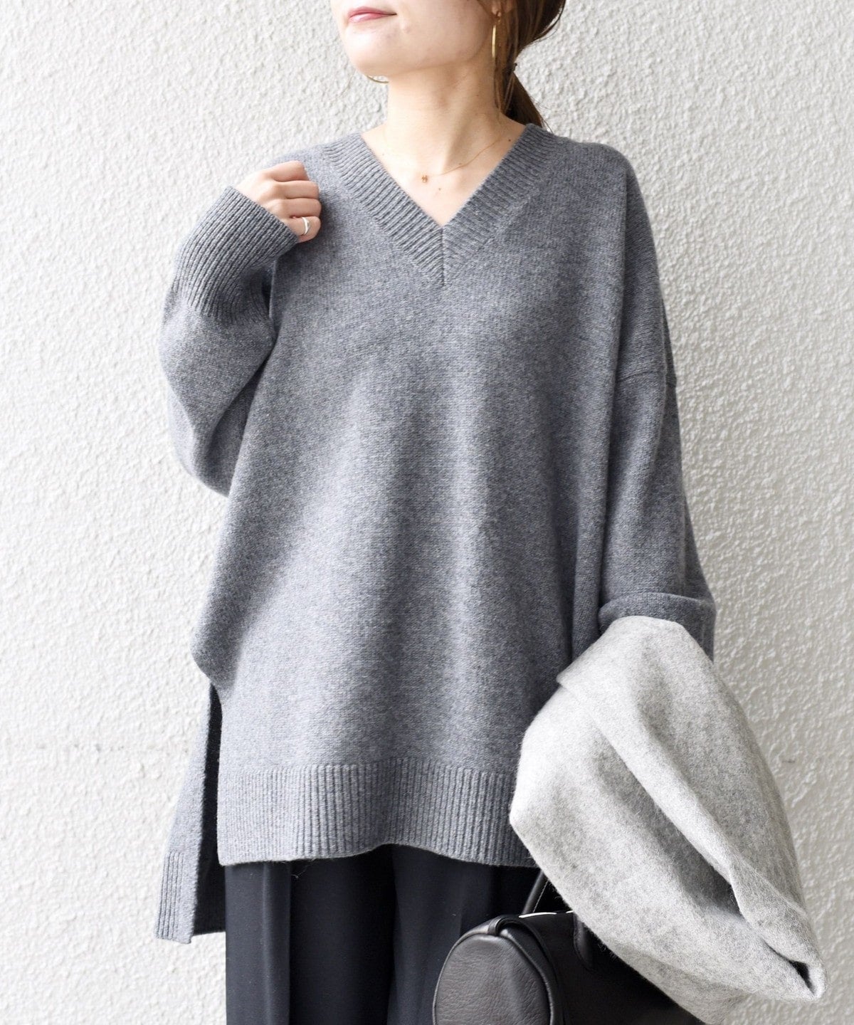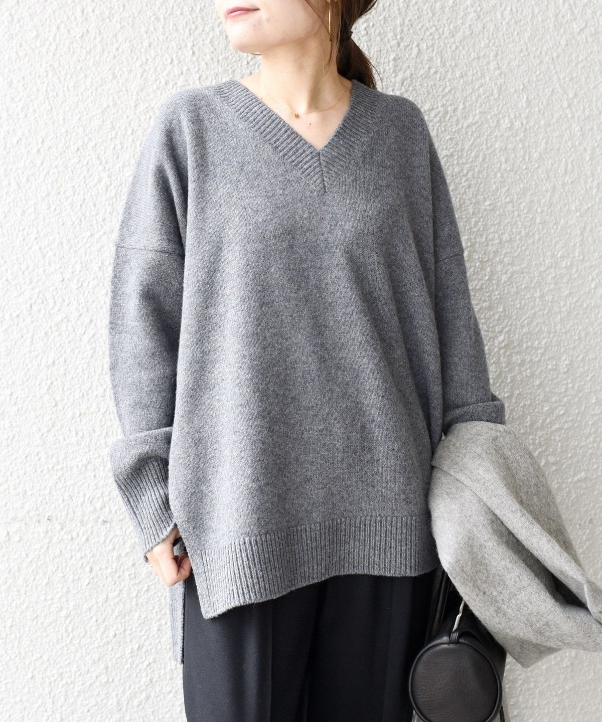 〈手洗い可能〉Vネックサイドスリットビッグプルオーバー