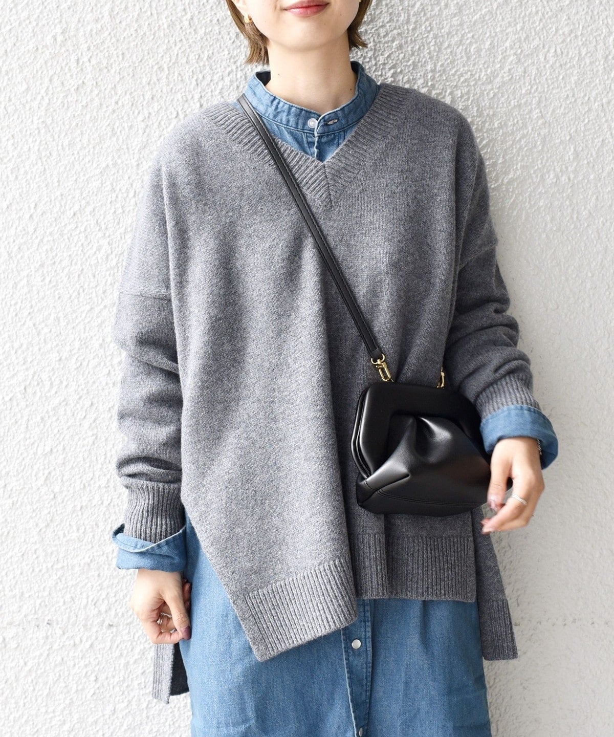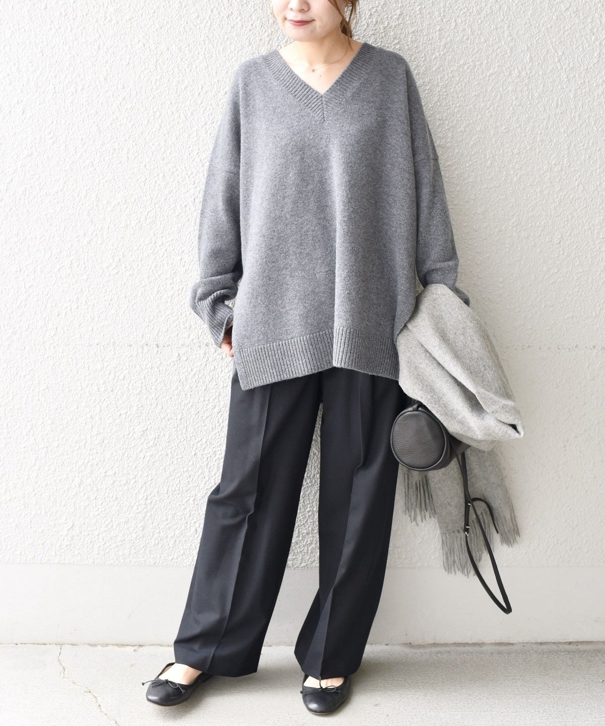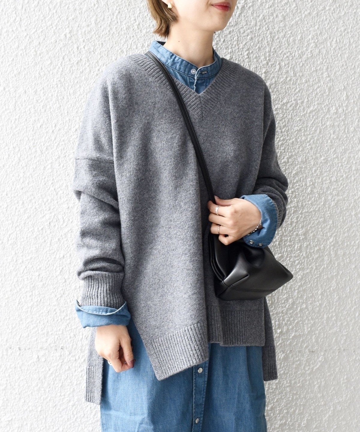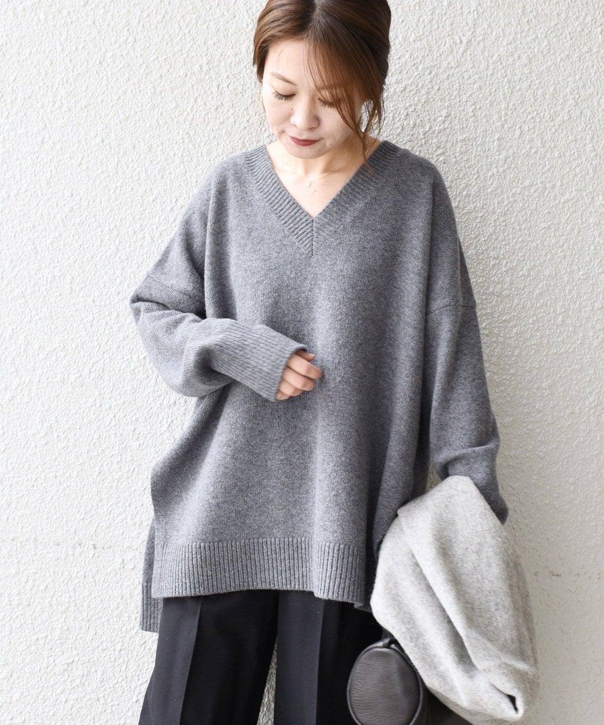 〈手洗い可能〉Vネックサイドスリットビッグプルオーバー