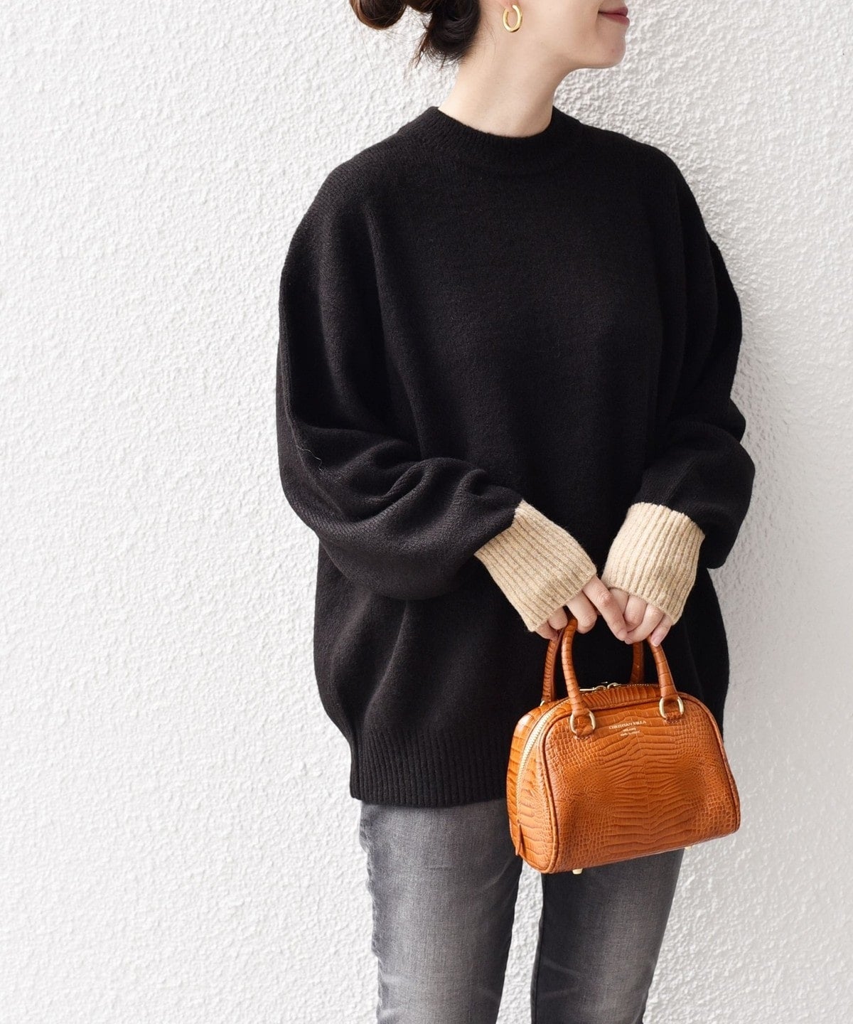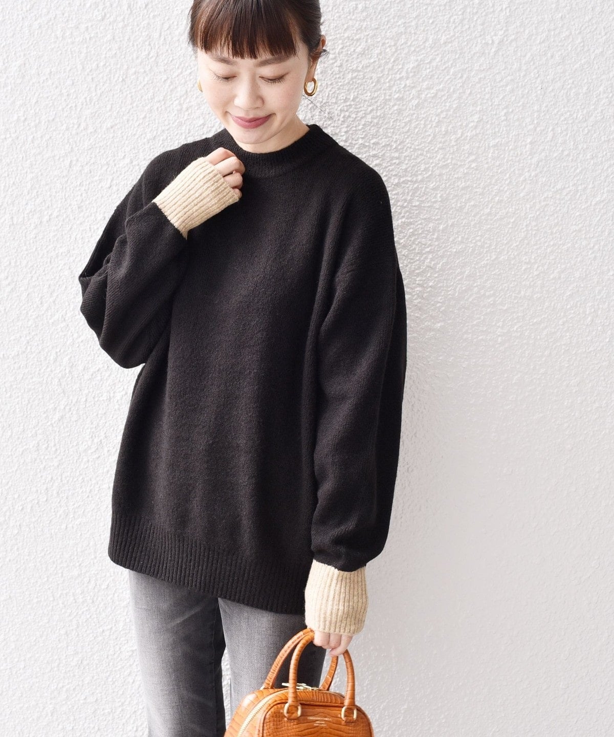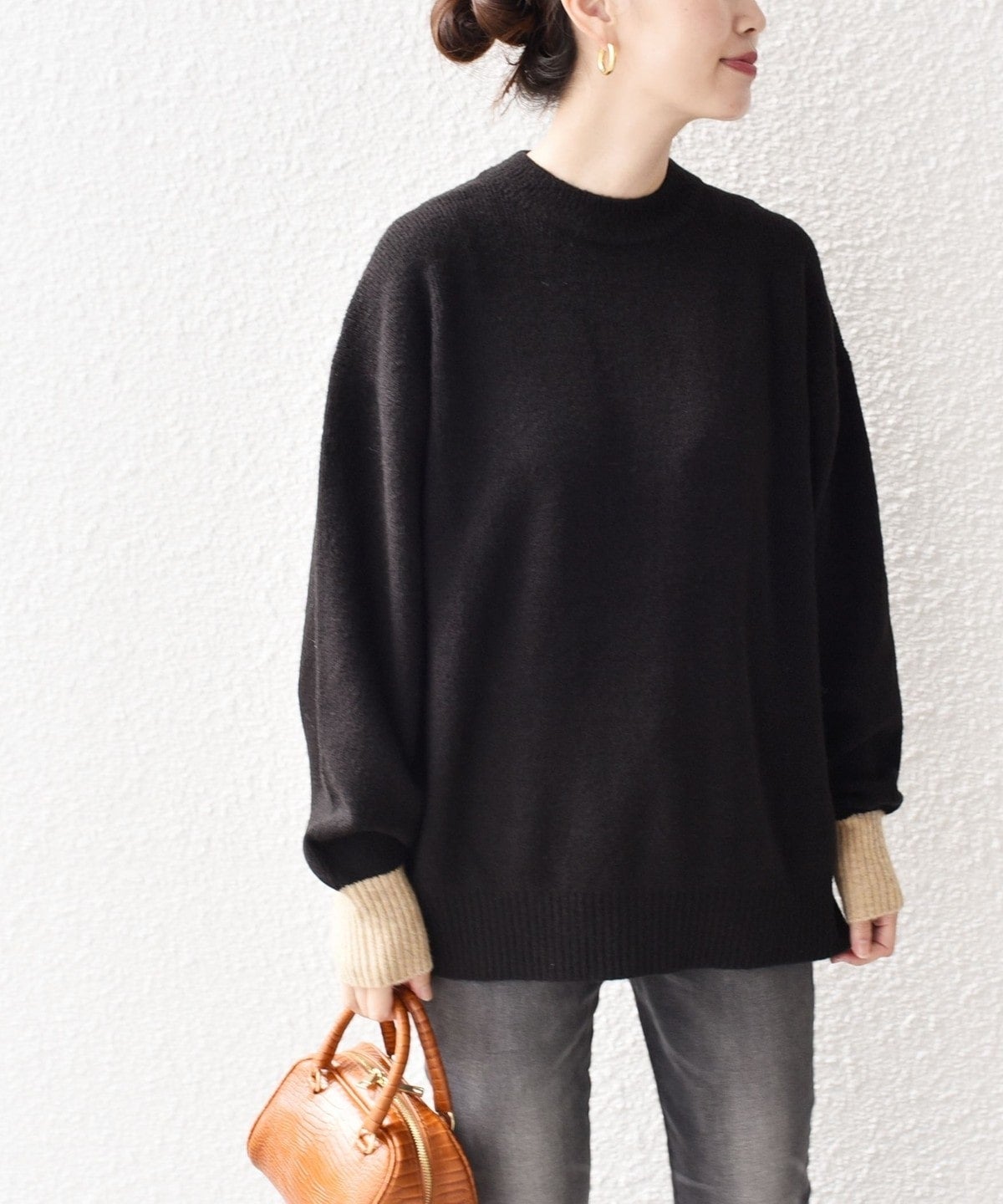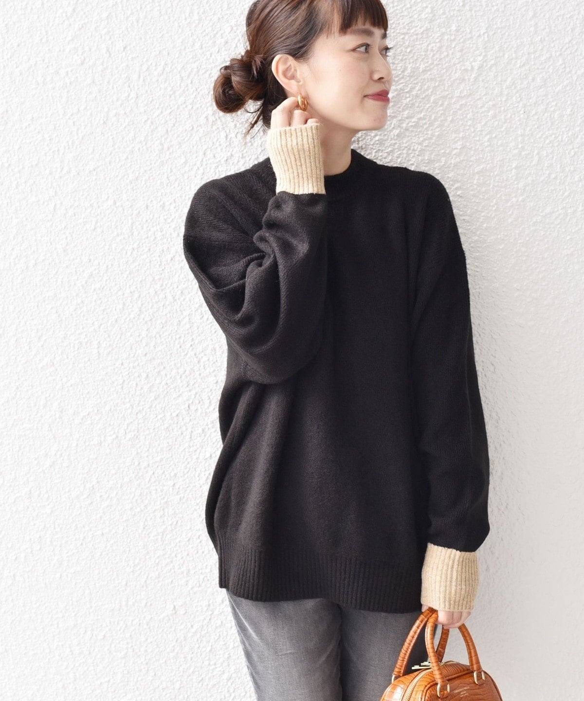 〈手洗い可能〉ヤクフィール袖配色ニットプルオーバー