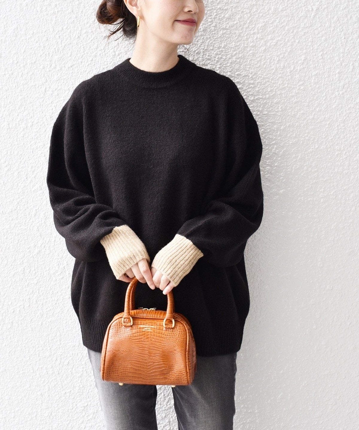 SMALLはショート丈なので、ハイウエストボトムやスカートで今年らしいコーディネートに。