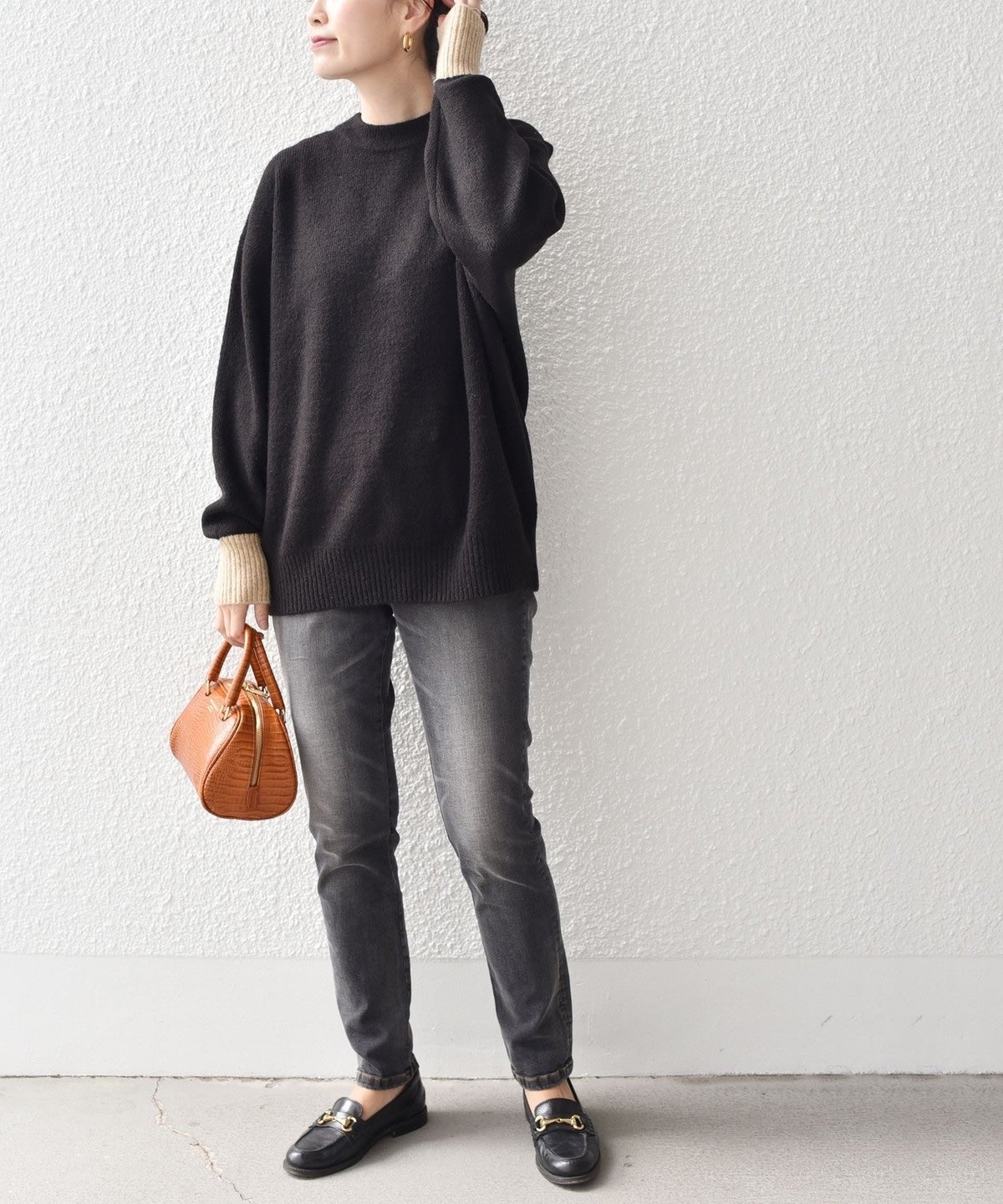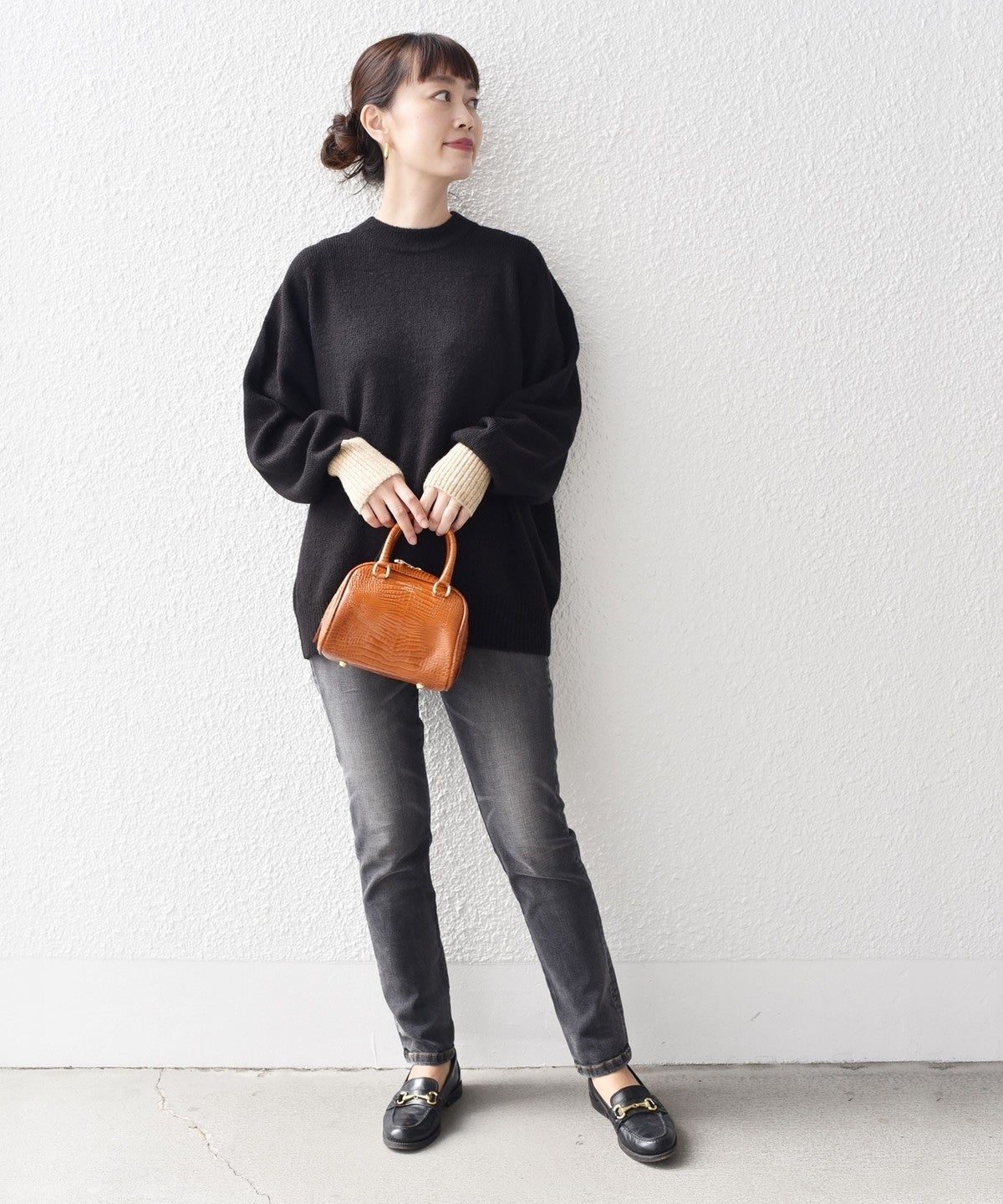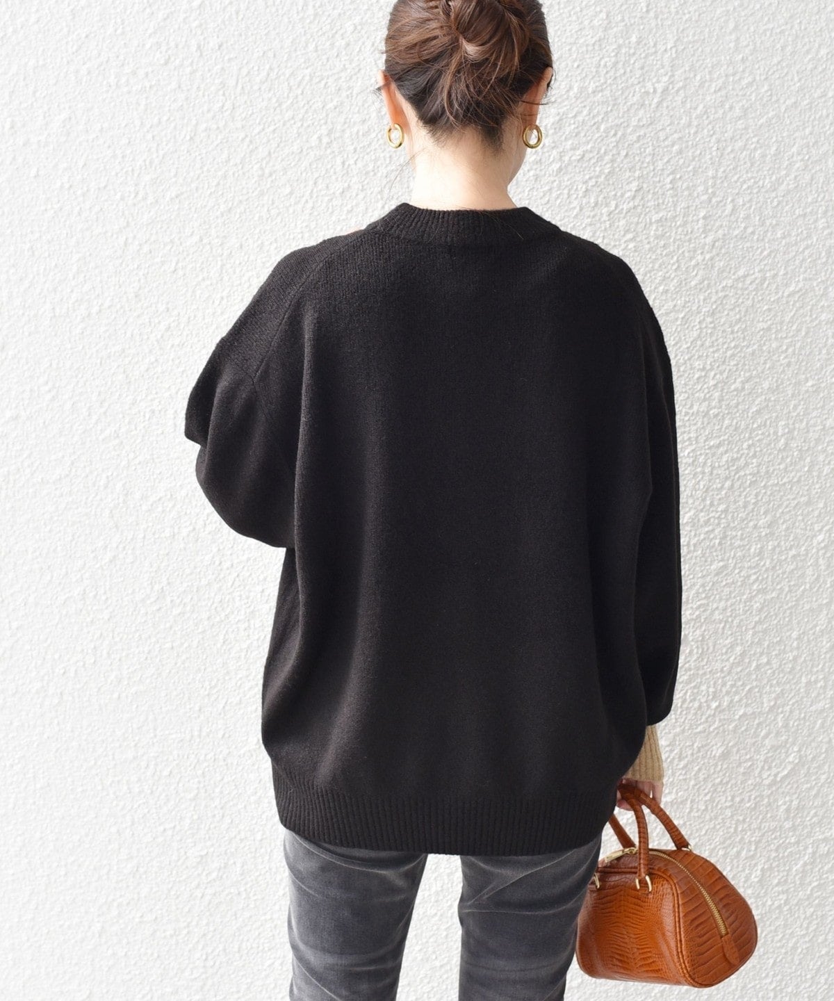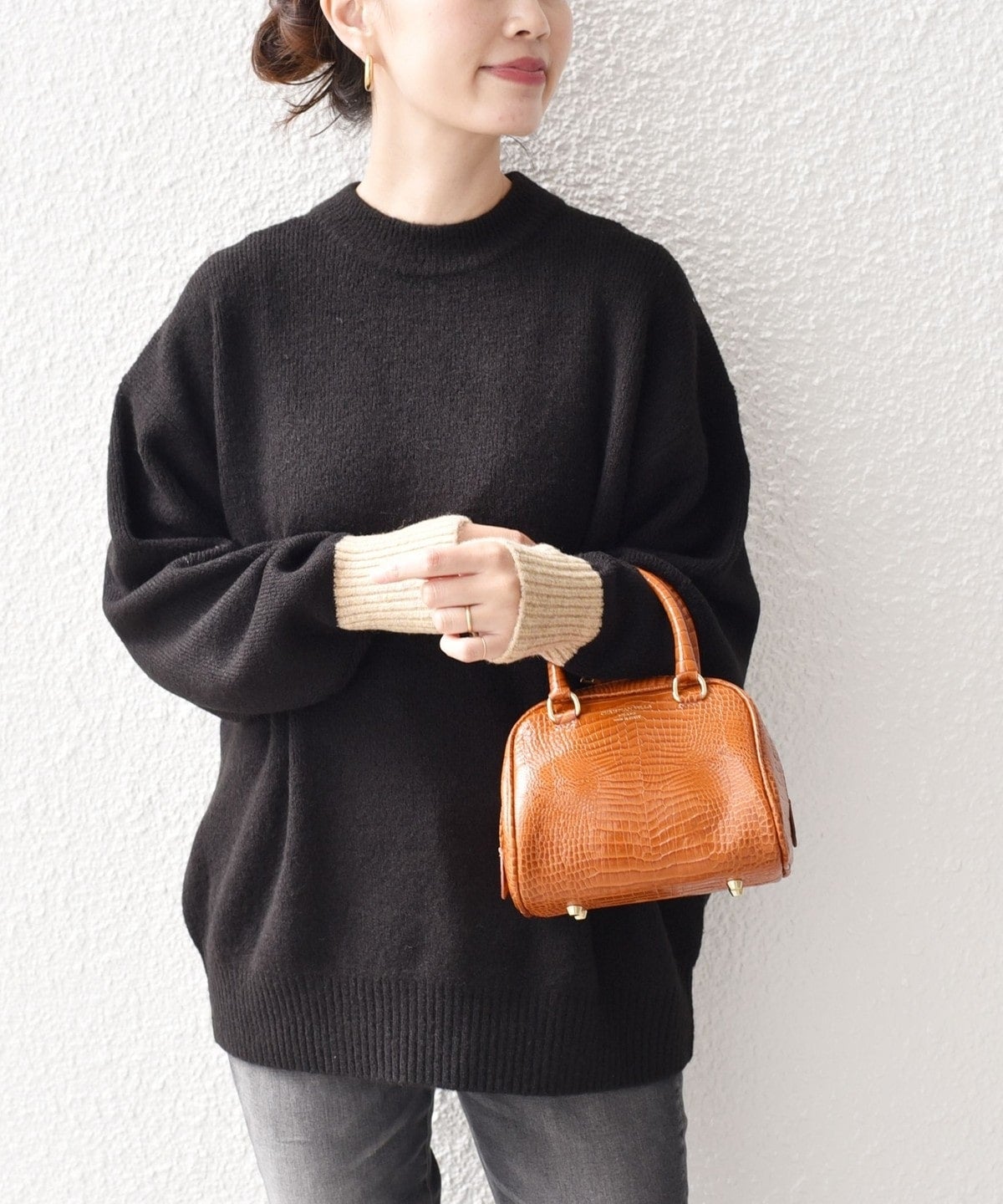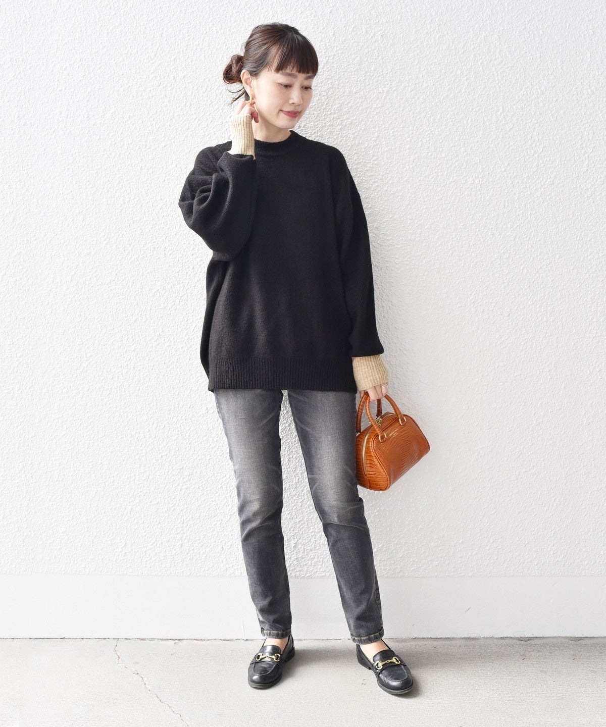 MEDIUMはスキニーパンツにロングブーツでカジュアルコーデにしたり、キャザースカートに重ねても◎