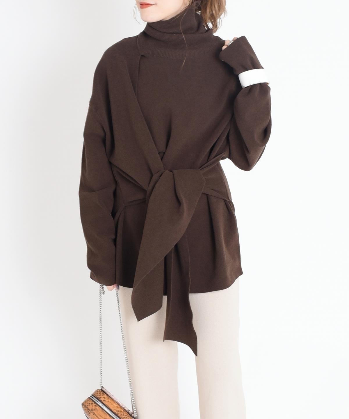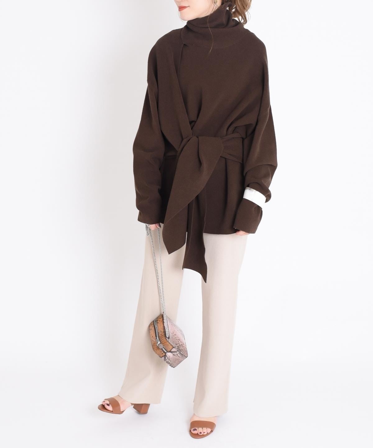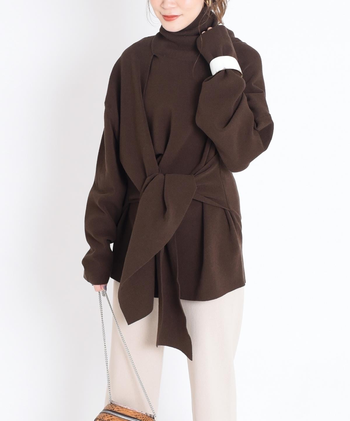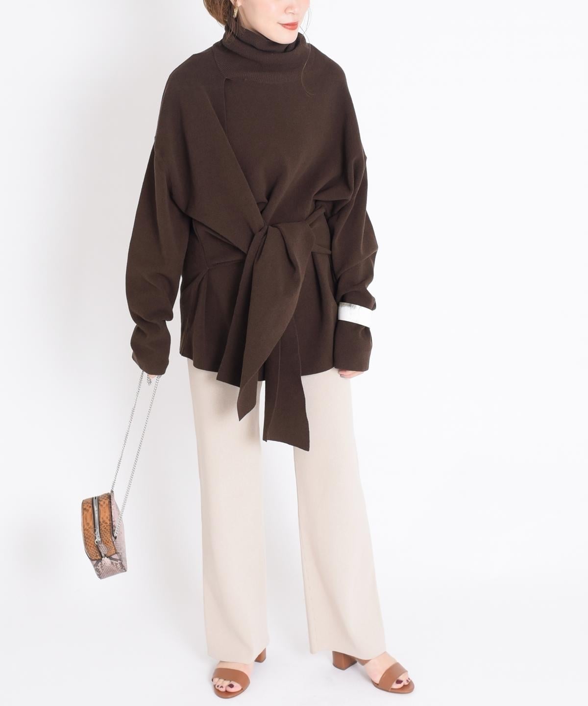 ゆったりとしたシルエットでフロントの結びが特徴的なデザインニット。