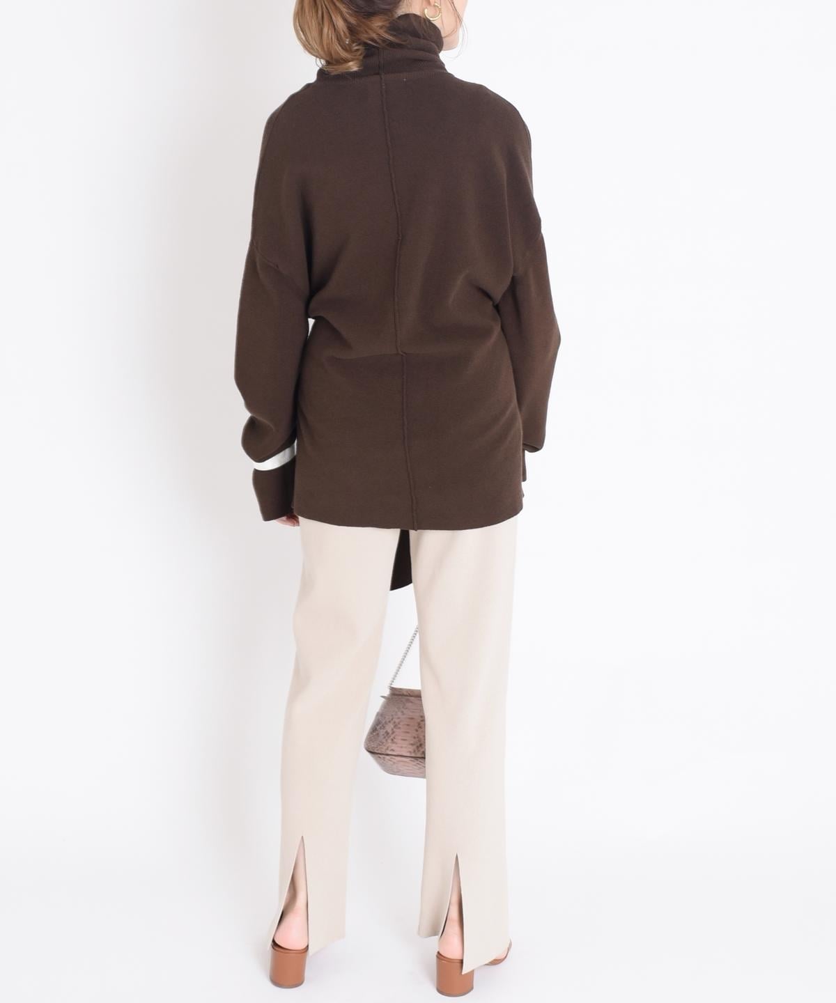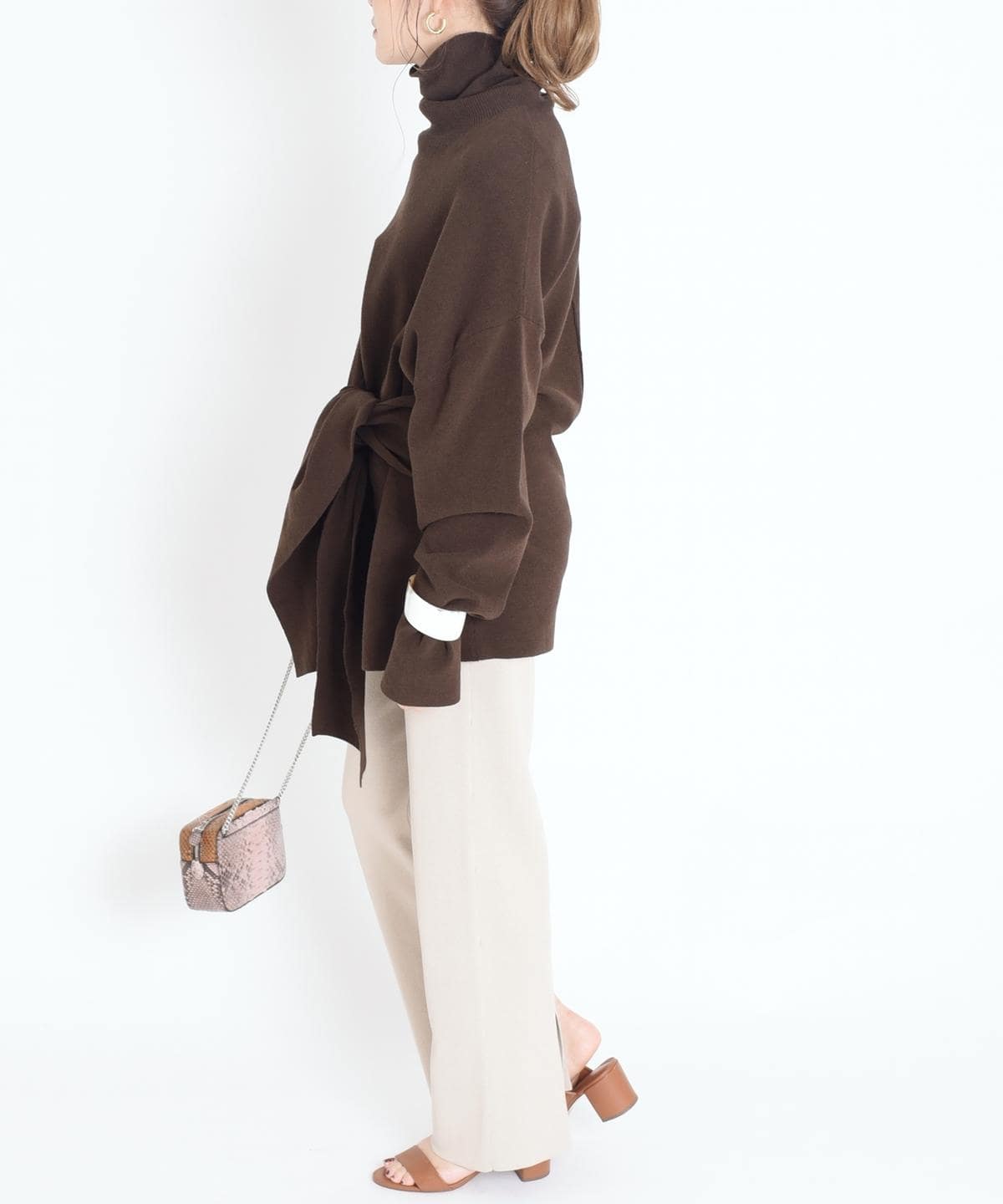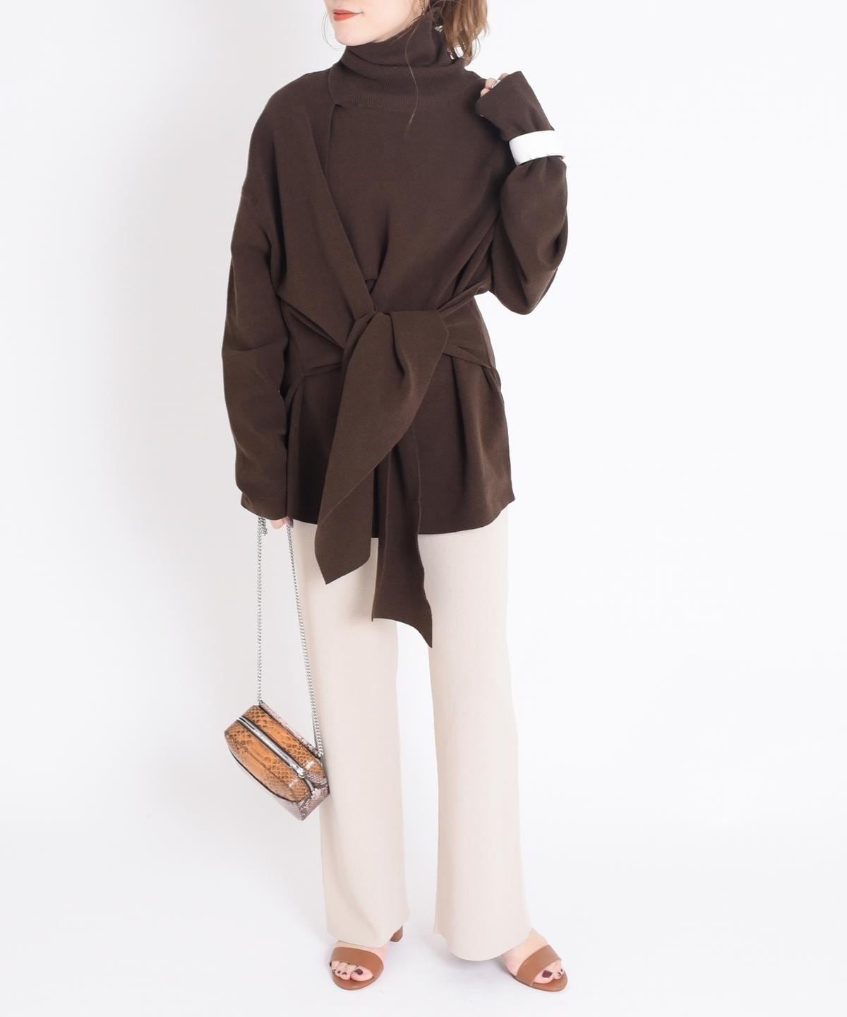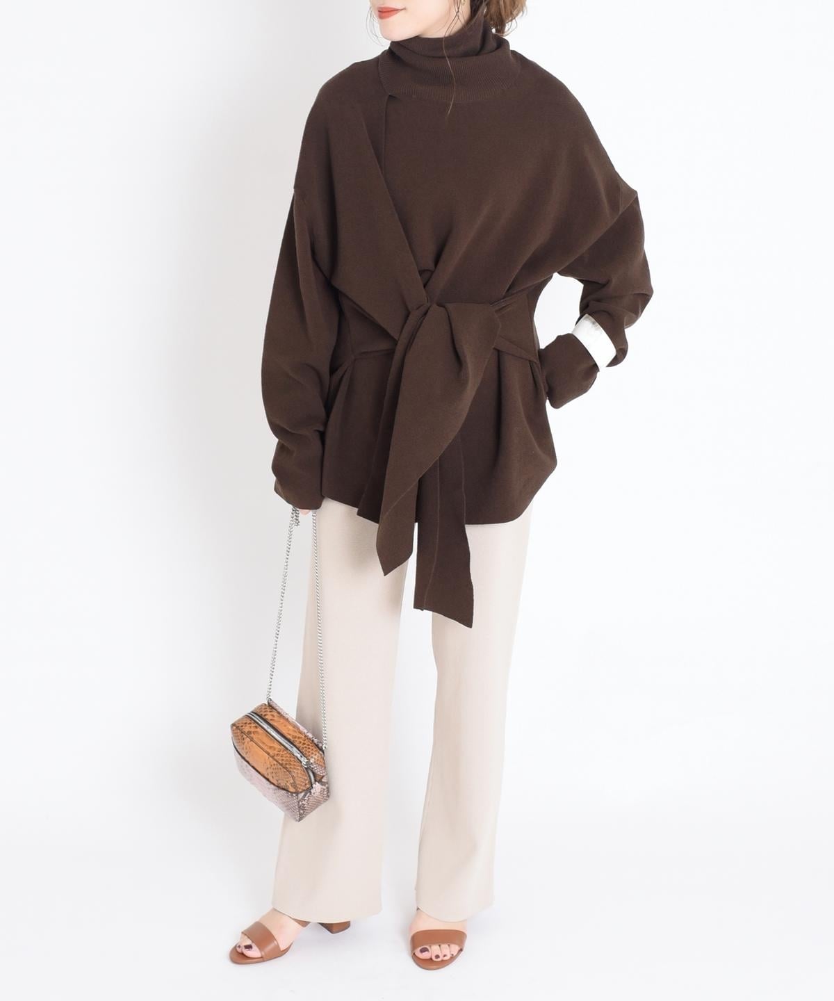 ゆったりとしたシルエットでフロントの結びが特徴的なデザインニット。