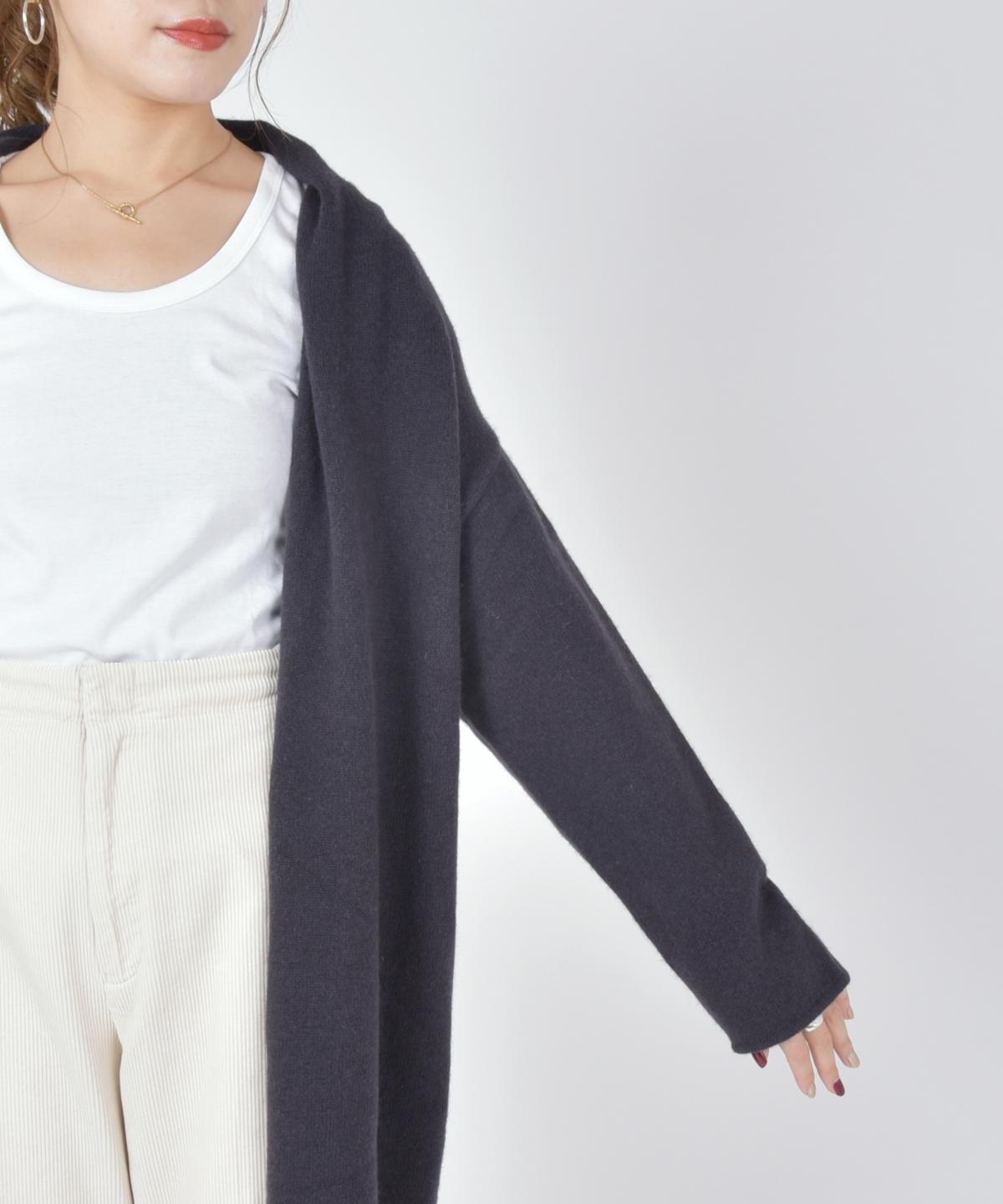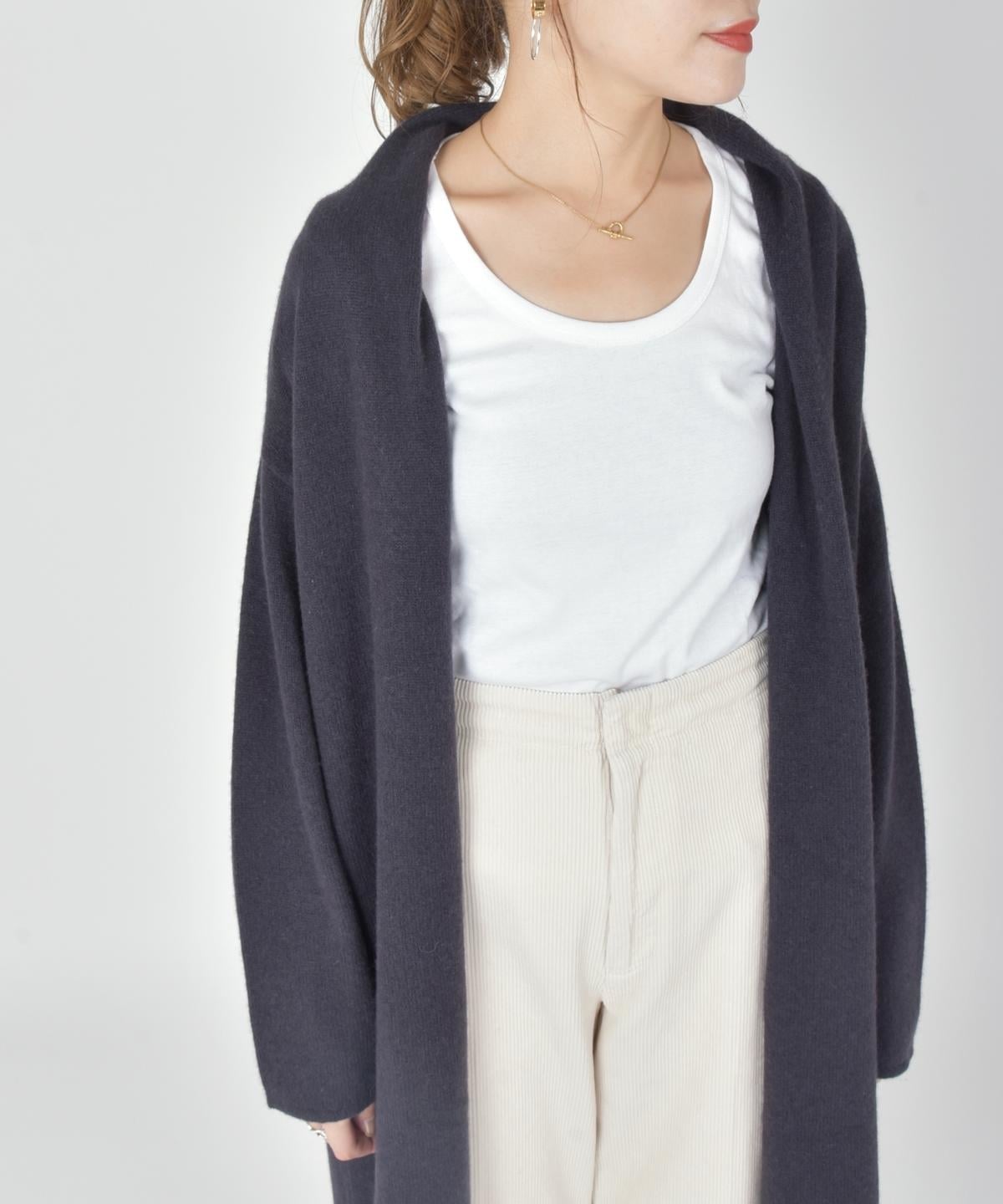 コメント:柔らかくて、チクチク感がないので肌触りがよく、とっても軽い着心地でした。ゆるっと着て、抜け感のある雰囲気で楽しみたいです。