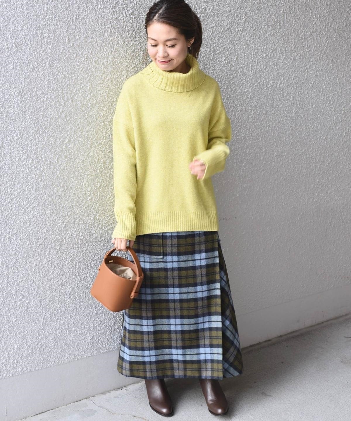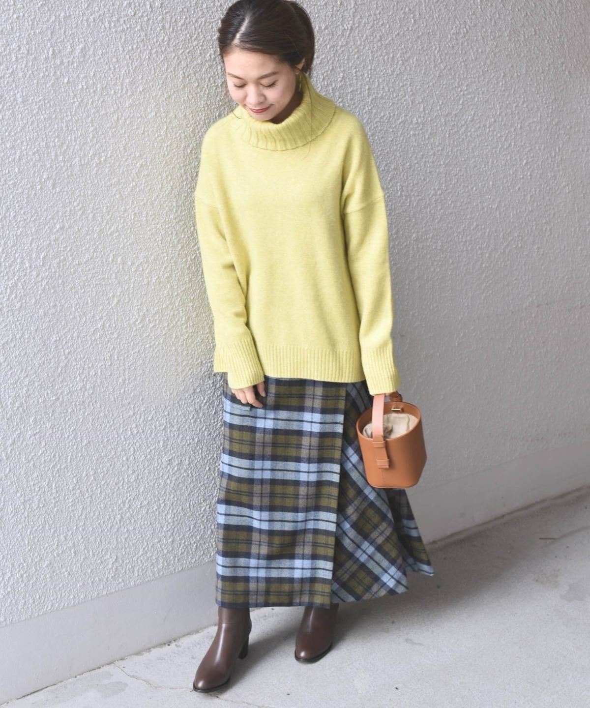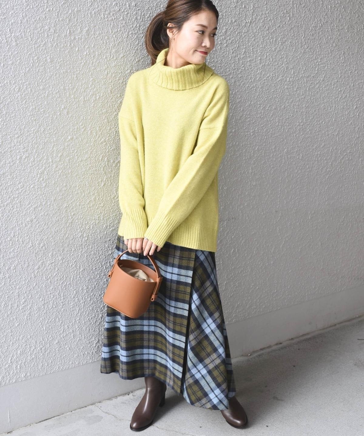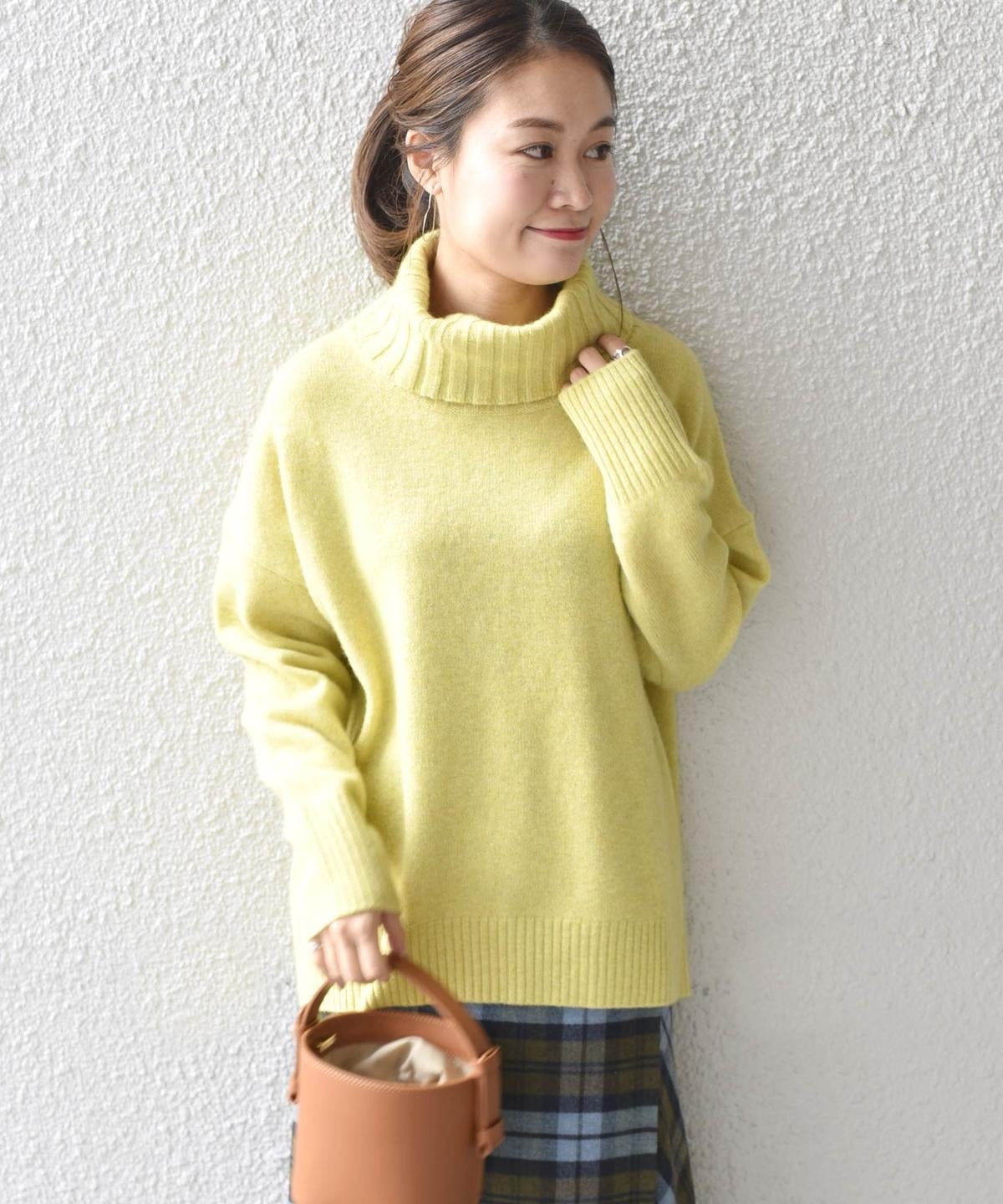 タートルネックの決まりもよく、顔周りをすっきりと見せてくれます。