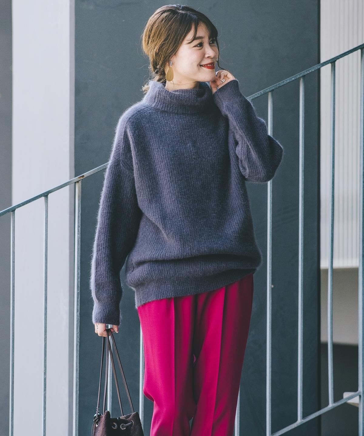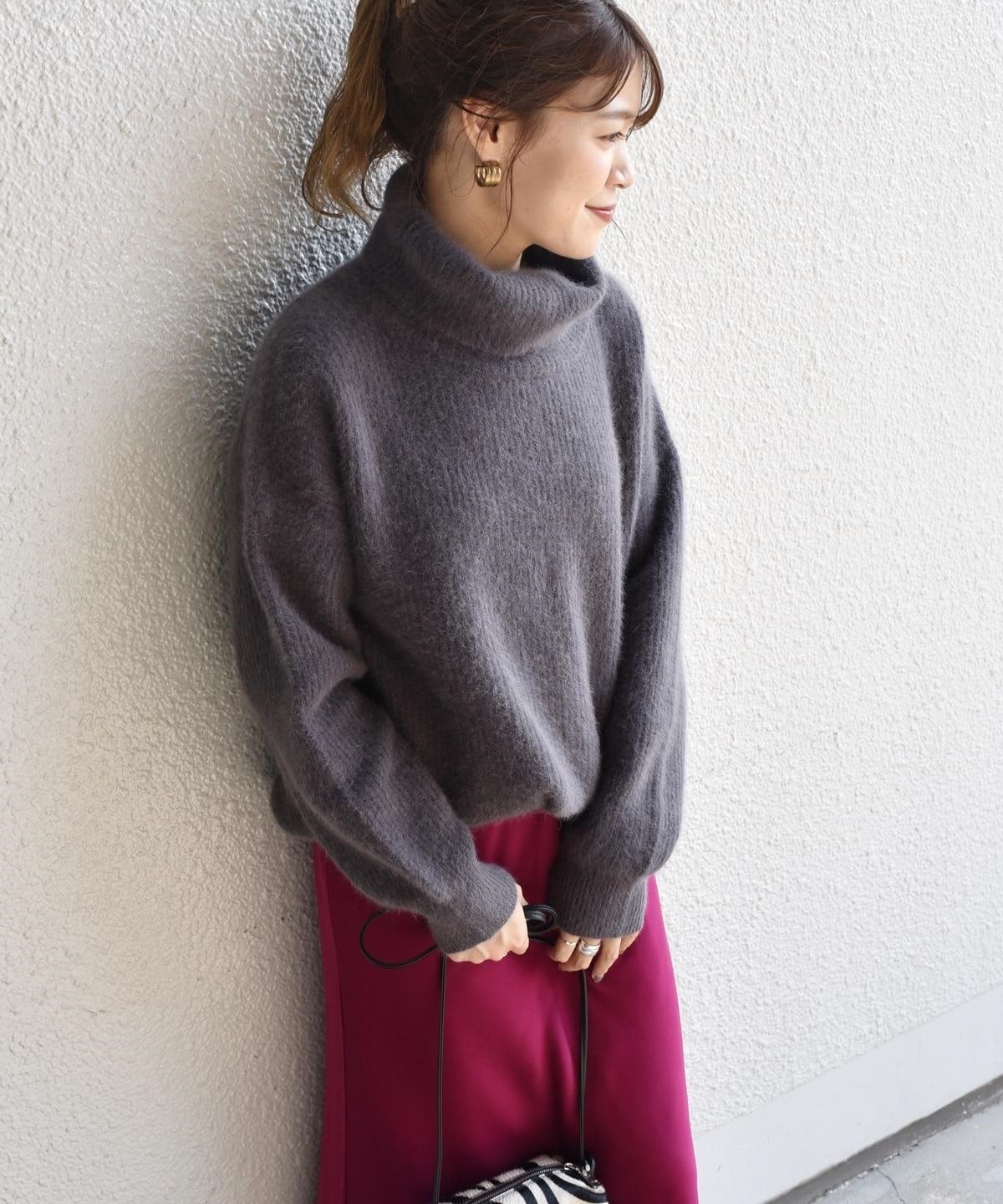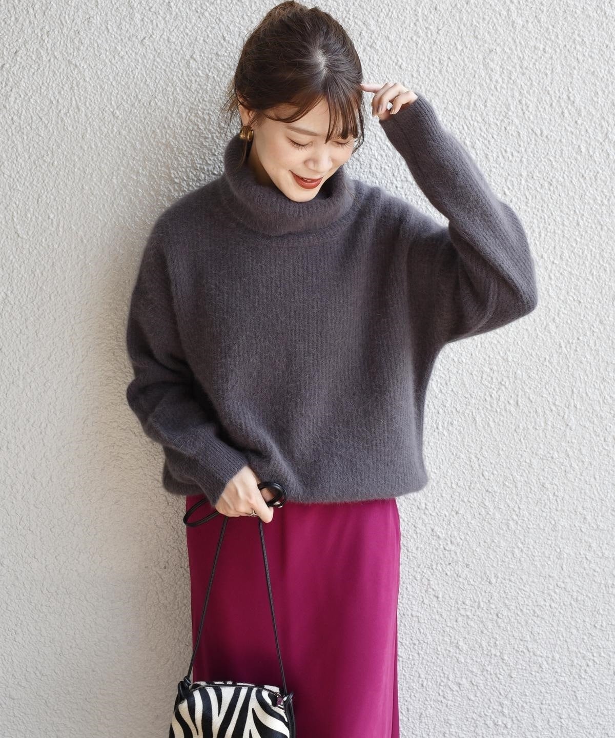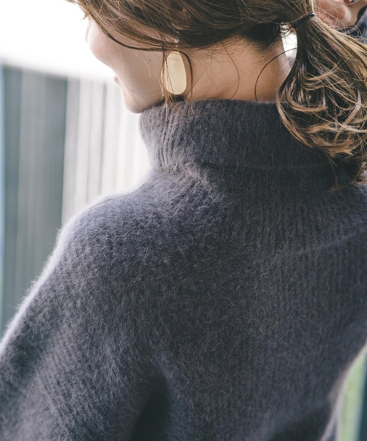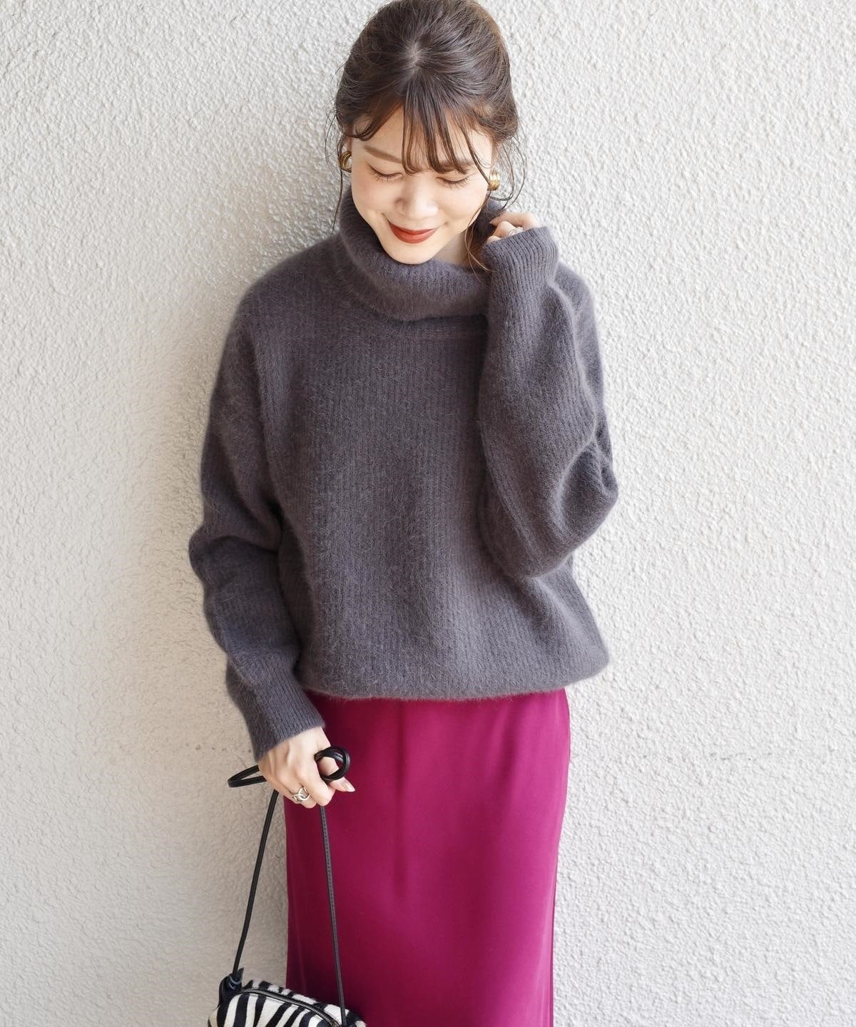 ホッコリ感のあるフォックス混素材が、女性らしい柔らかな印象になる1枚。