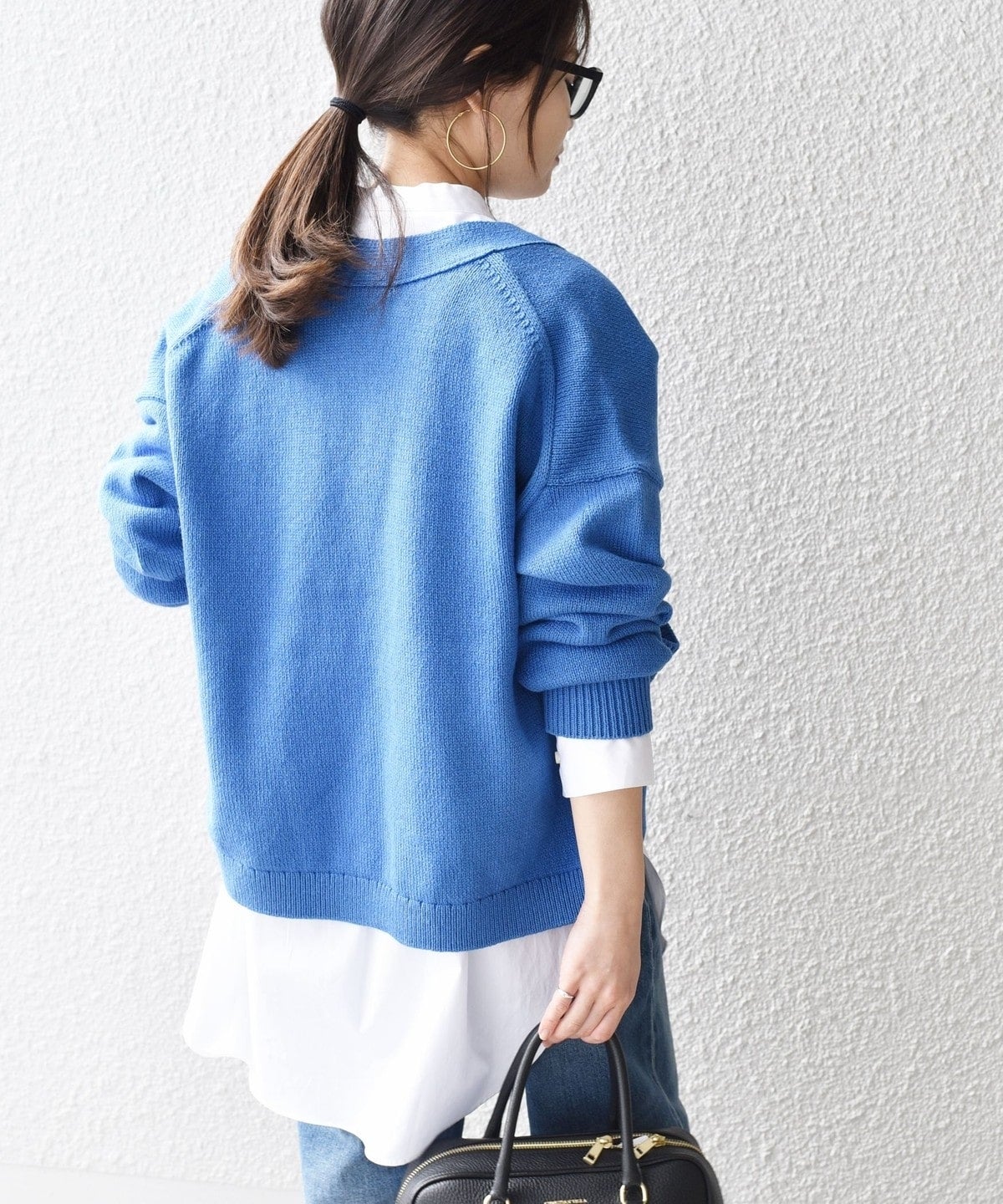 ボタンを留めてVネックのプルオーバーとしてのご着用がおすすめ。