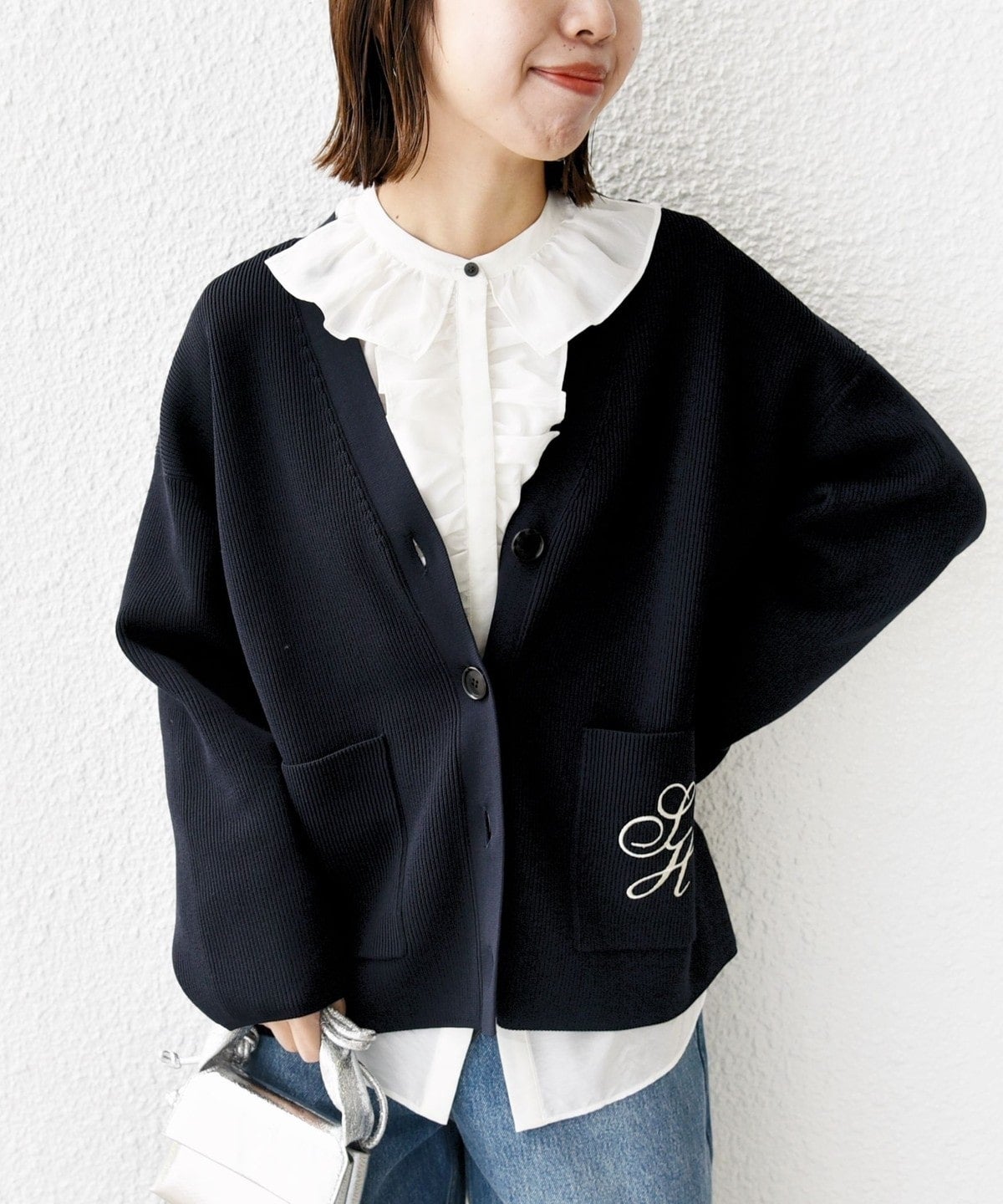 刺繍がポイントのこなれ感たっぷりなカーディガン
