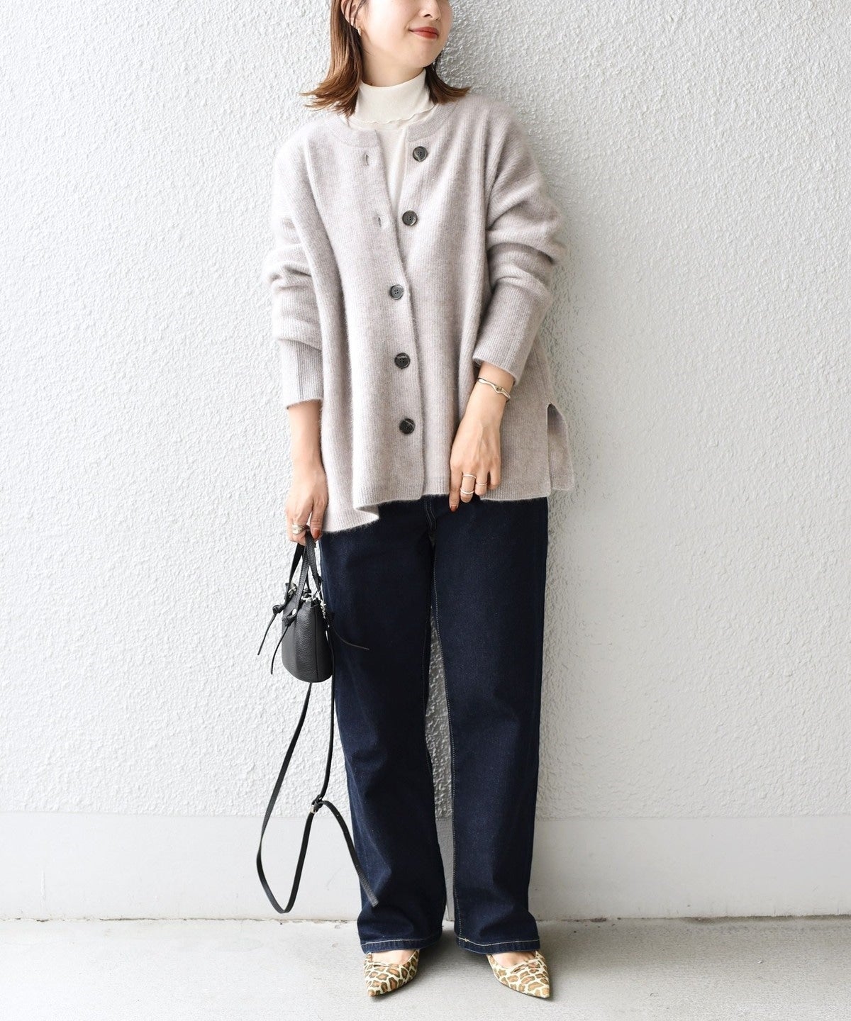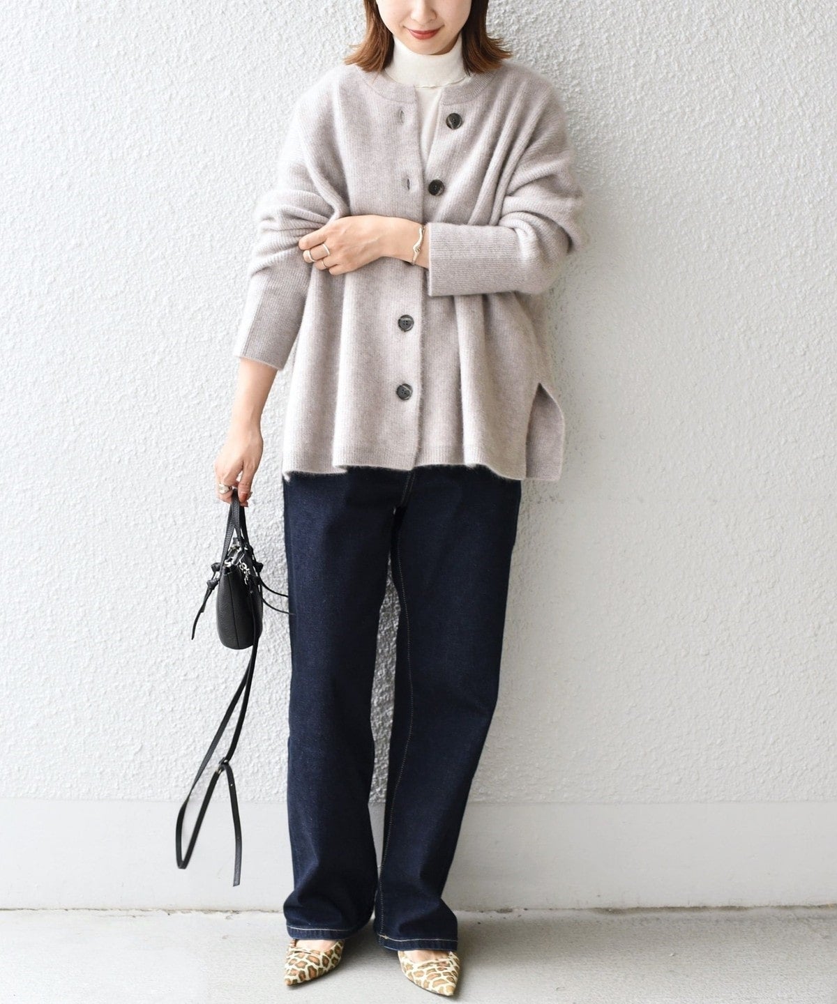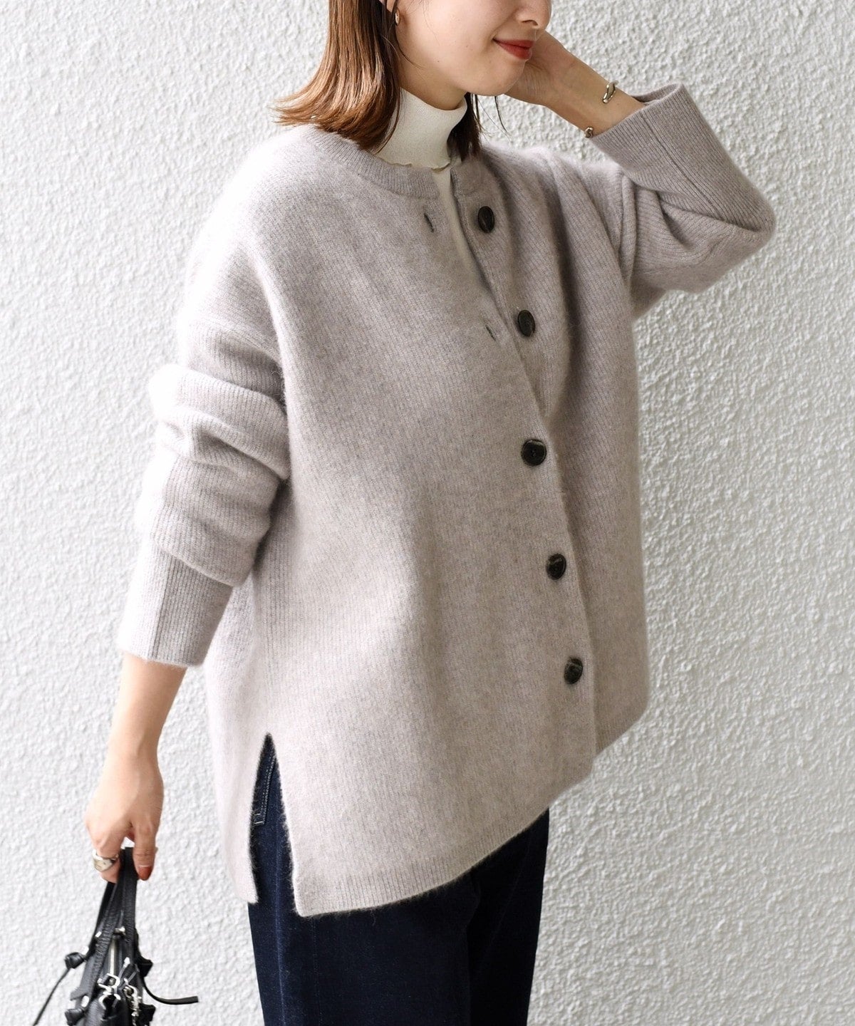 オーバーなサイズ感が今季らしい、クルーネックカーディガン。