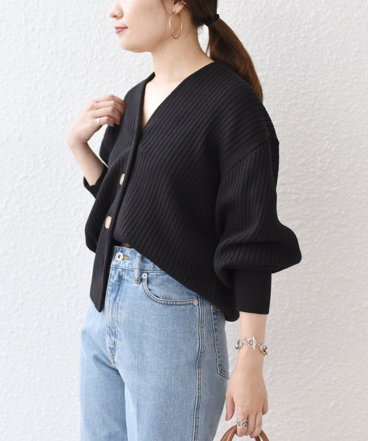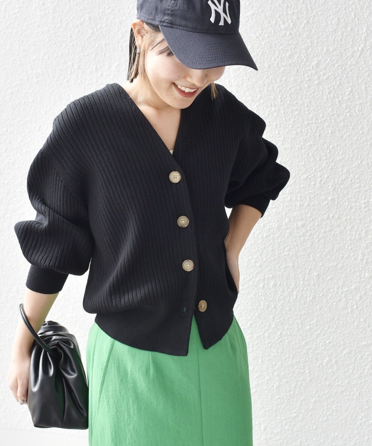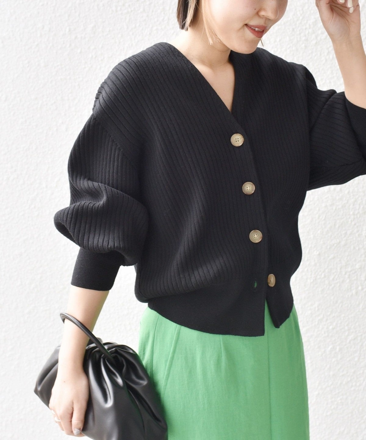 〈手洗い可能〉コクーン リブ Vネック カーディガン