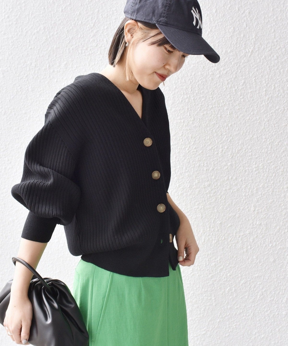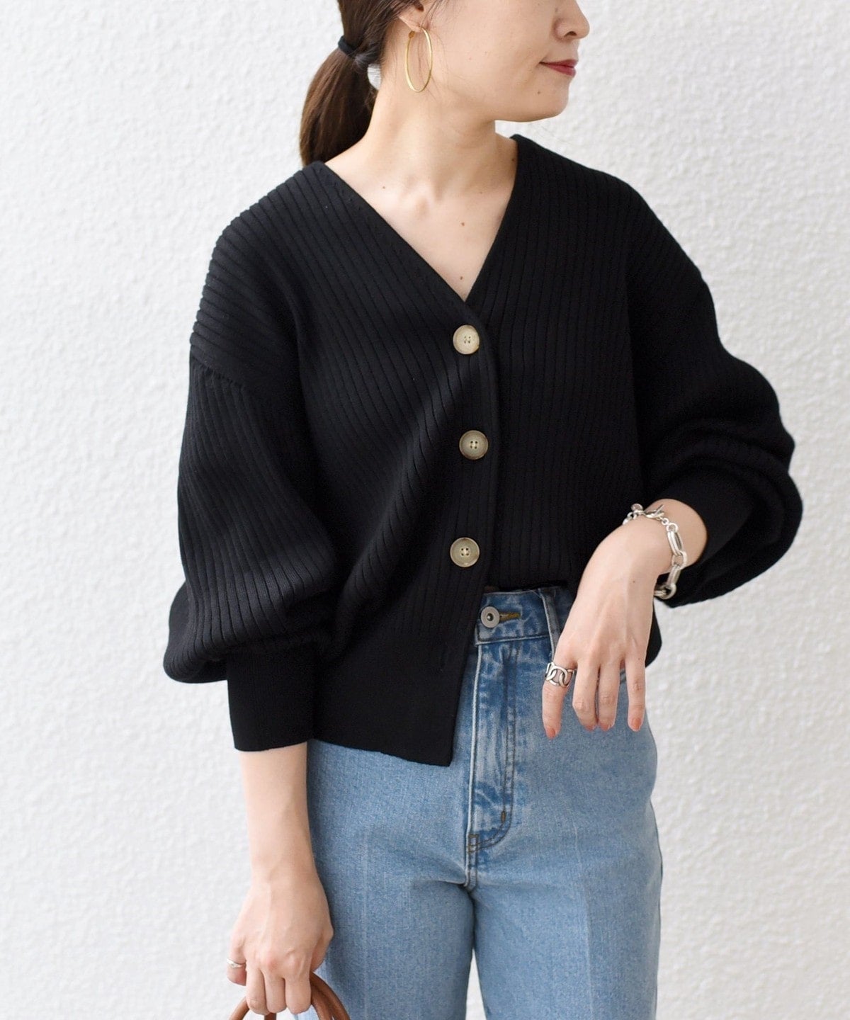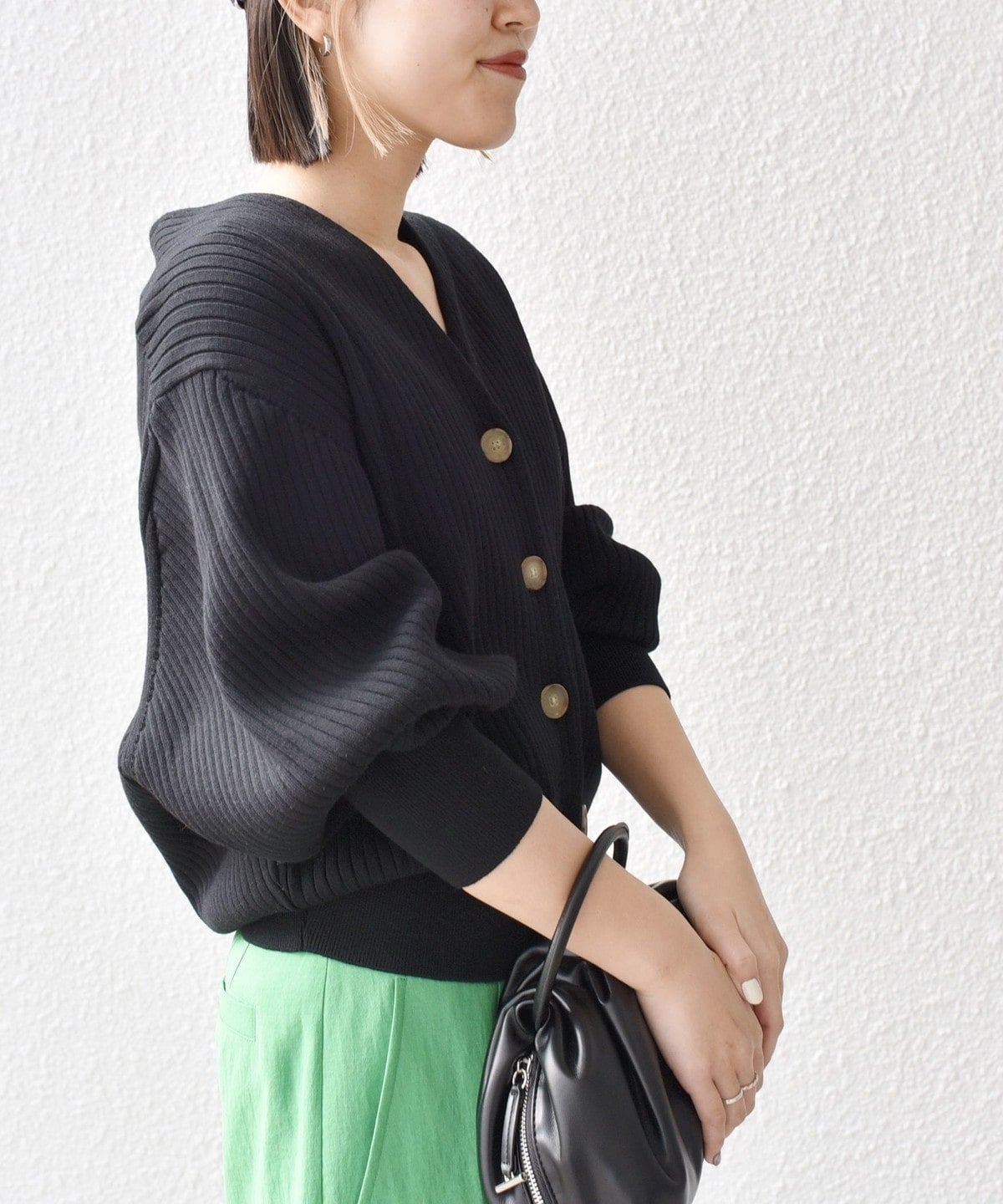 〈手洗い可能〉コクーン リブ Vネック カーディガン