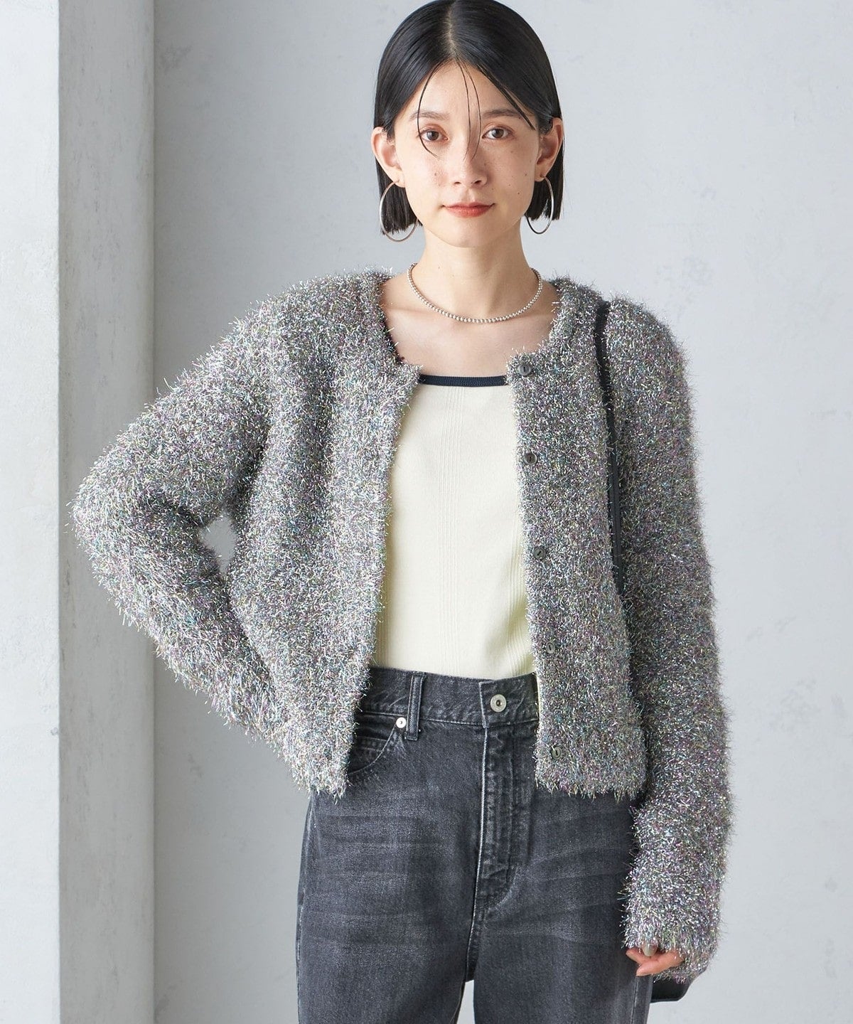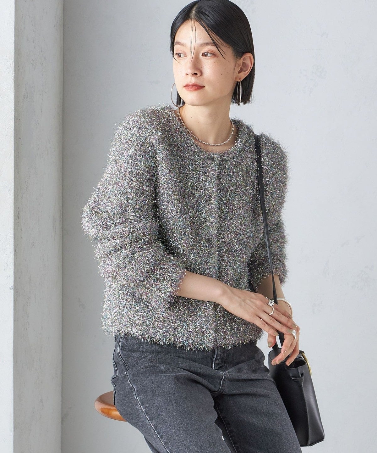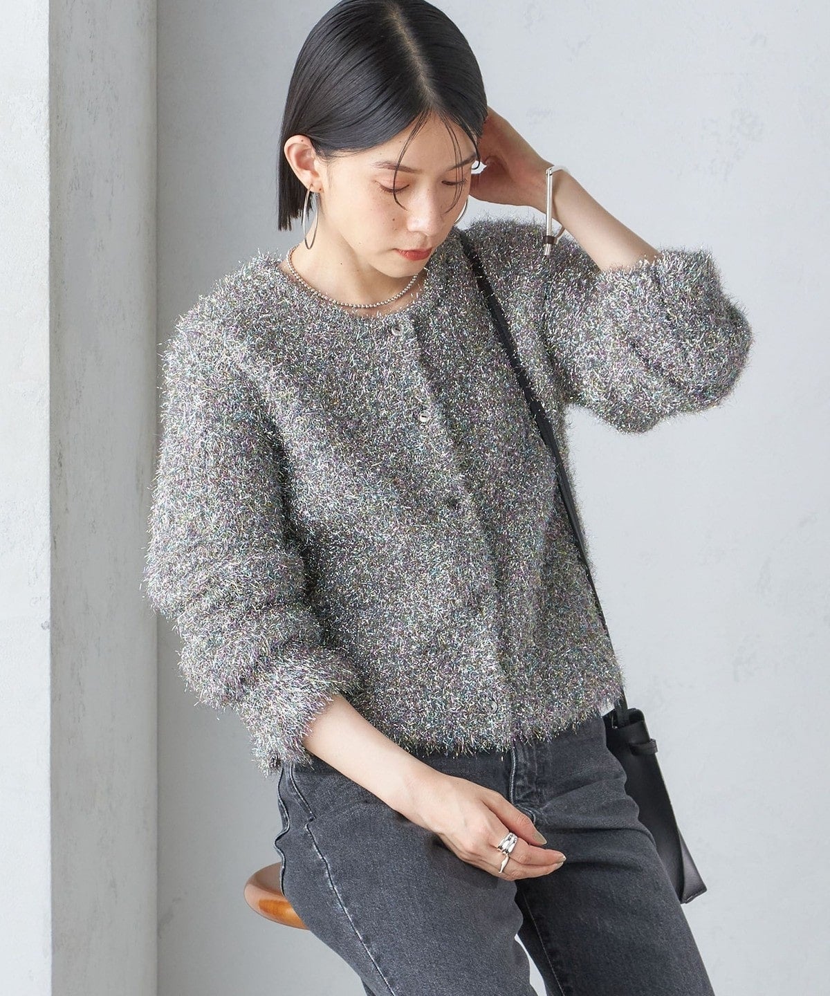キラキラ光るラメが特別感を演出してくれるニットカーディガン
