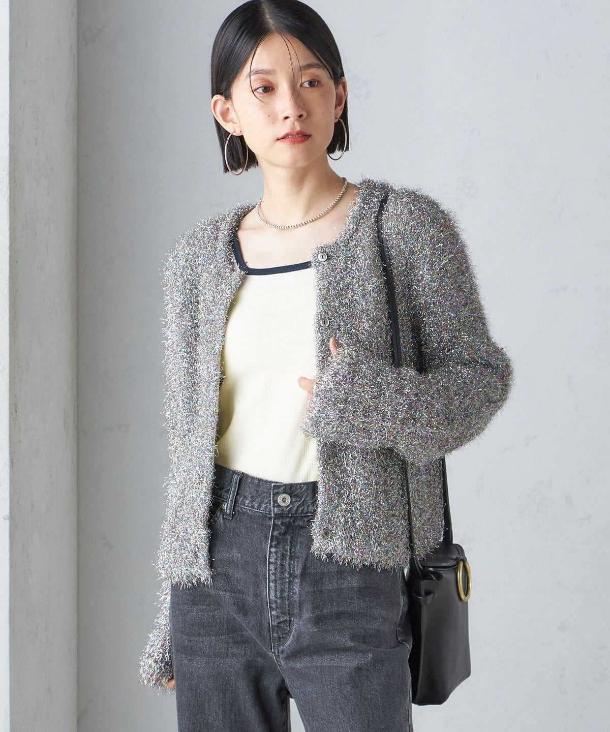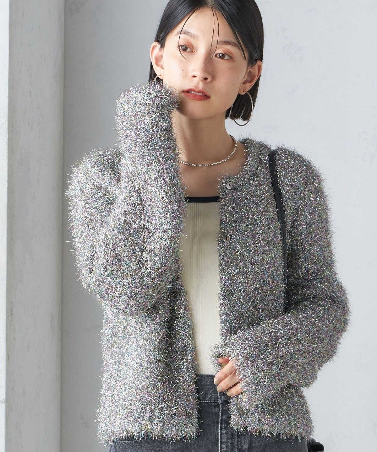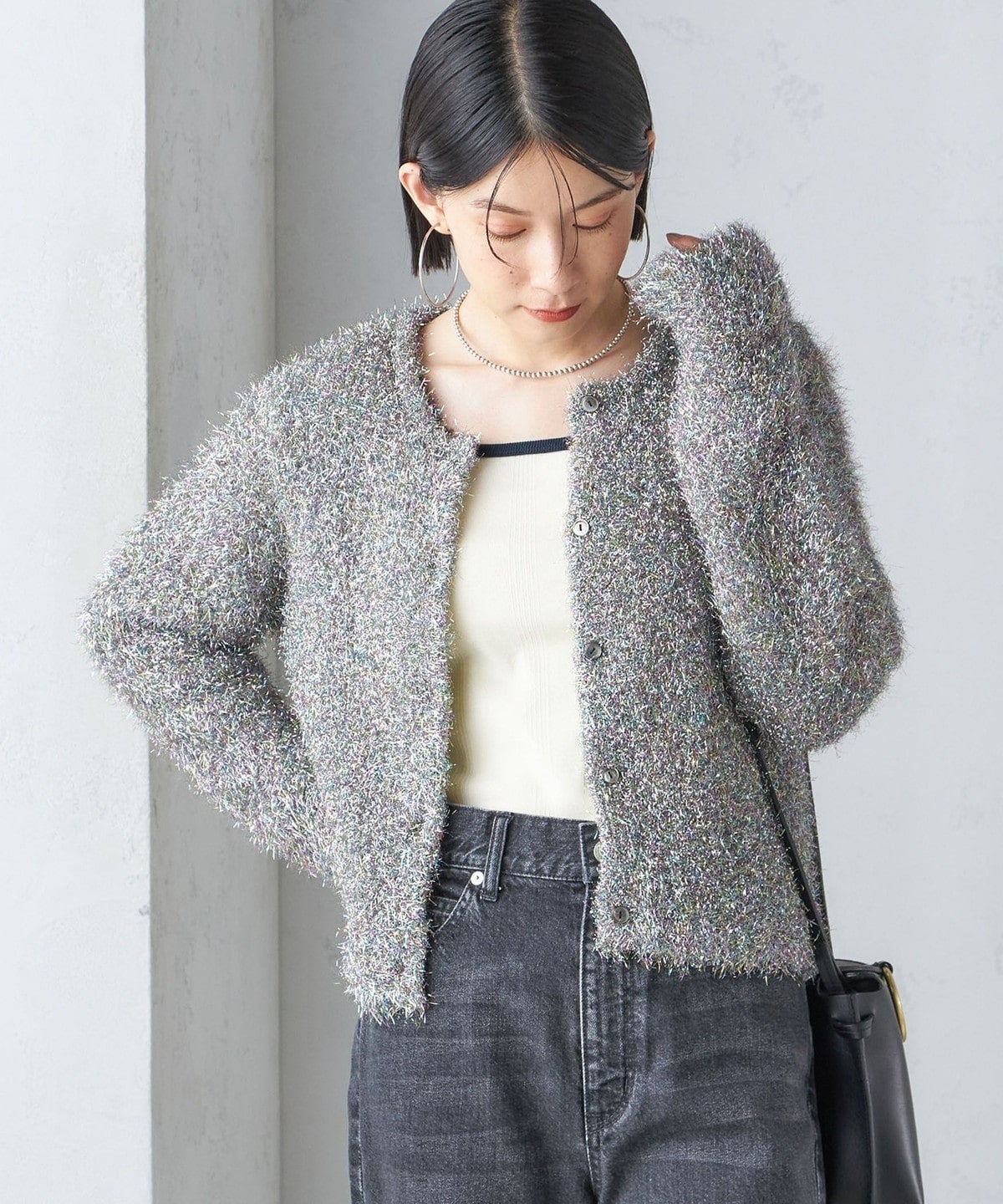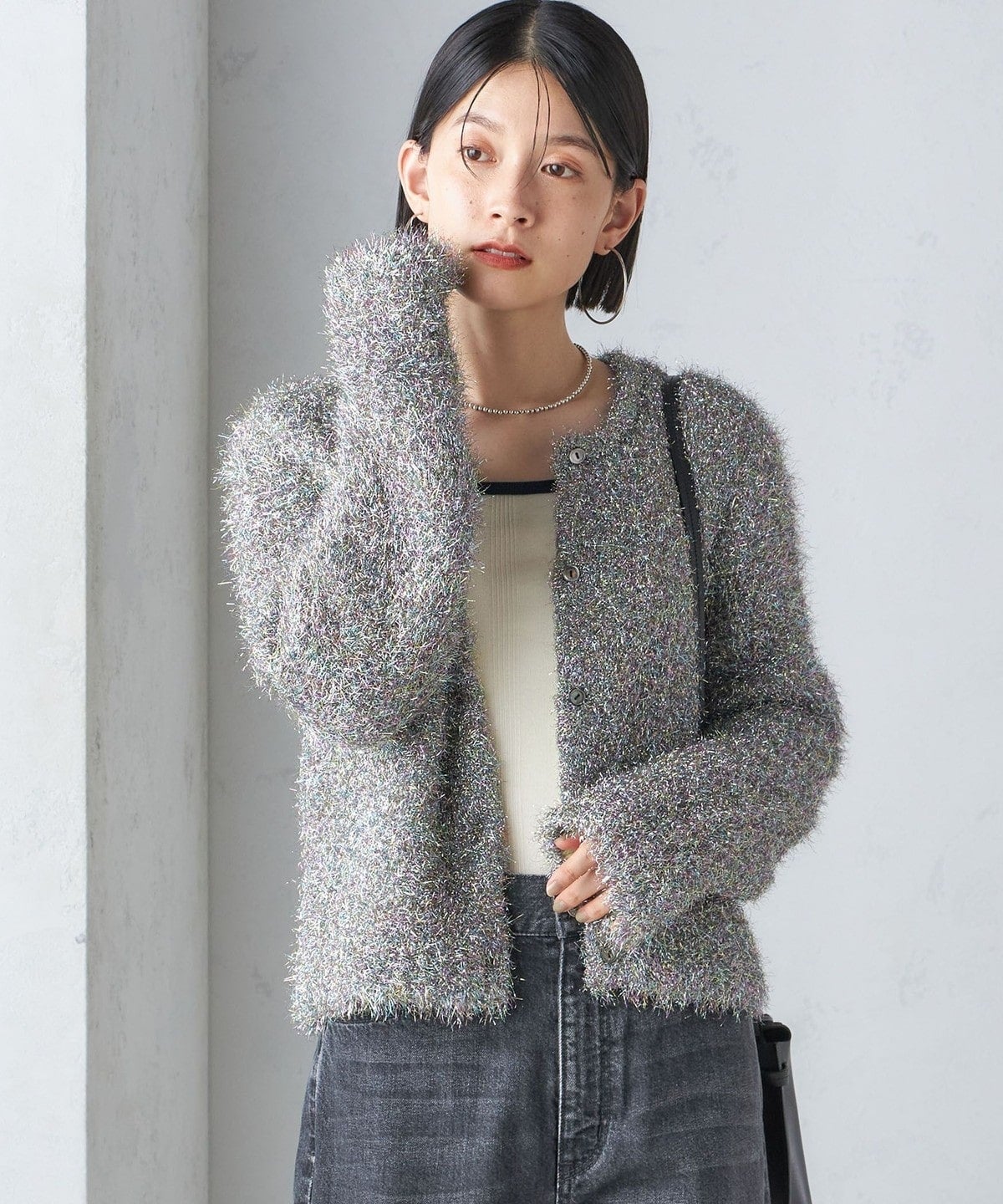 キラキラ光るラメが特別感を演出してくれるニットカーディガン
