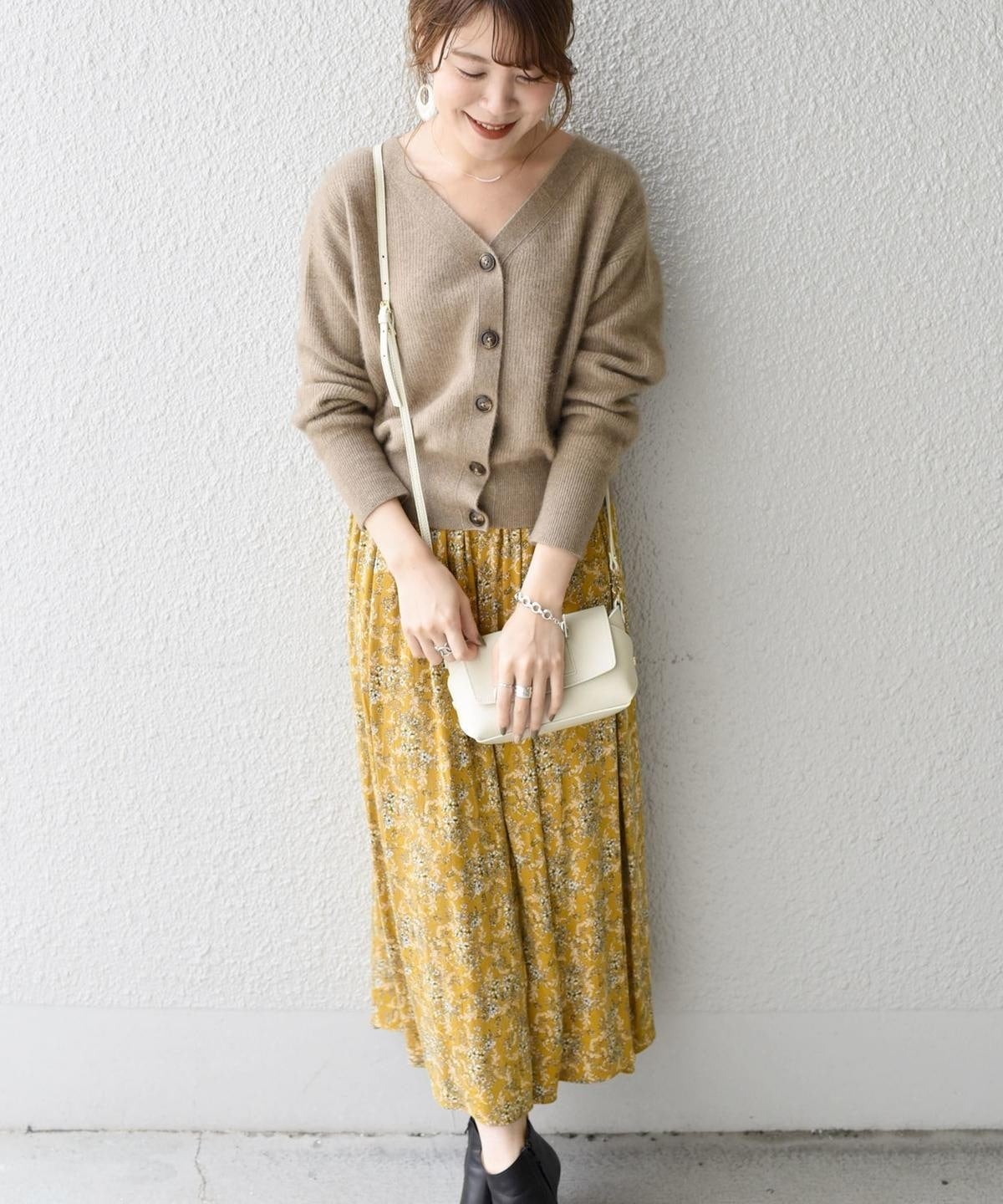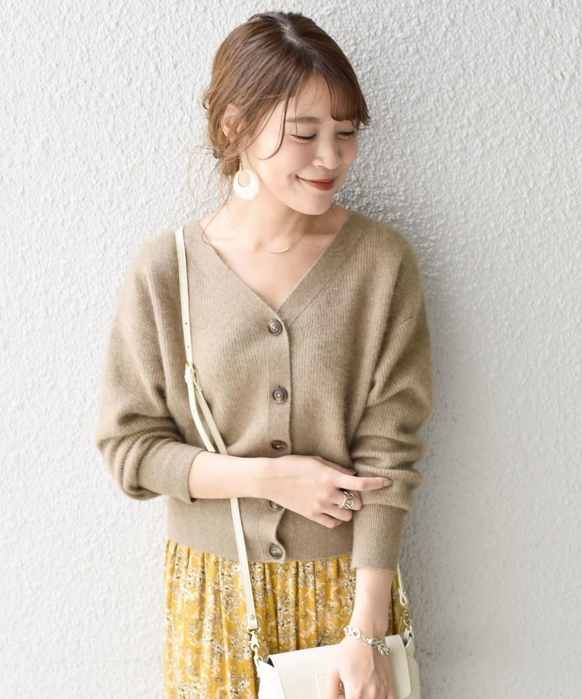 Vネックが程良い抜け感を出してくれて女性らしい印象に。