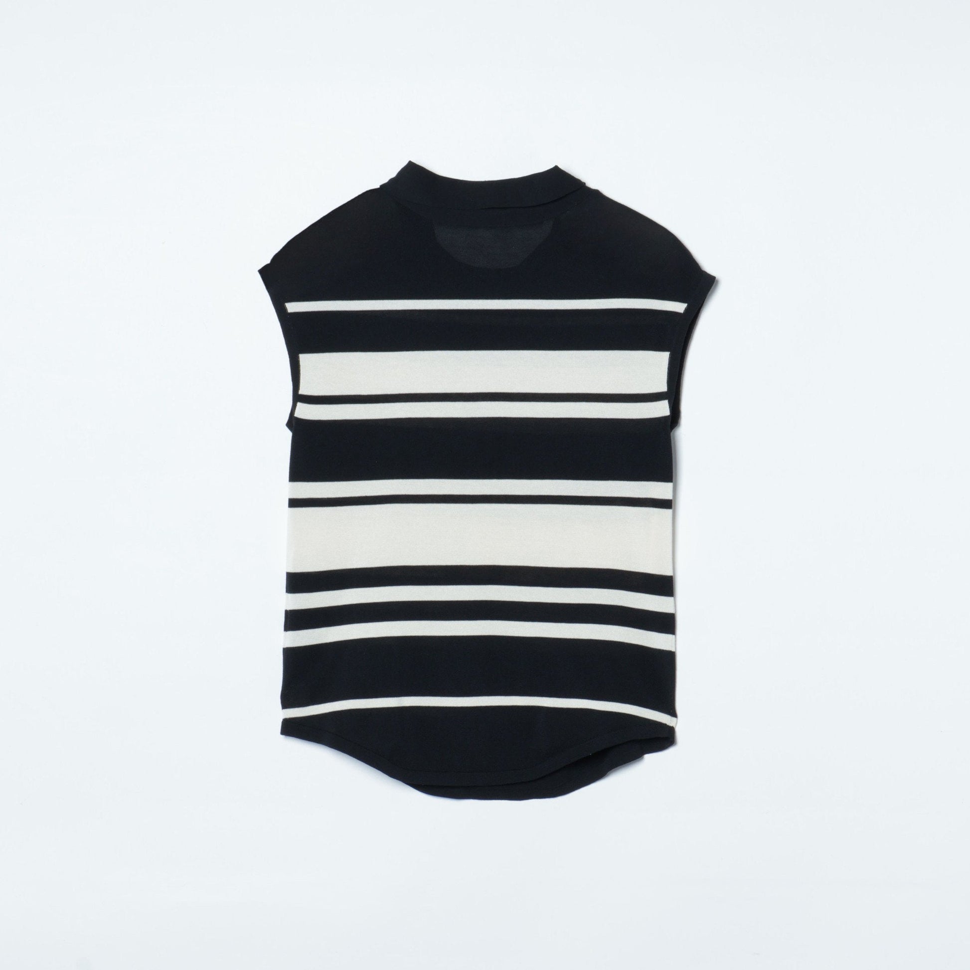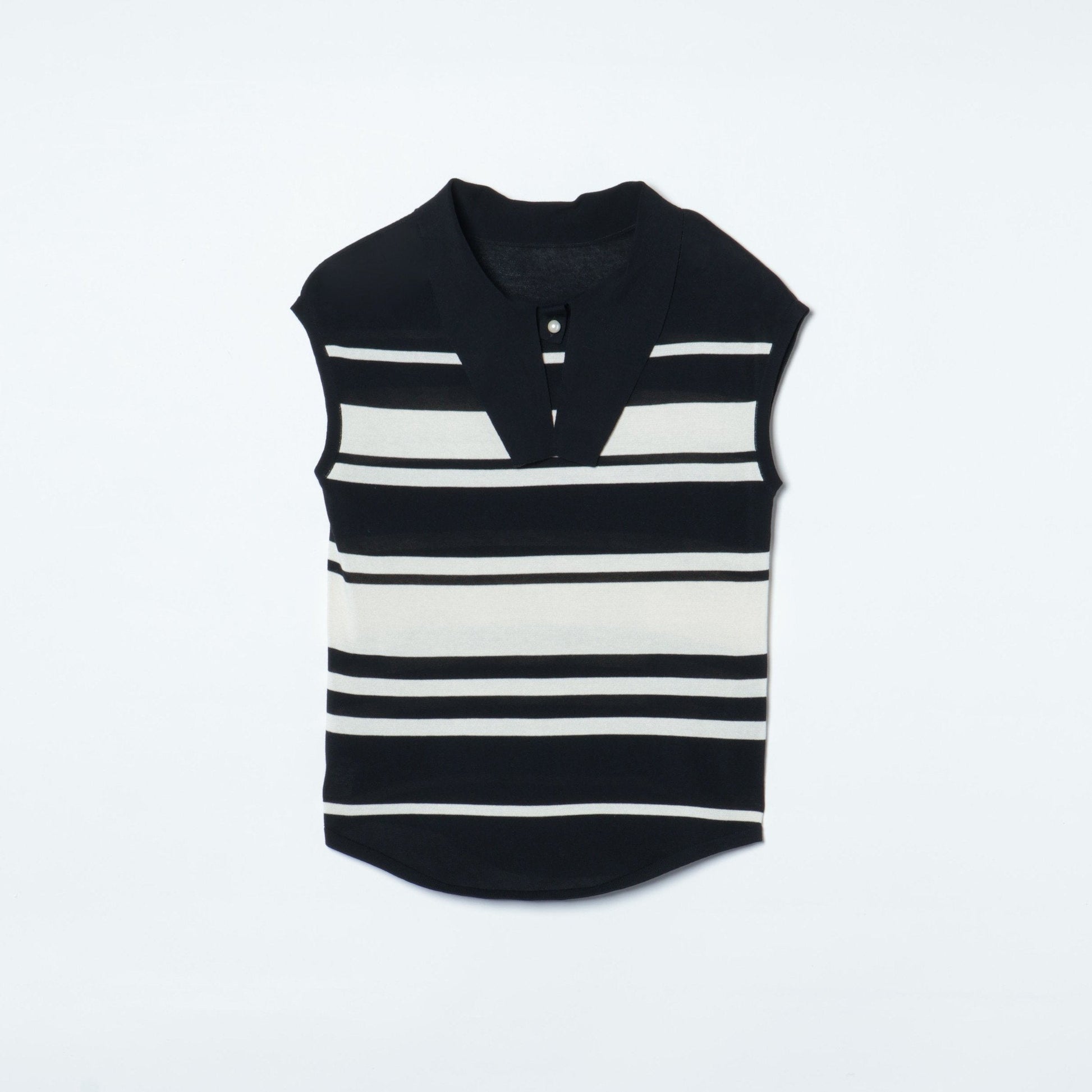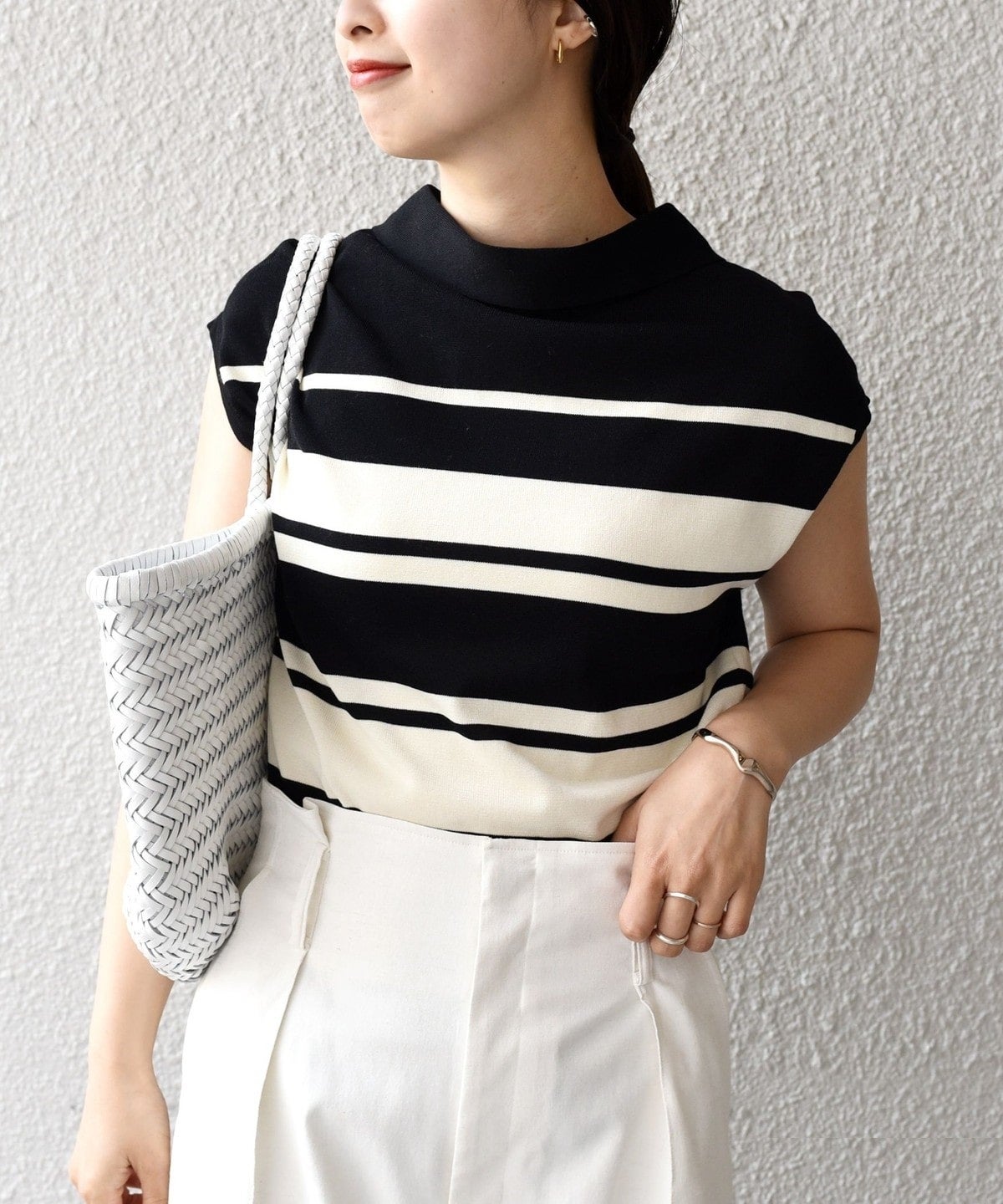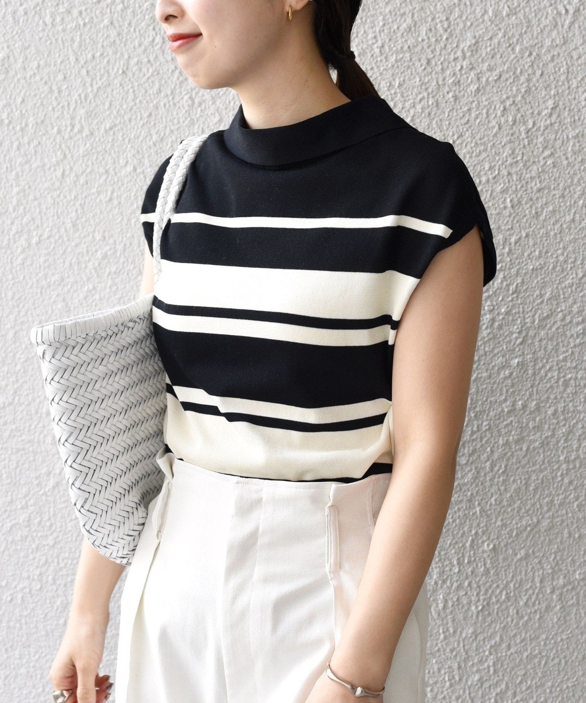 〈手洗い可能/UVカット/接触冷感〉パールモチーフボウタイニット ボーダー/ソリッド