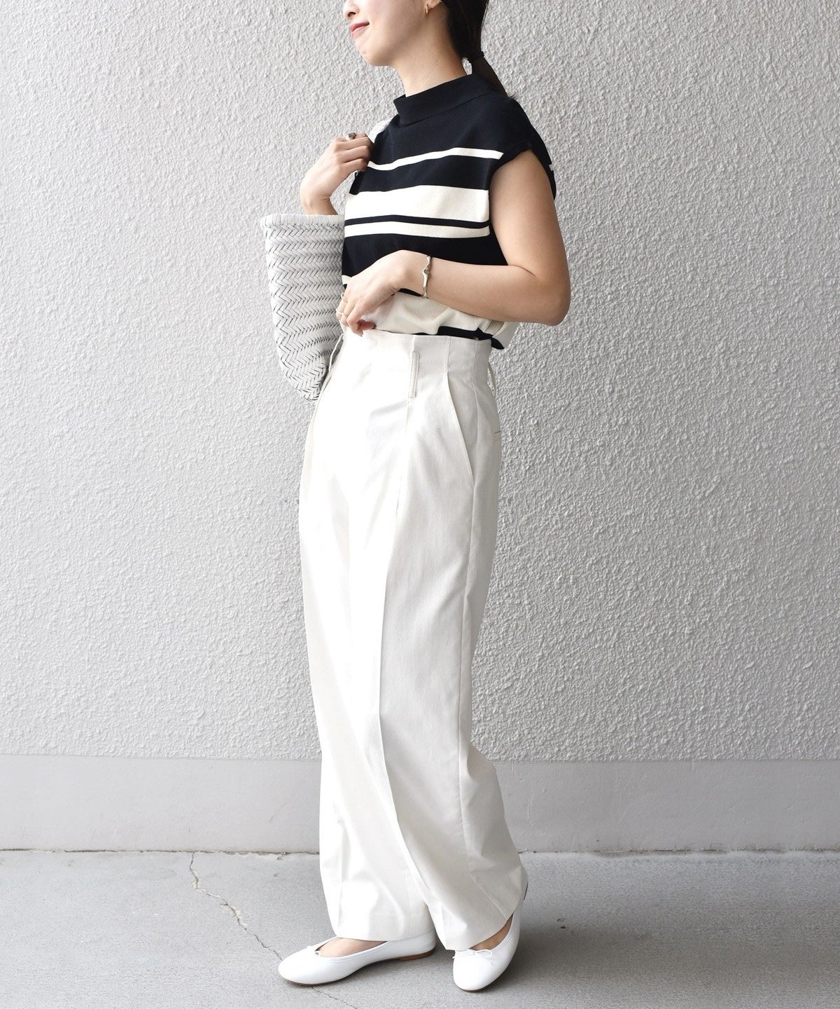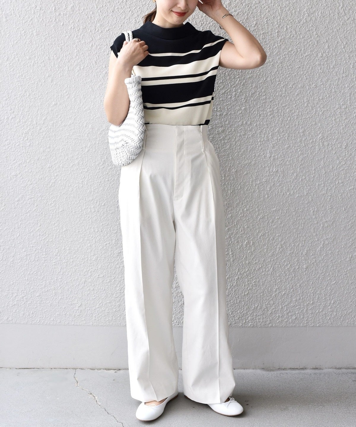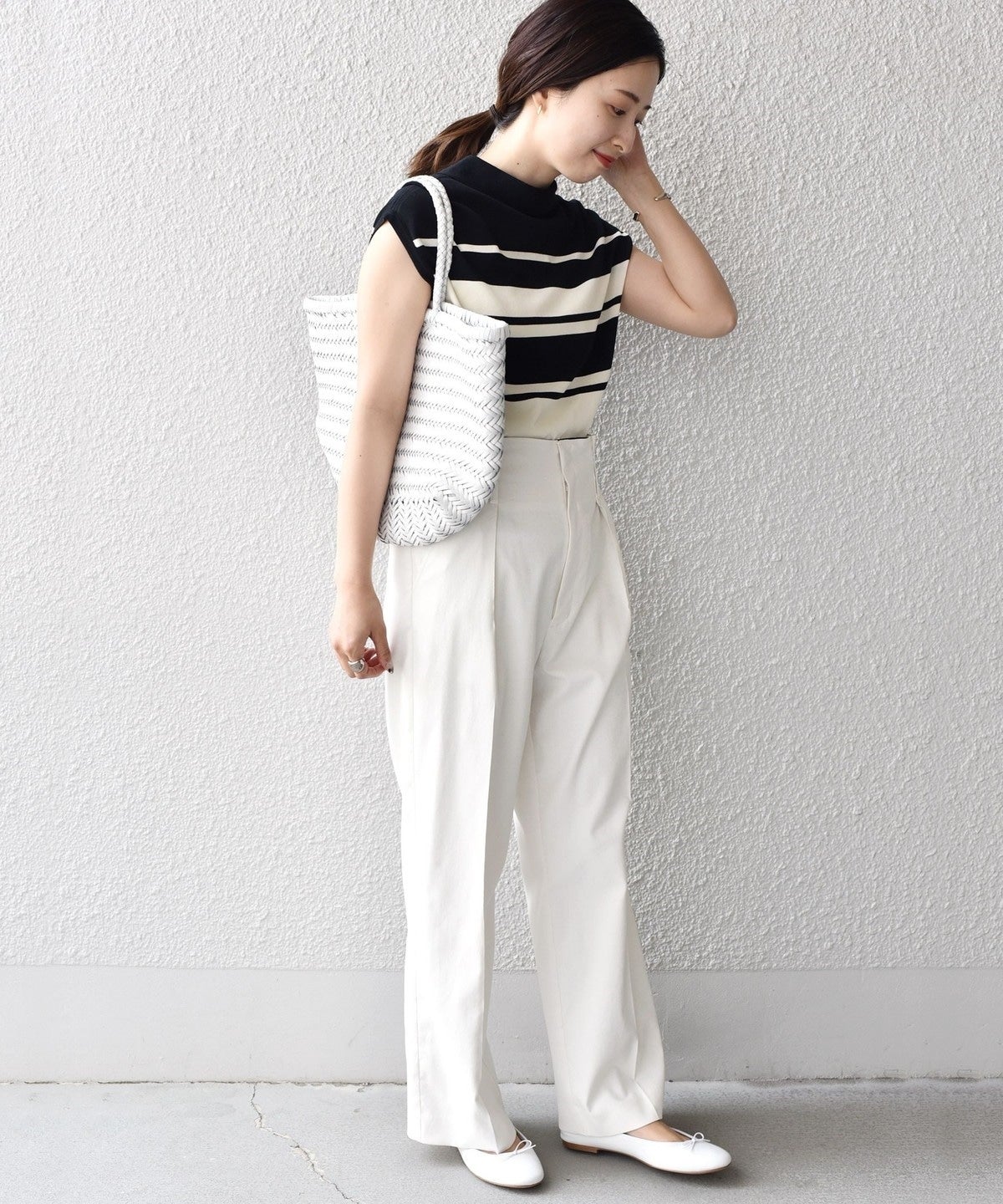 ・モノトーンで組み合わせたボーダーと配色はコーディネートに取り入れやすいです。