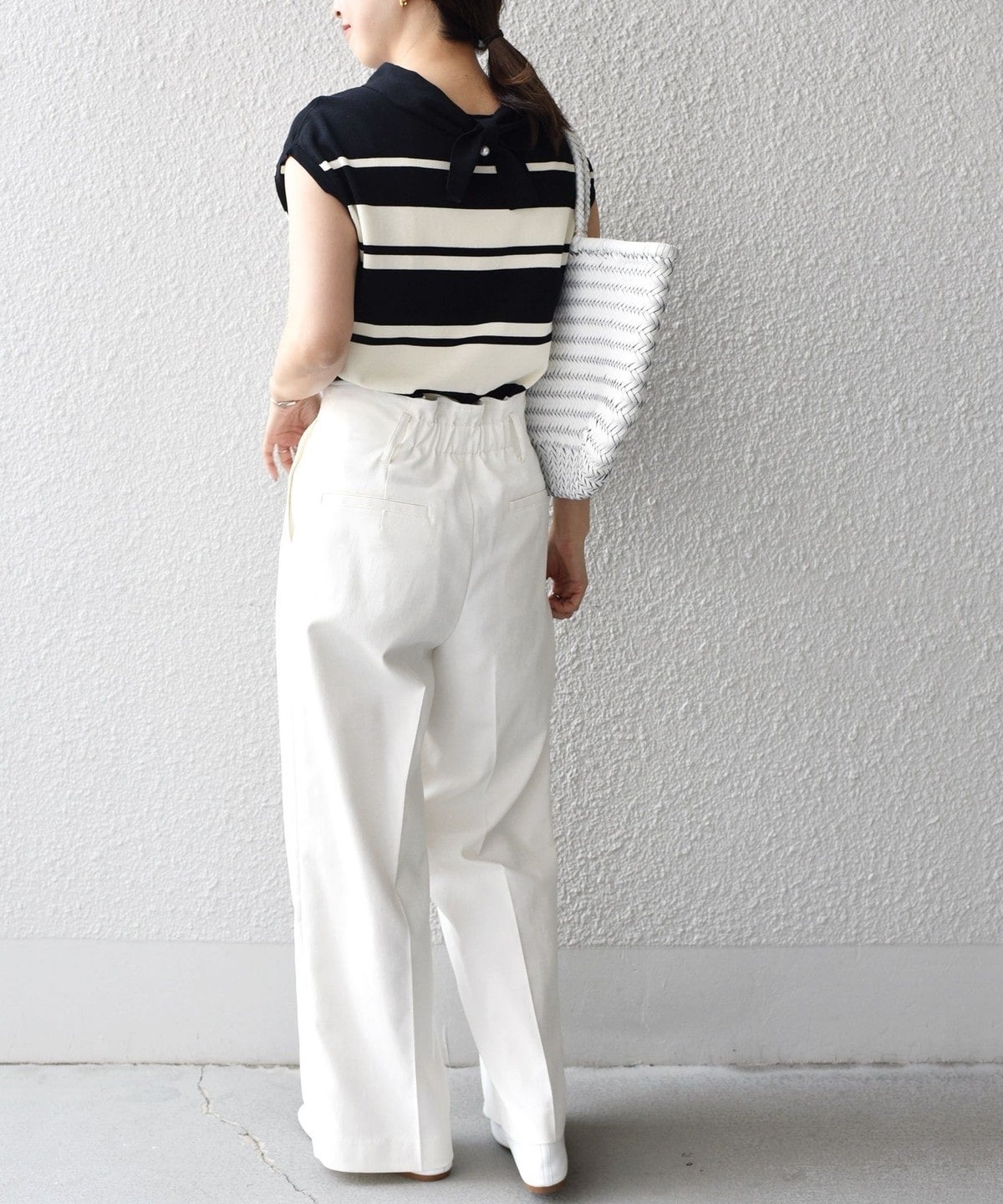 ・濃いめのデニムや白パンツでマリンな雰囲気もおすすめ。