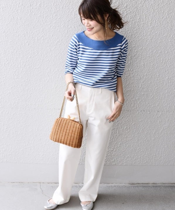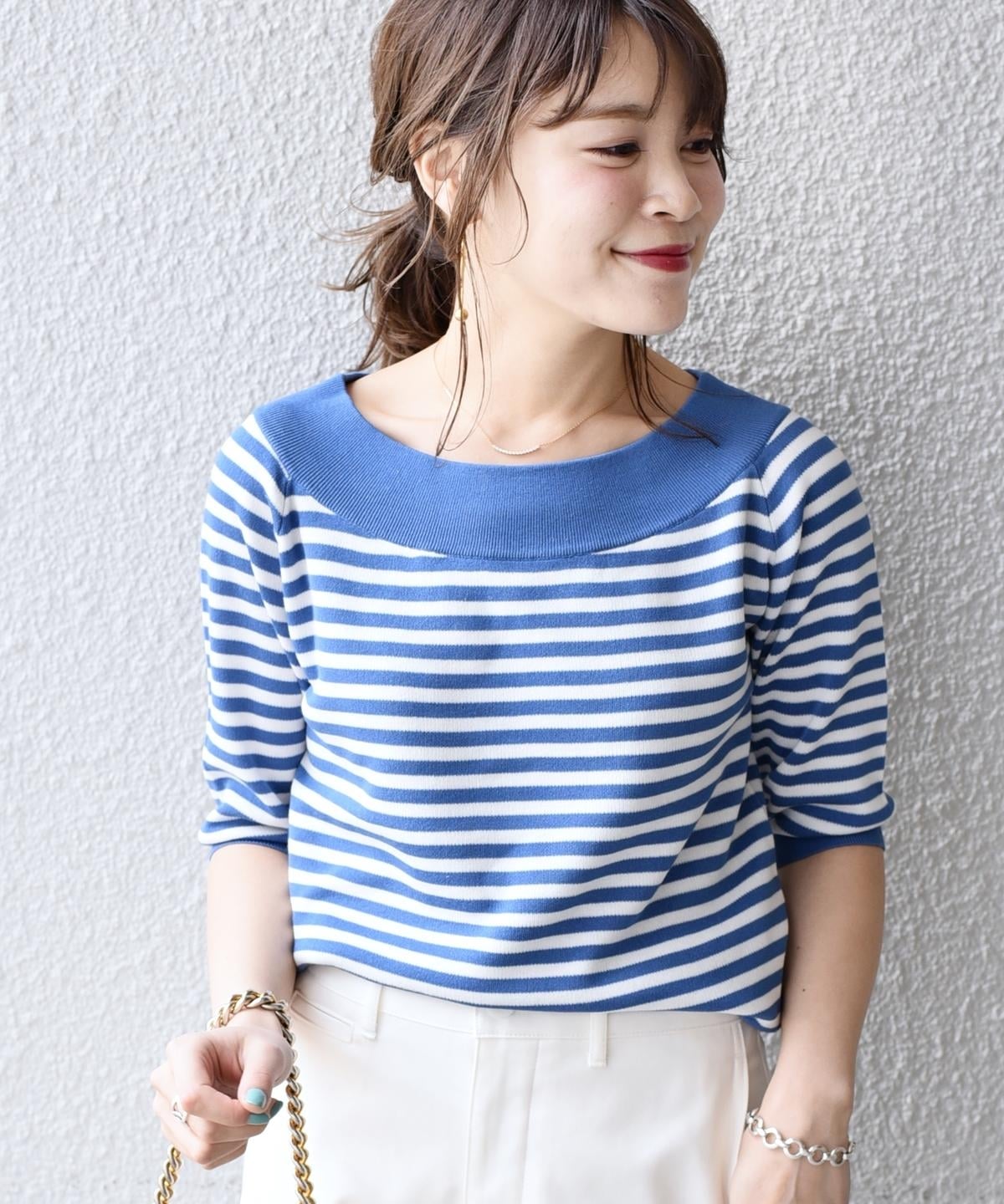 春夏にぴったりな程良い素材感のニットです。長い時期で使える5分袖型は持っていると重宝するアイテム。