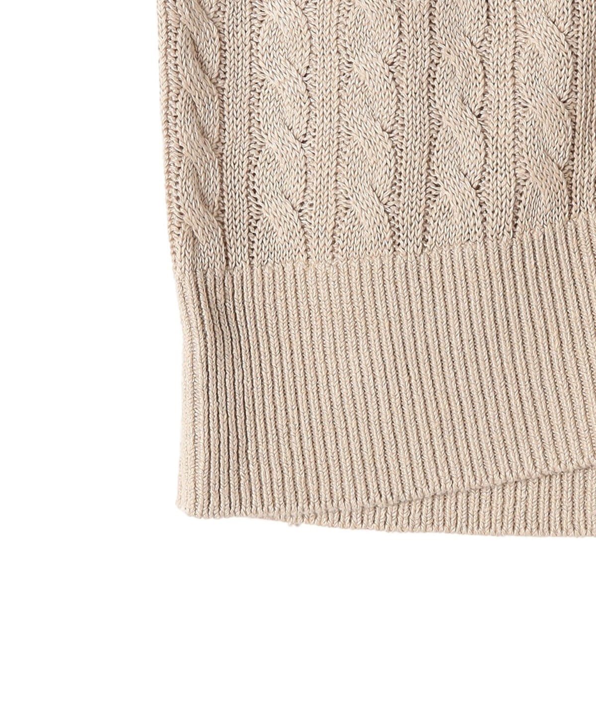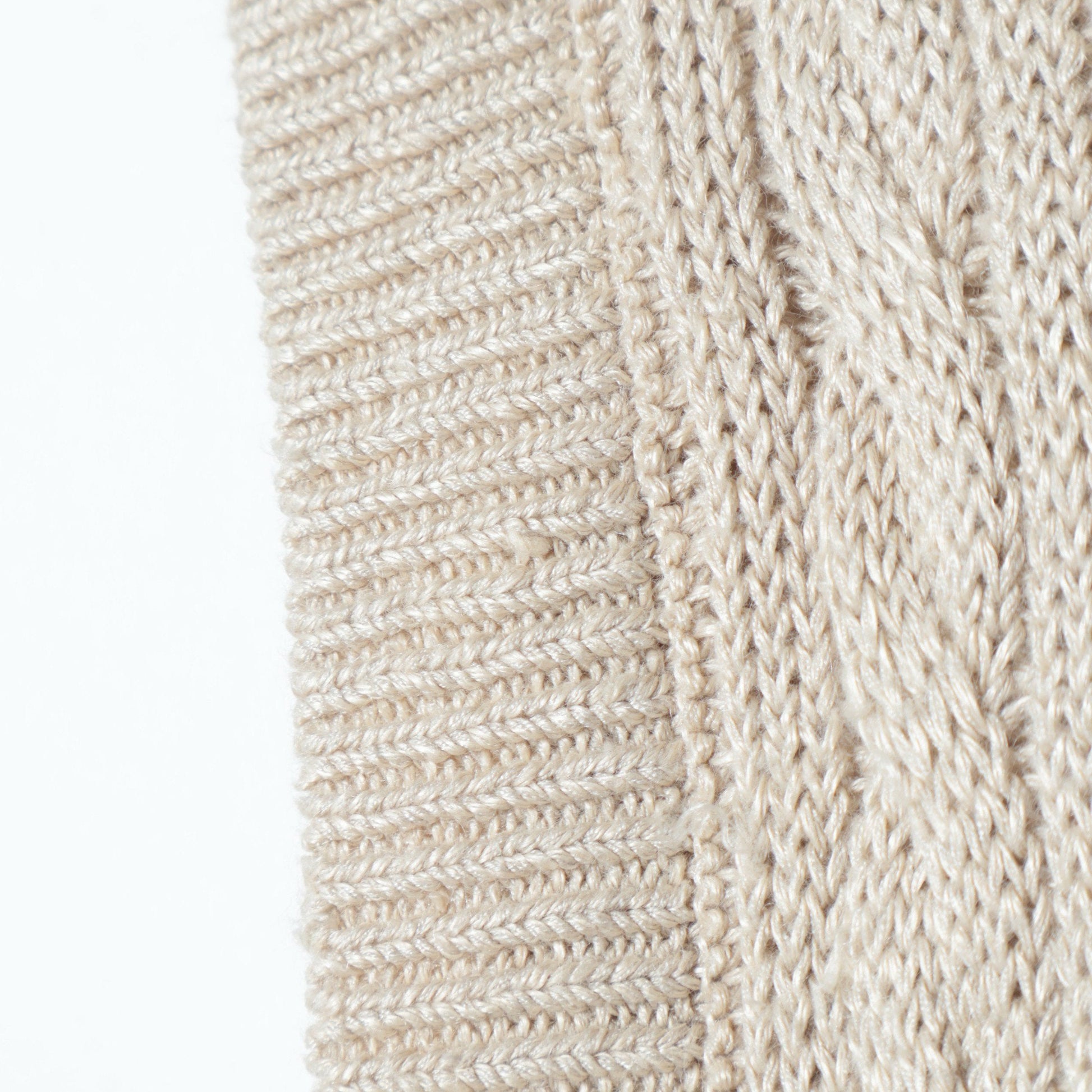 太い番手のシルクリネンの糸を使ってケーブル編みのベストを作りました。
