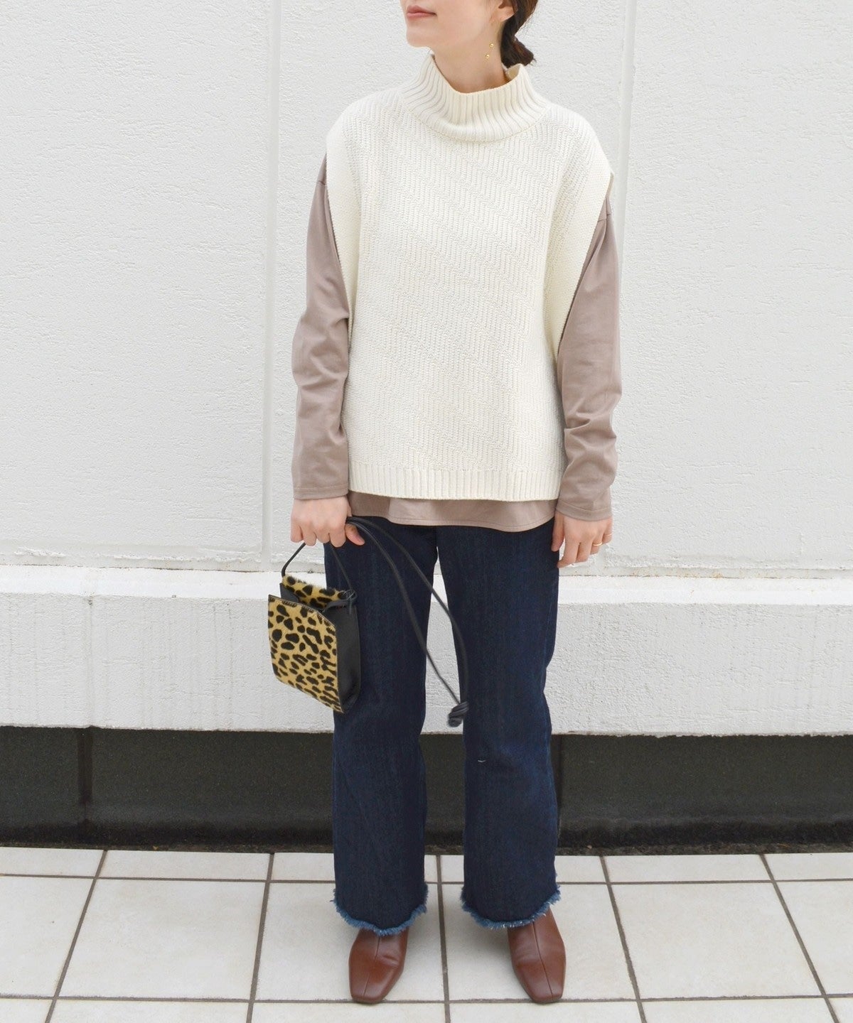 存在感はありながらブラウスとインナーとも合わせやすく、レイヤードスタイルにおすすめの1着です。