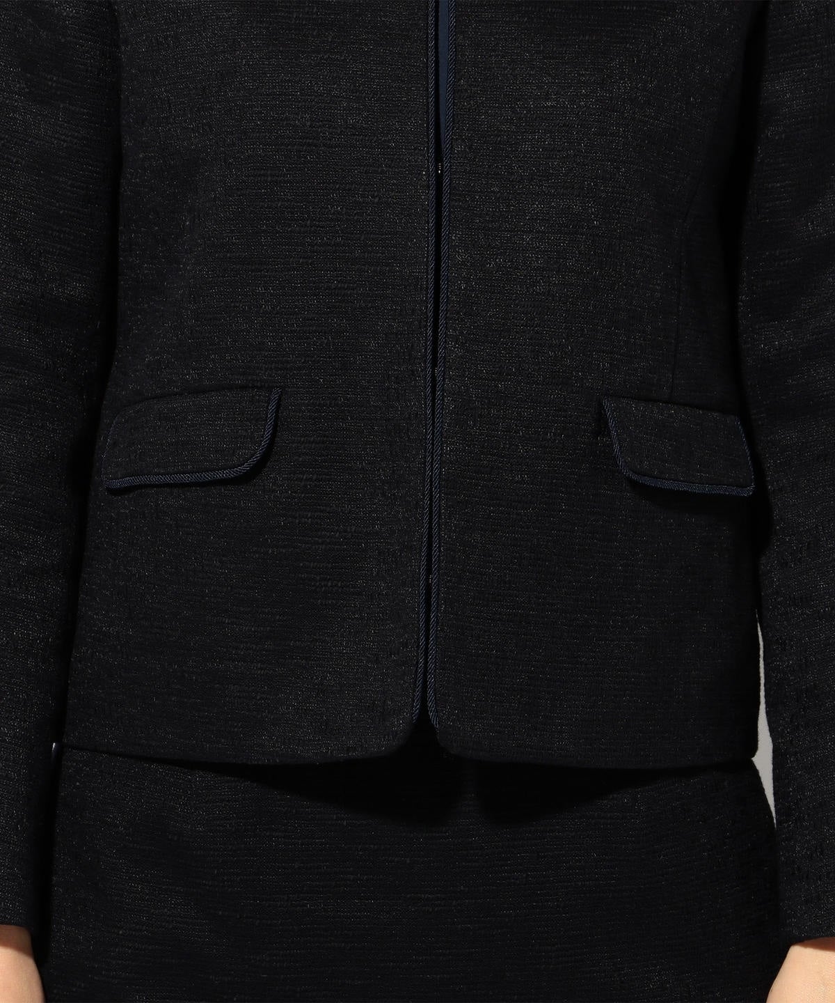 【セットアップ可】ジャージーツイードノーカラージャケット
