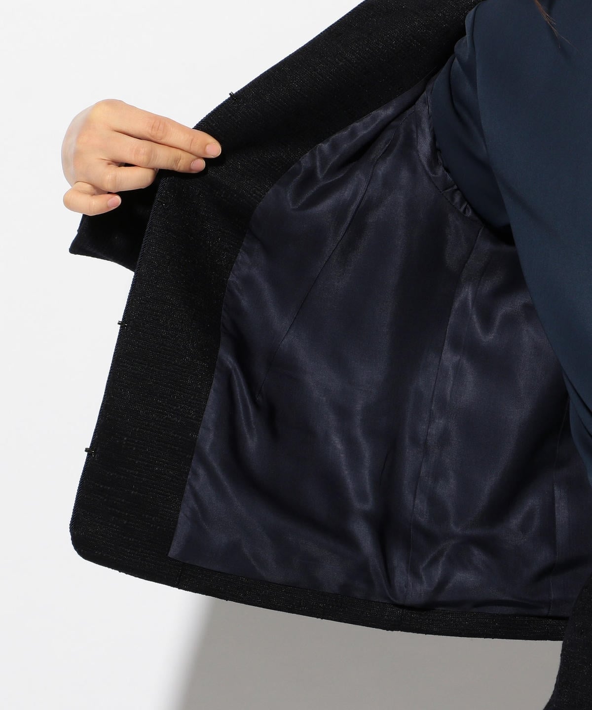 1枚持っていると何かと活躍してくれるジャケットは、ツイード生地にノーカラーが上品な印象で着て頂けるデザイン。