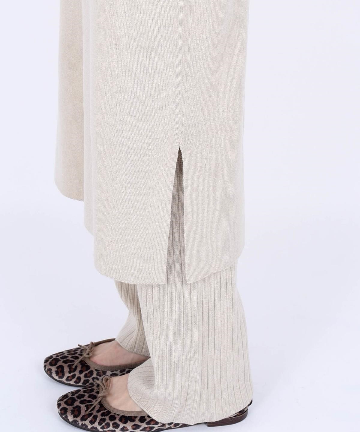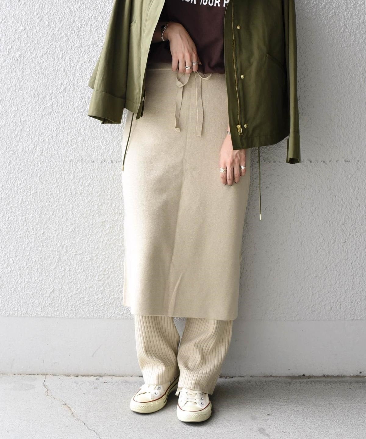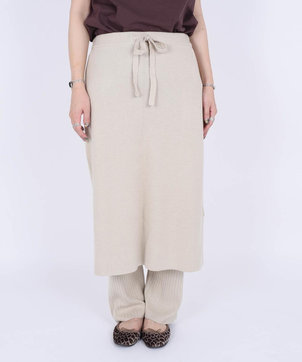 これからの季節に大活躍してくれる、ニットスカートとリブパンツがセットになって登場♪別々でも着まわしが可能な嬉しい仕様。やわらかな肌触りで、履き心地にもこだわりました。スカートはウエストにドロストが付いているのでサイズ調節が可能、裾にはスリットを施し足さばきもし易いデザインに。素材も厚すぎないので、秋から春にかけて3シーズン使っていただけます。