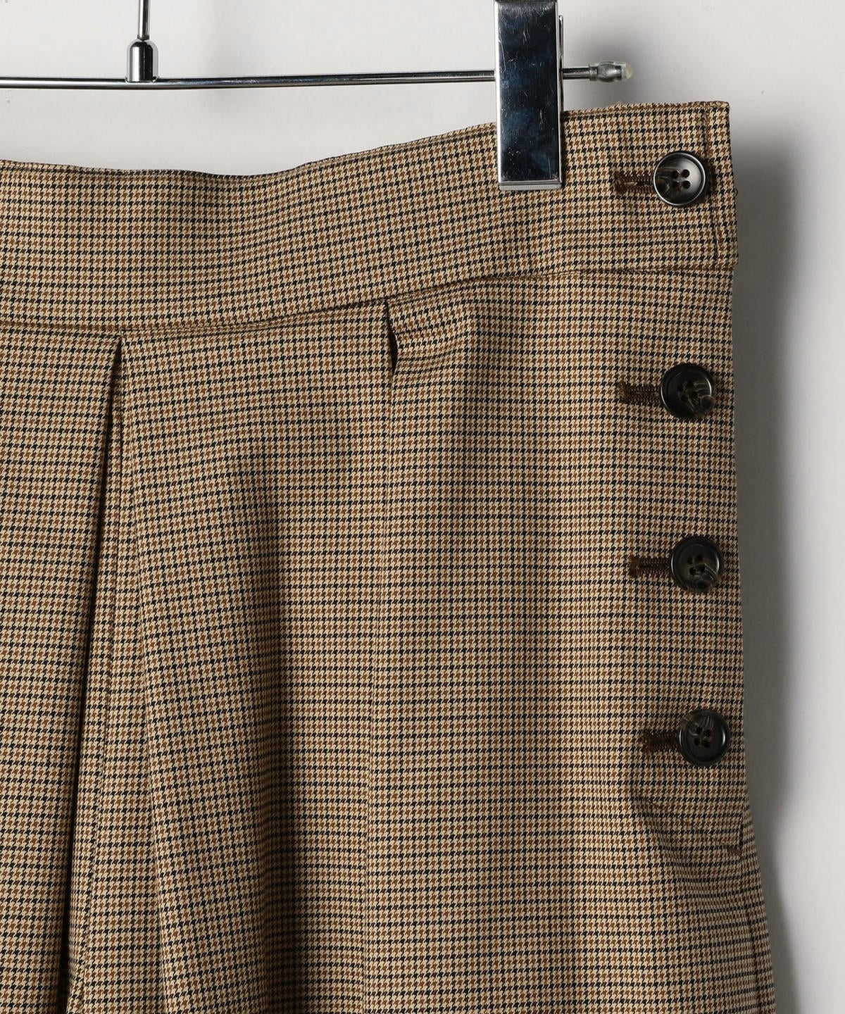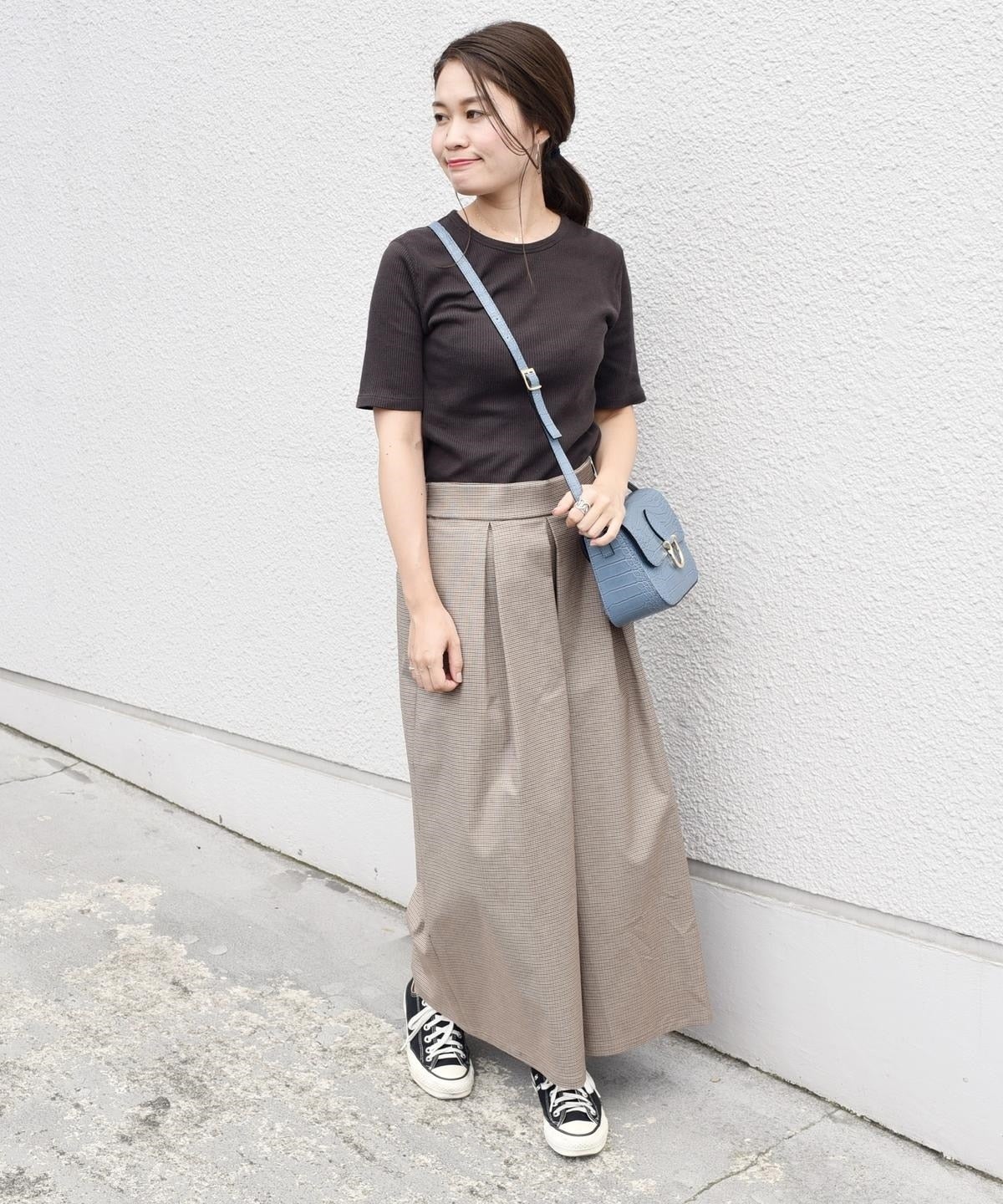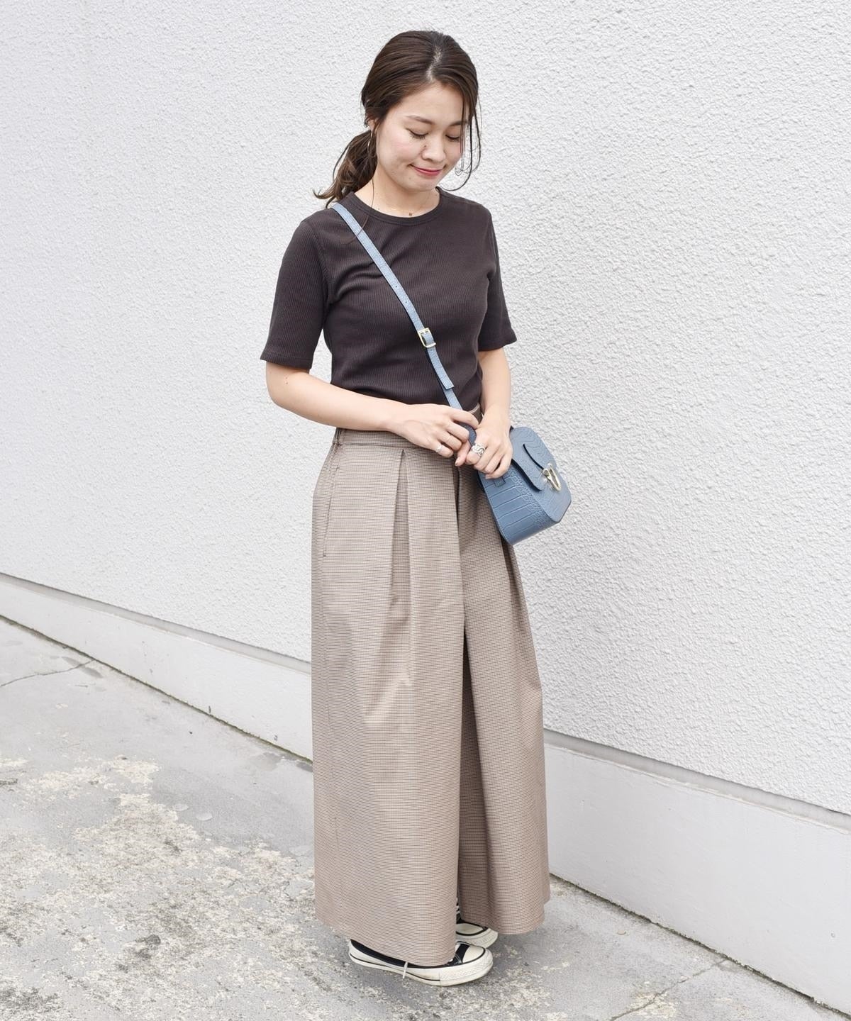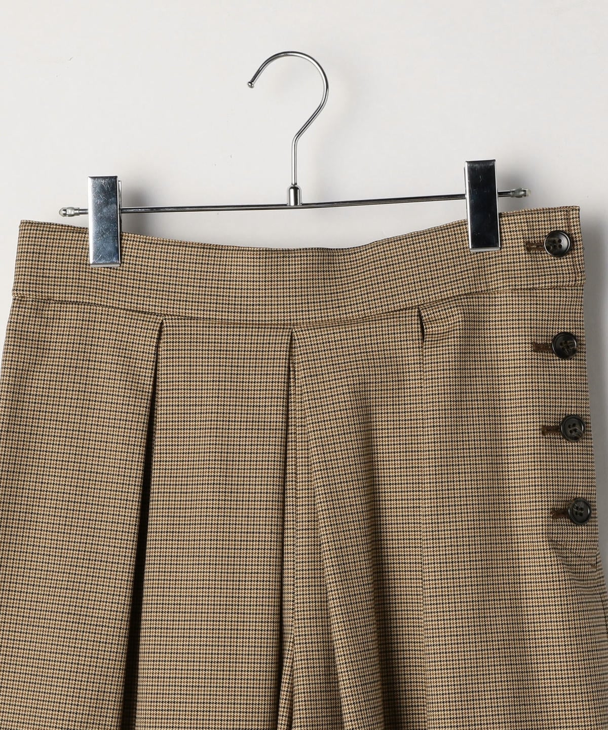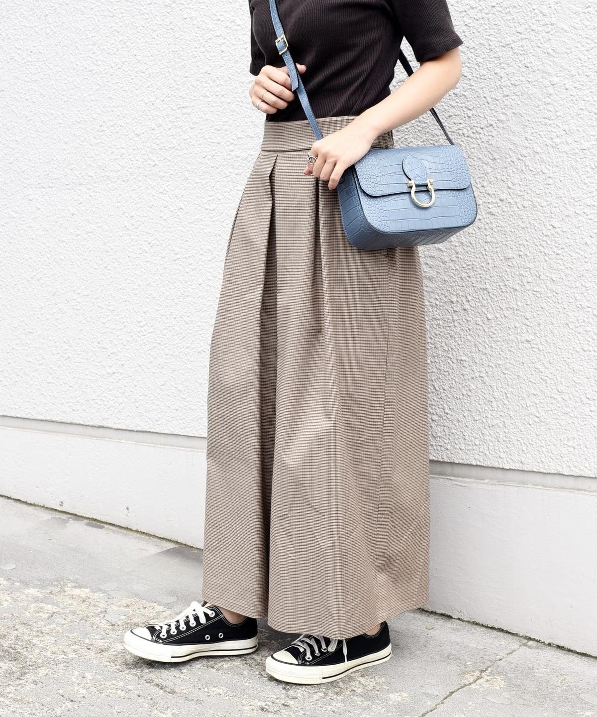 ハリのある素材を使用したロング丈キュロット。ボリューム感のあるワイドなシルエットながらも、ウエストのタックが腰周りをすっきりと見せてくれます。トップスを選ばず着回し力抜群の優秀アイテム。カジュアルになりすぎないグレンチェック柄のキュロットは、秋冬のシーズンムードを高めてくれます。オンオフ兼用として大活躍間違いなしの一品。