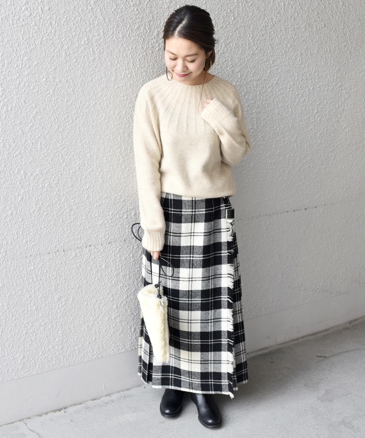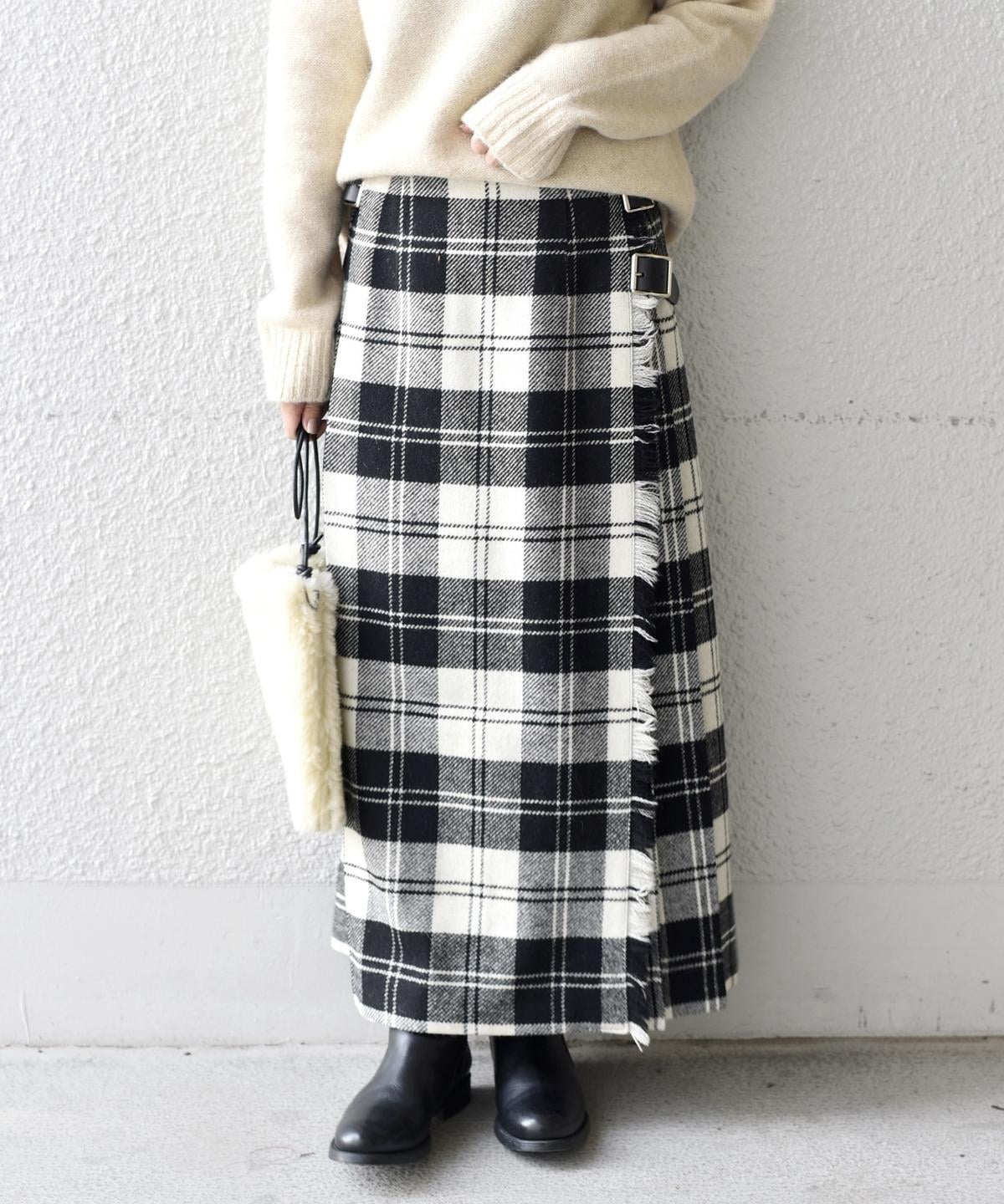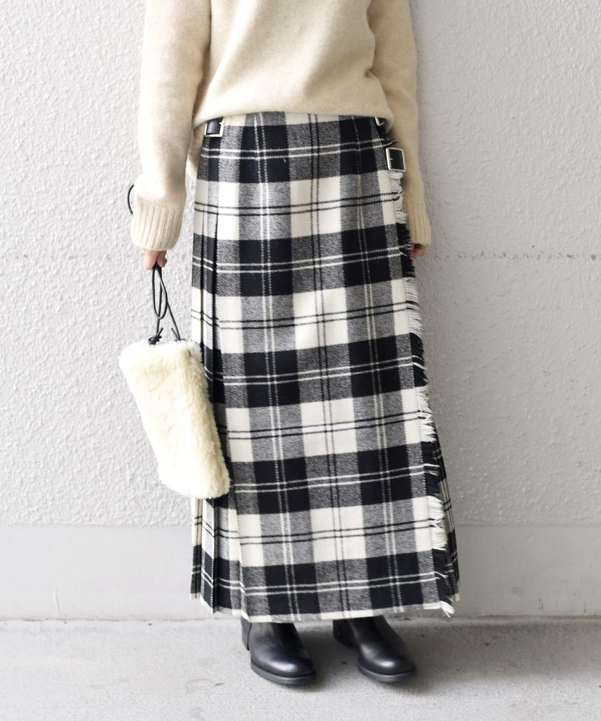定番で人気の高いクラシカルな雰囲気のキルトスカート。両サイドにベルトディティールをあしらいアクセントをプラスしました。前後で違った表情を楽しめるデザインで、バックに施したプリーツも魅力的です◎スニーカーやブーツなどとも相性の良い長めの丈感で、デイリーユースにもぴったりです。