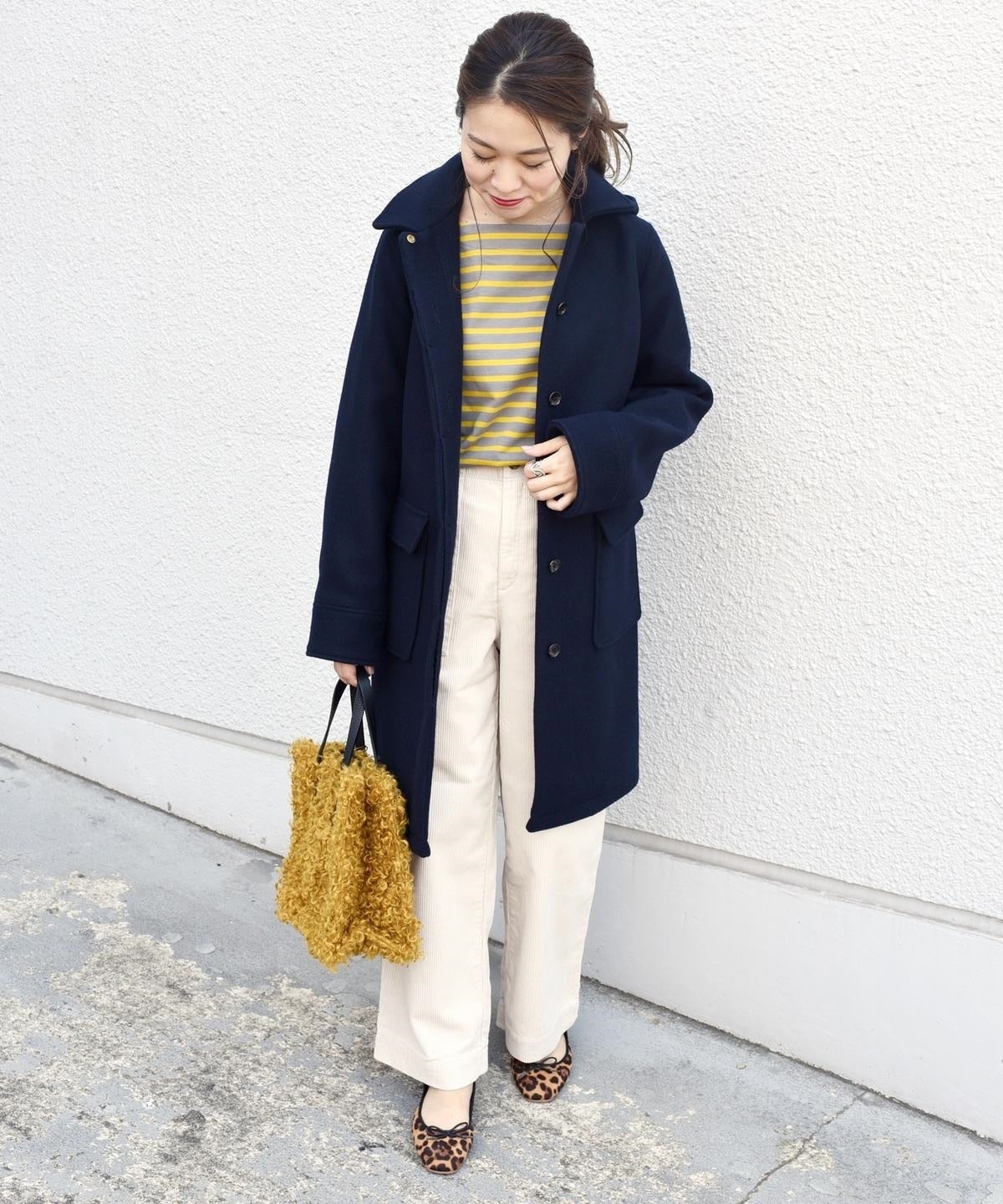 サイズ感:ひざ丈でボトムとのバランスもとりやすいです◎中にニットを着ても窮屈感なく、着用できました。