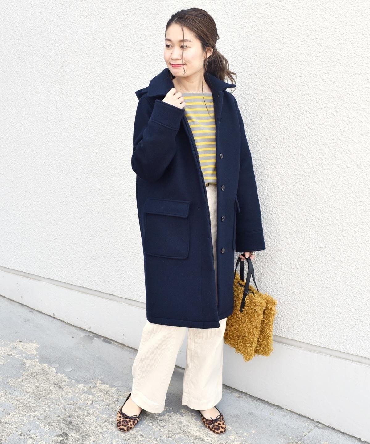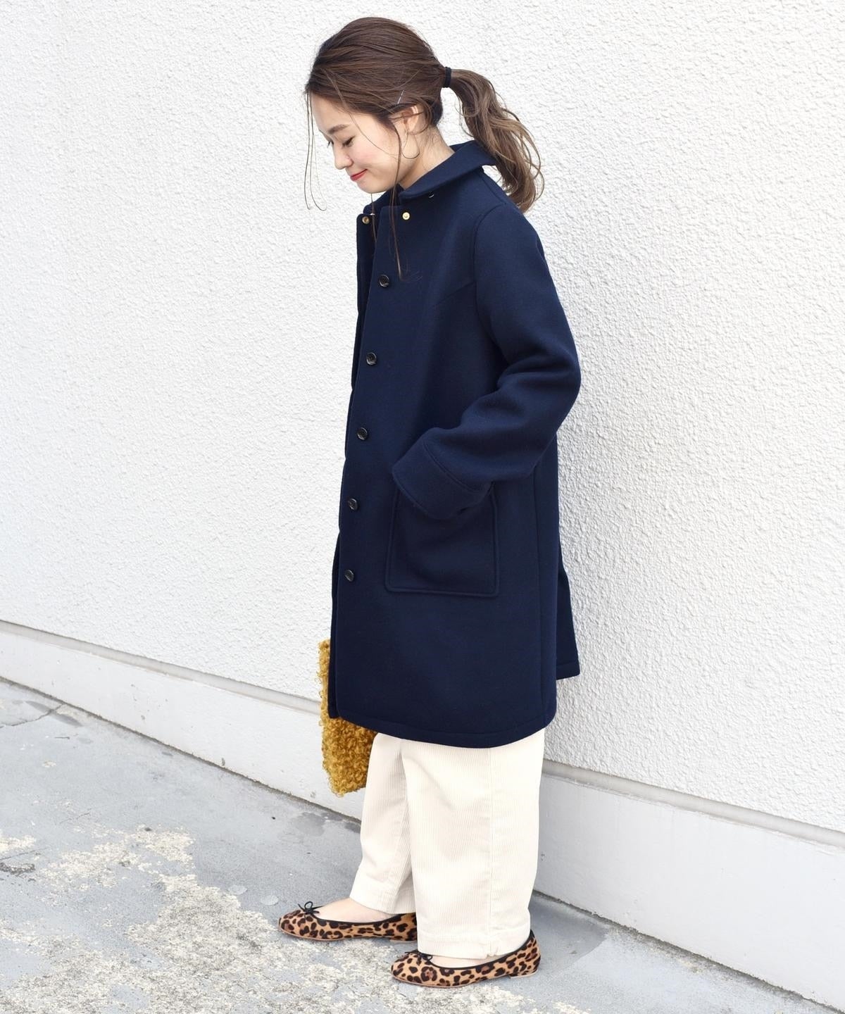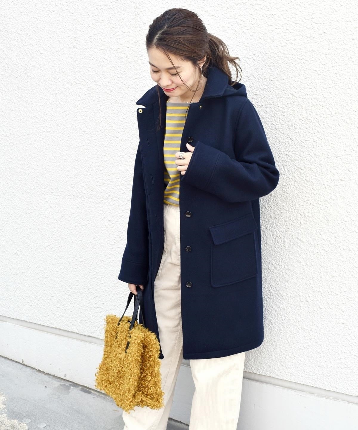 この冬重宝すること間違いなしのステンカラーコートが登場♪ほどよくハリのある生地を使用し、すっきりとしたシルエットが魅力的。着用するとさほど重さは感じず、デイリーに活躍してくれそう。大きめのパッチポケットがアクセントになり、カジュアルな印象に仕上がります。フードはボタンで簡単に取り外し可能なので、コーディネートに合わせて幅広く着こなせます。