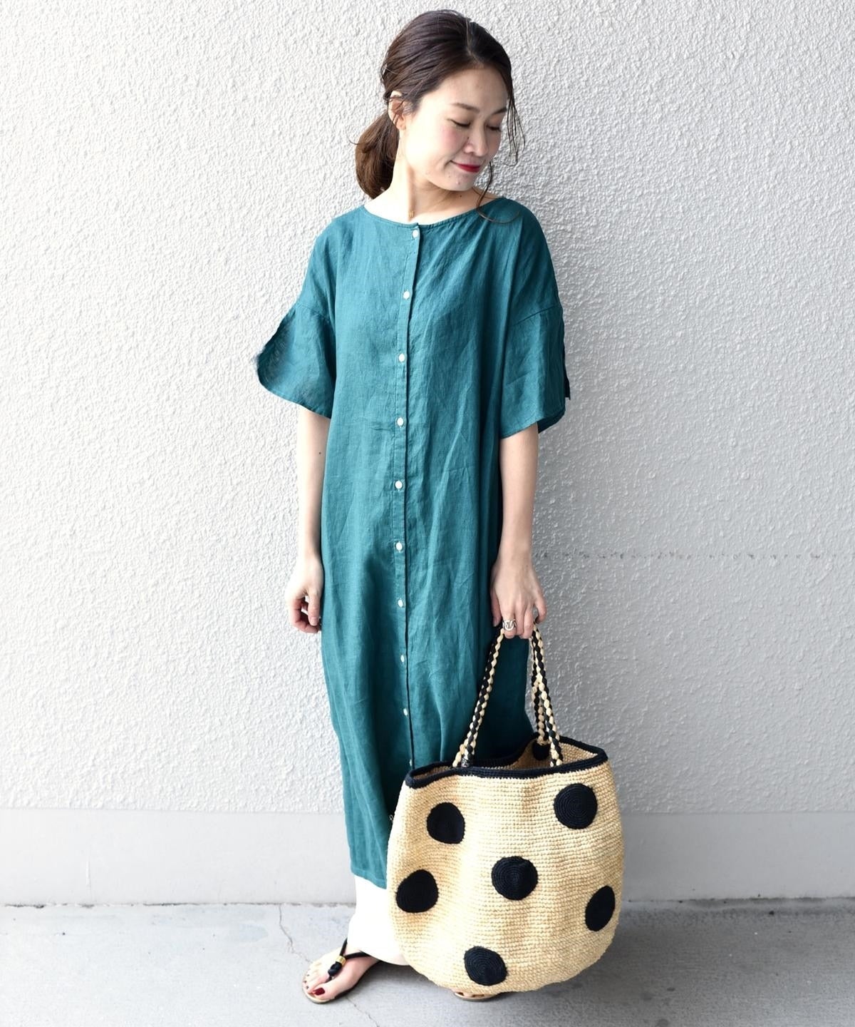 春夏に欠かせない涼しげなリネン素材のワンピース。袖にスリットが施された、動きのあるデザインが女性らしい一着です。フロントオープン型なので、ワンピースとしてはもちろん羽織りとしても使えます。また前後どちらでも使える2WAY仕様でスタイリングの幅も広がる一着。ウエストのリボンは取り外しできるので、気分によって様々な着こなし方をお楽しみいただけます。透け感を気にしないで着用できるよう、ペチコートもセットになっています。ご家庭でお手入れ可能なのも、これからの季節嬉しいポイントです♪
