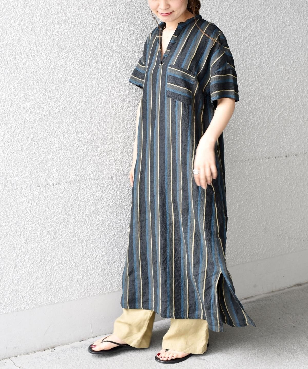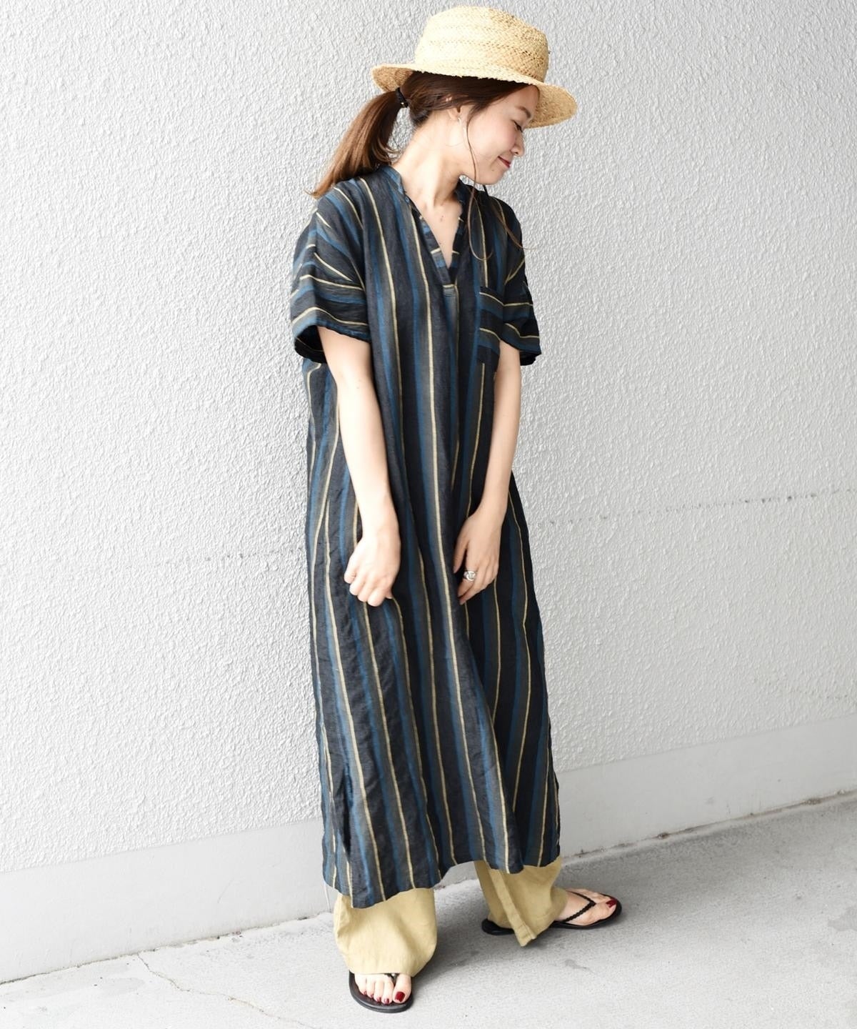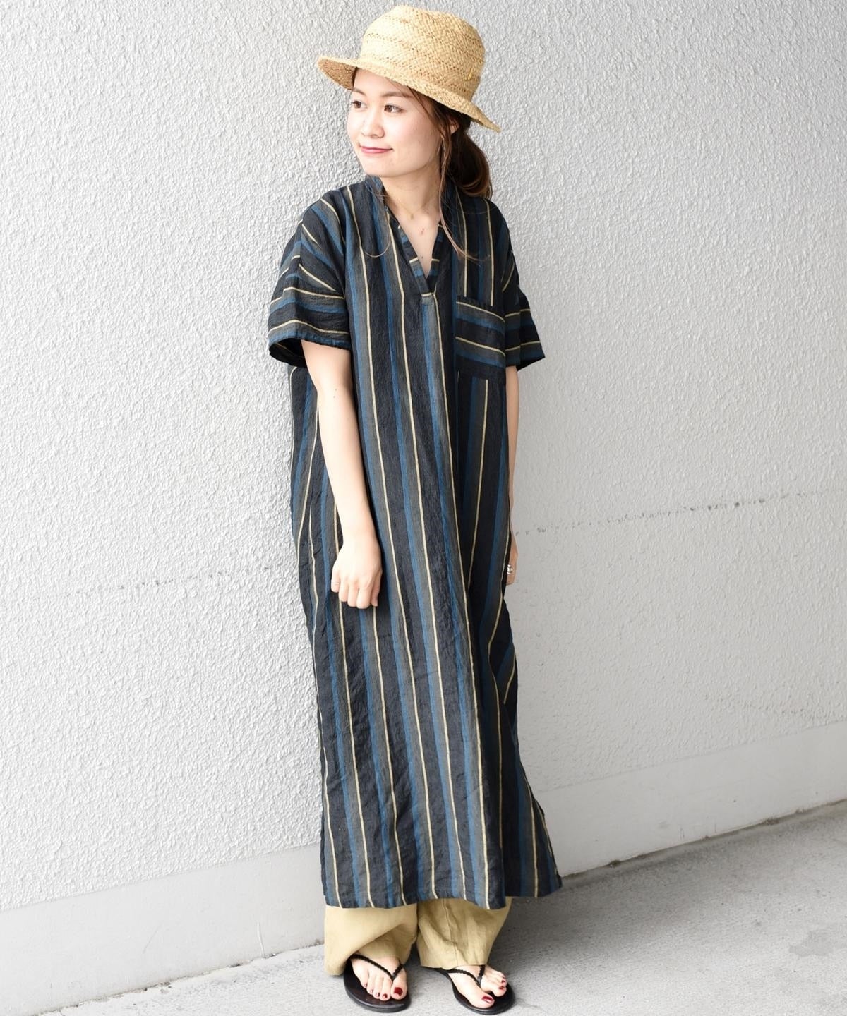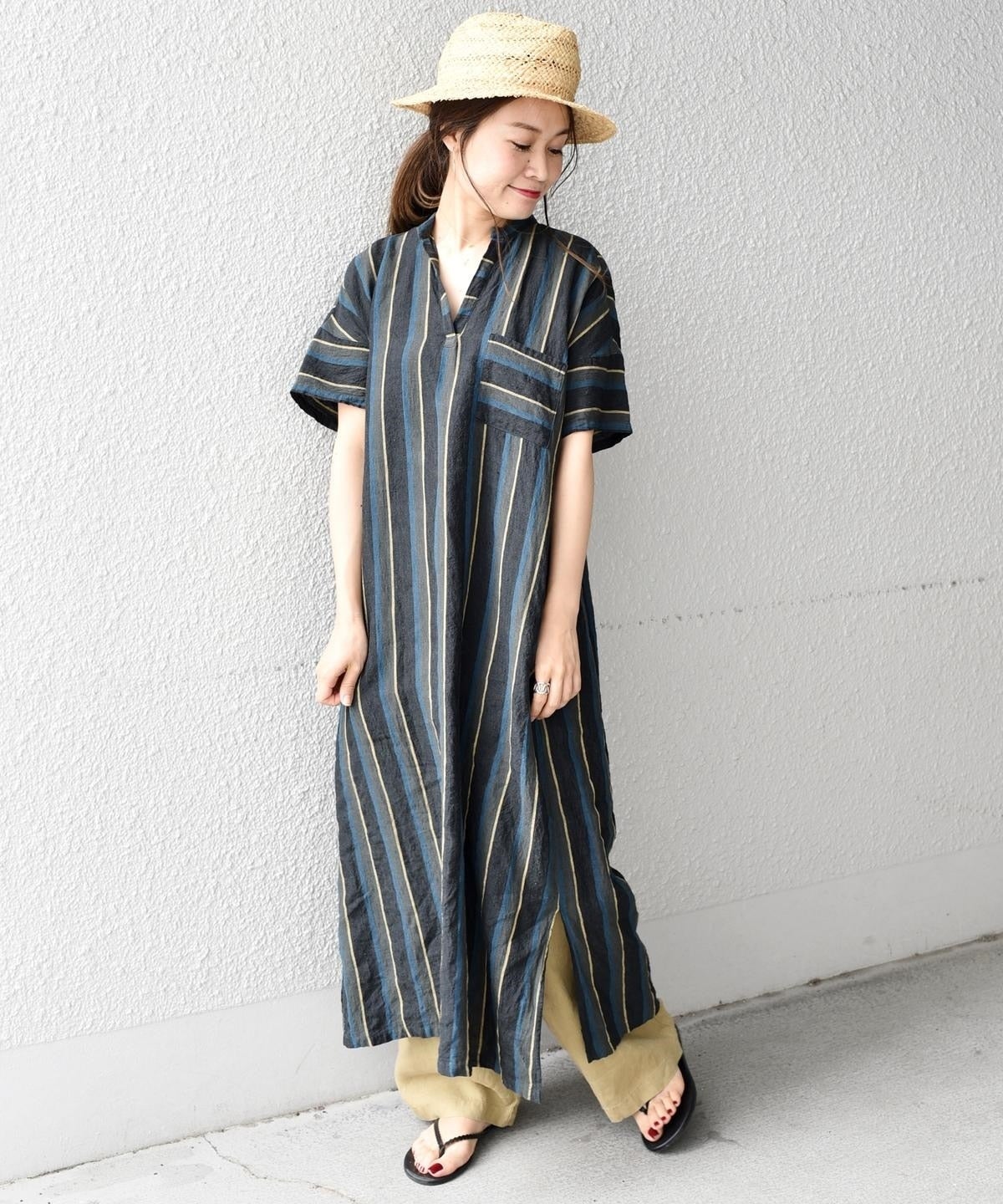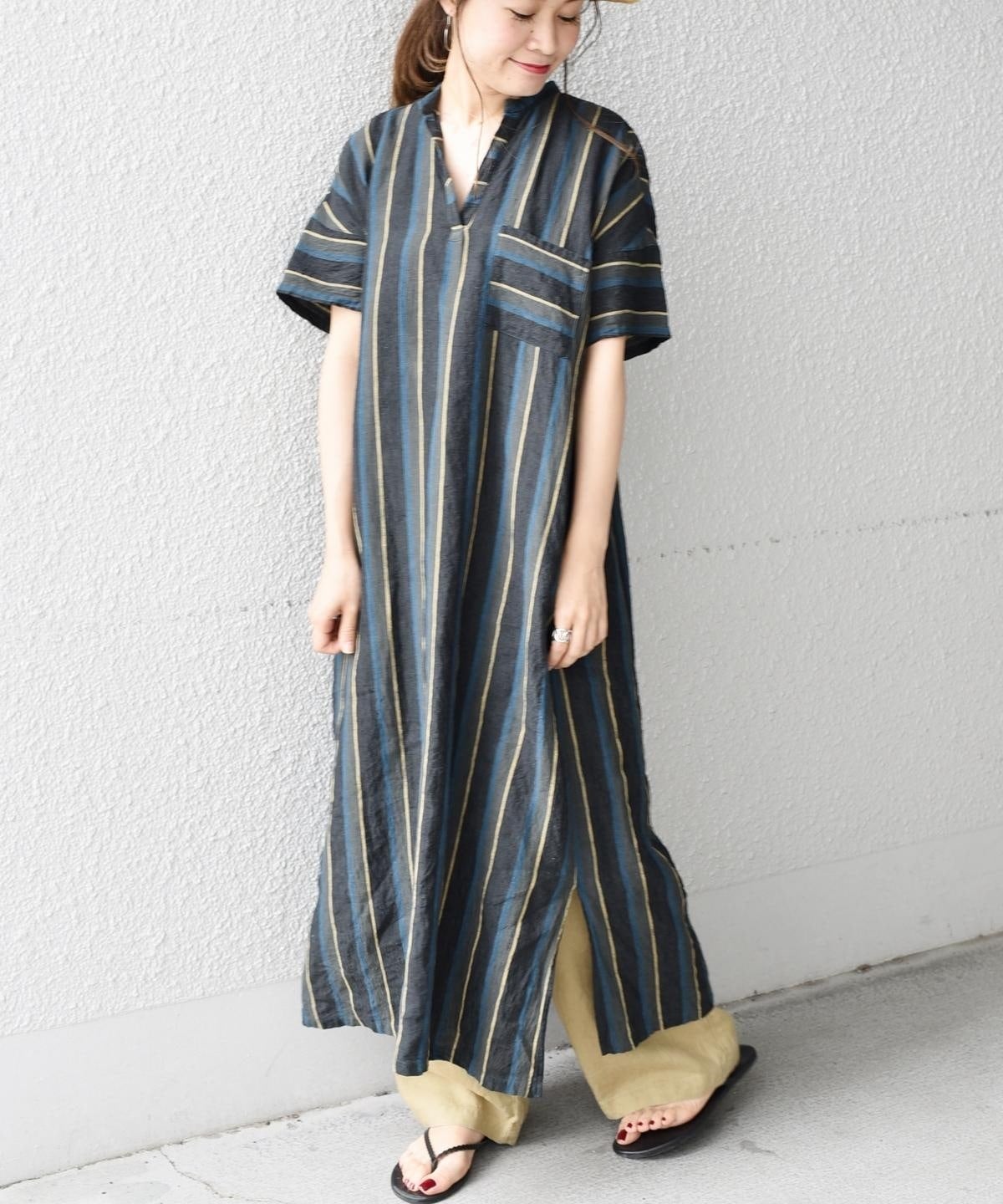 夏らしいストライプが目を引くワンピース。