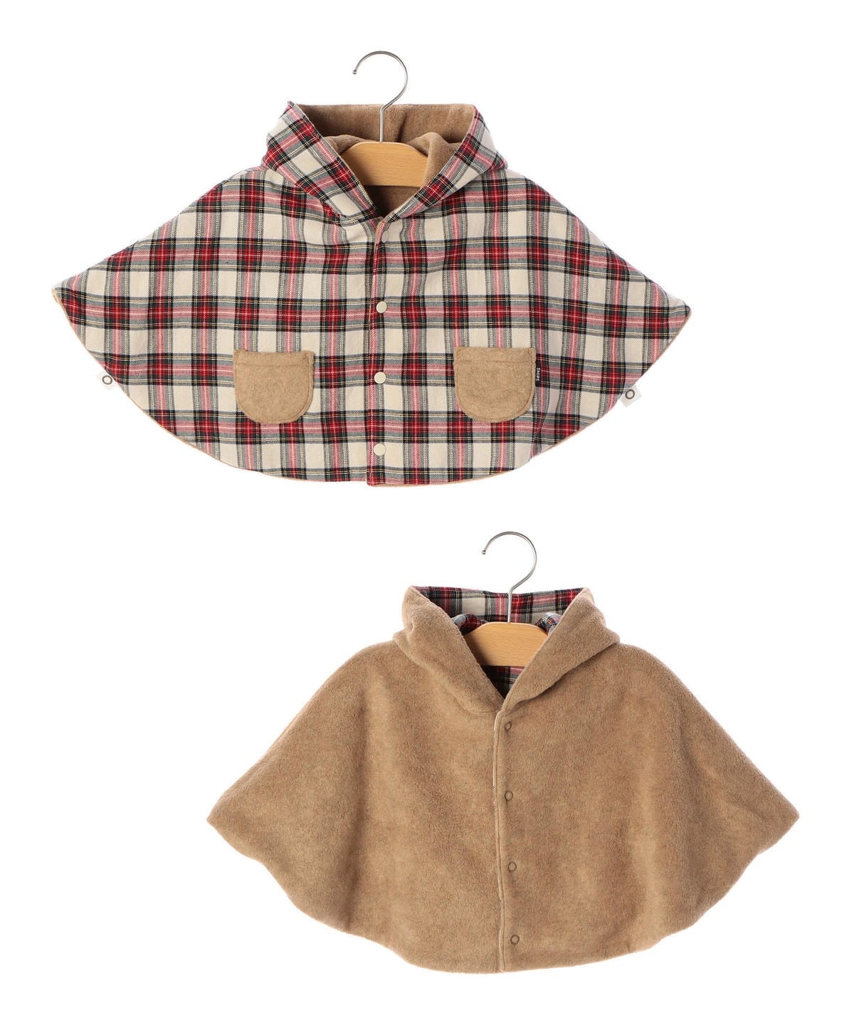 伝統的なタータンチェックとフリースのリバーシブルマントです。