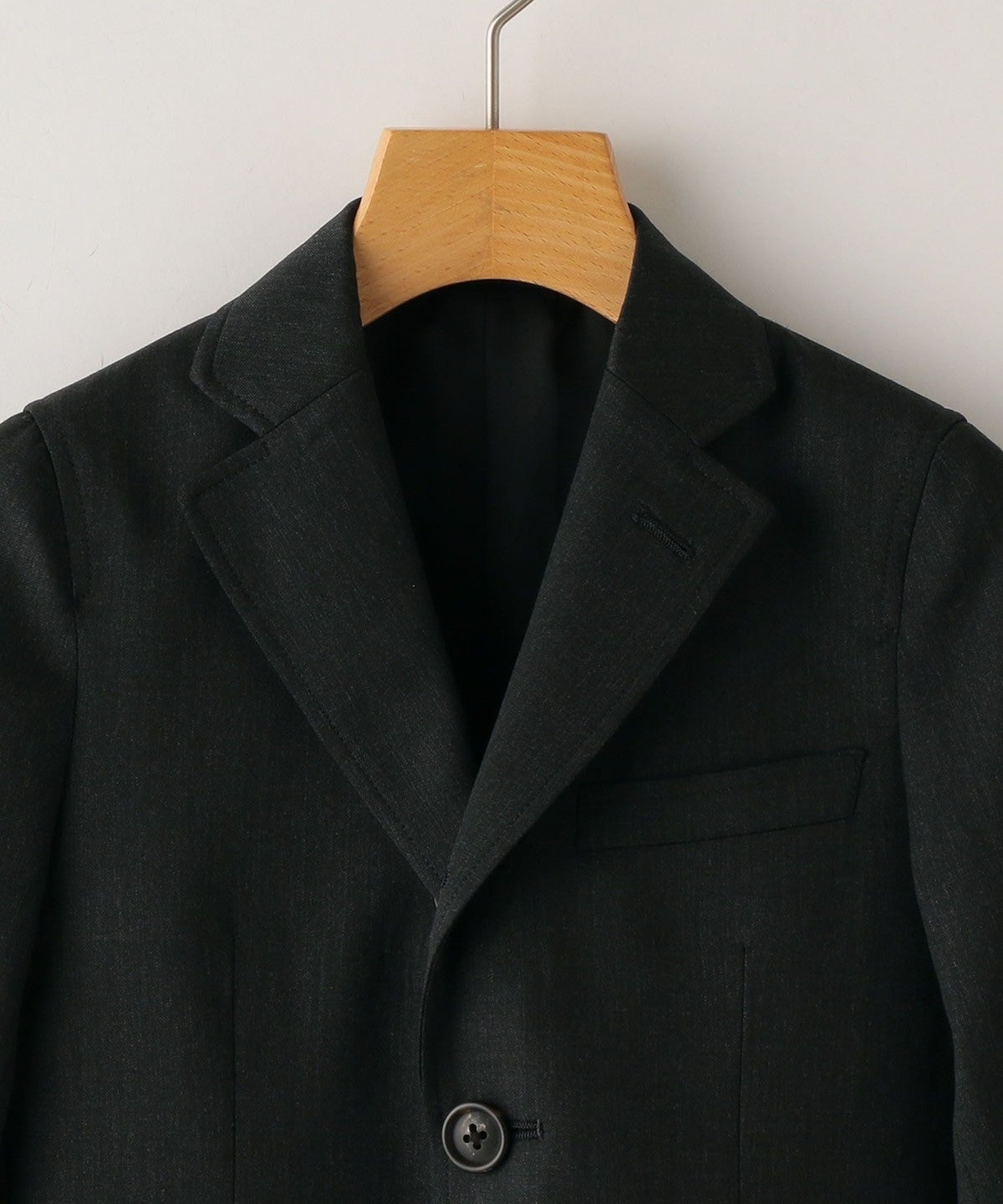 毛50%の柔らかく上質な素材感とシックなダークグレーの色味が凛々しい印象。