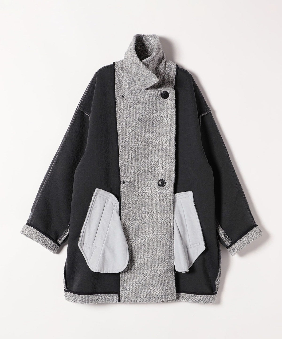 立体感のあるコートなので、細身シルエットのスカートやパンツと合わせるのがおすすめ。