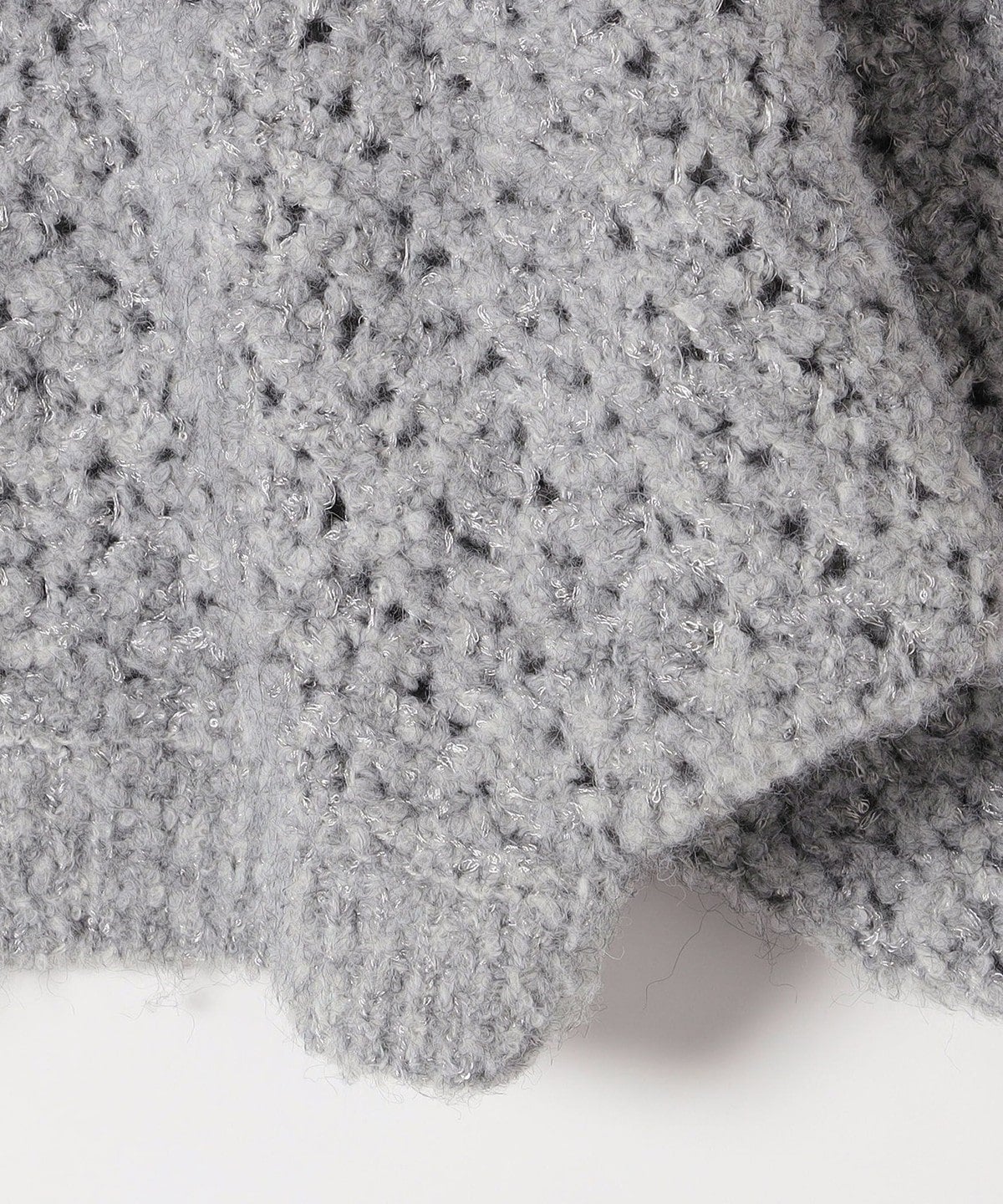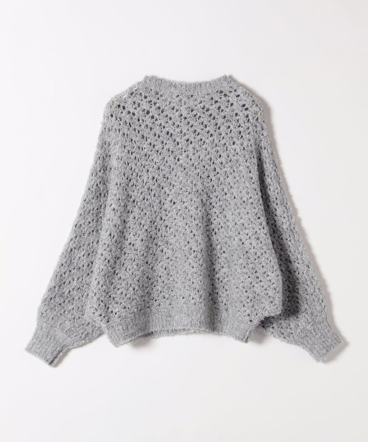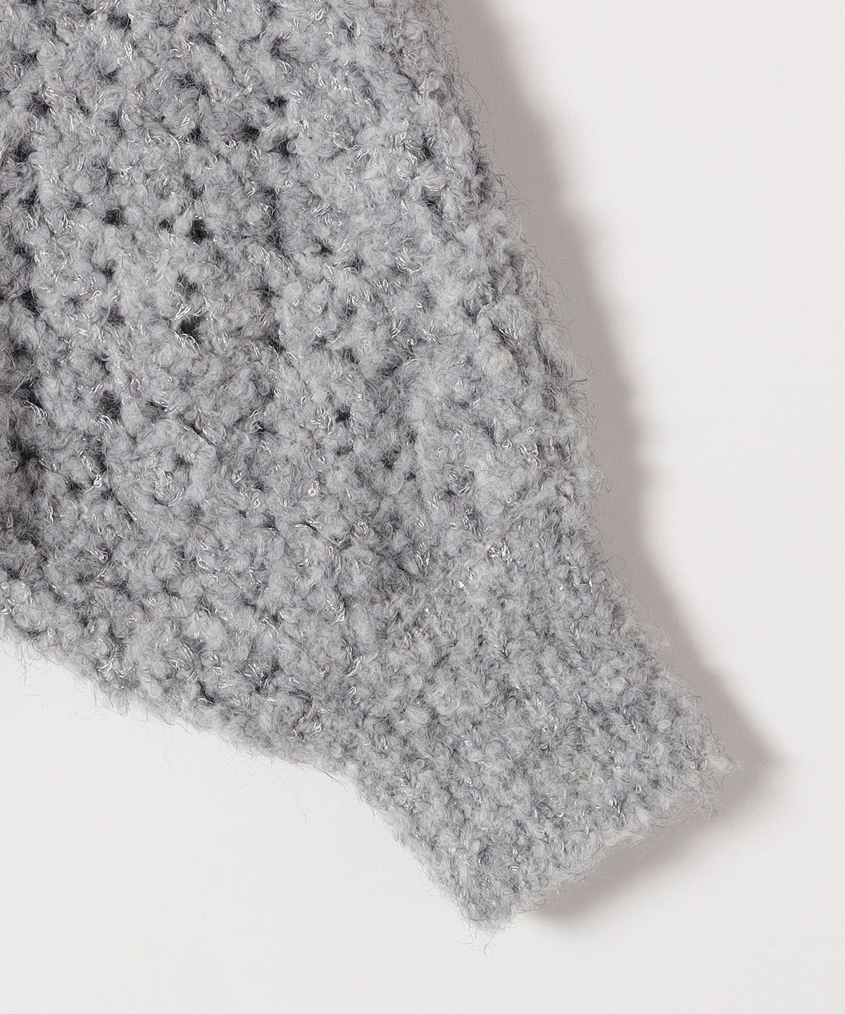 小さなスパンコールと、編み込まれた光沢のある糸がきらっと上品に輝くざっくりニット。