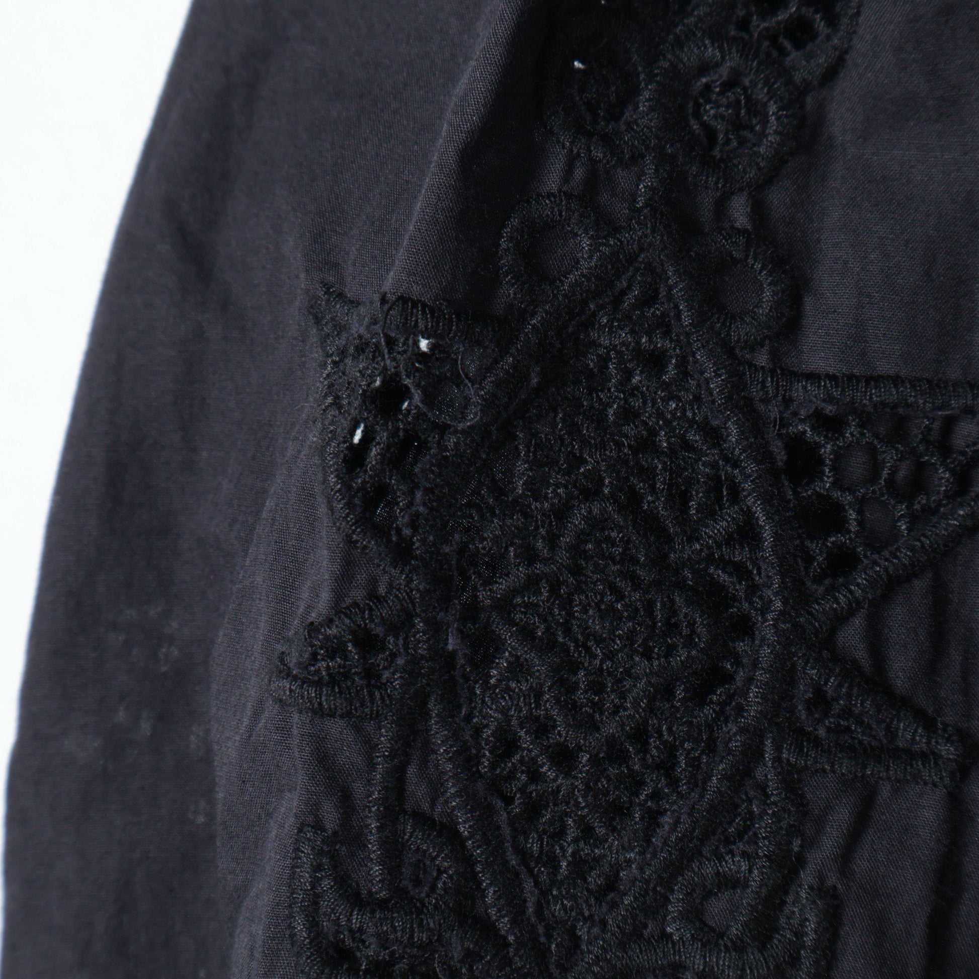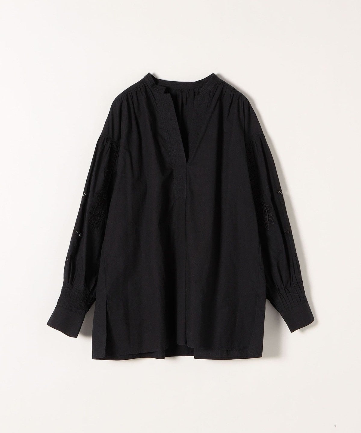 袖に大胆に施したモチーフのカットワークや、カフス上のピンタック、衿周りのステッチワークなどデザインがふんだんに盛り込まれた贅沢なアイテム!