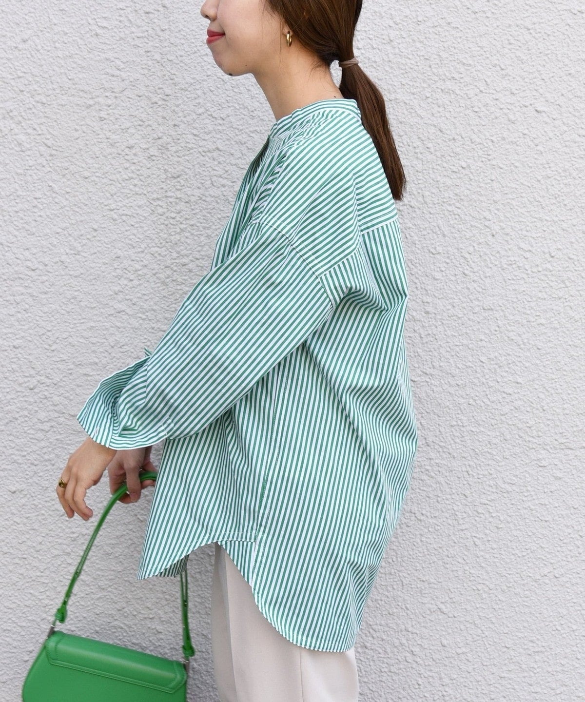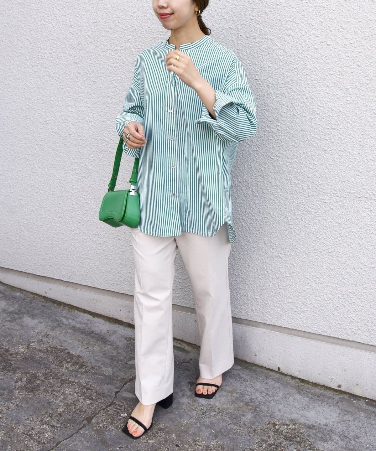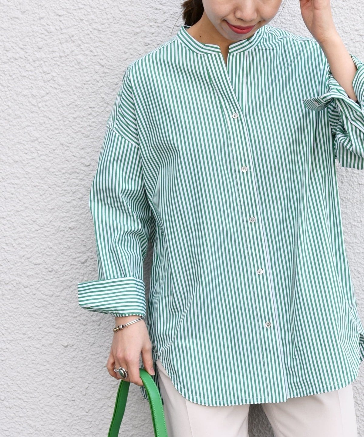すっきりとしたバンドカラーのデザインは幅広いスタイリングで活躍間違いです。