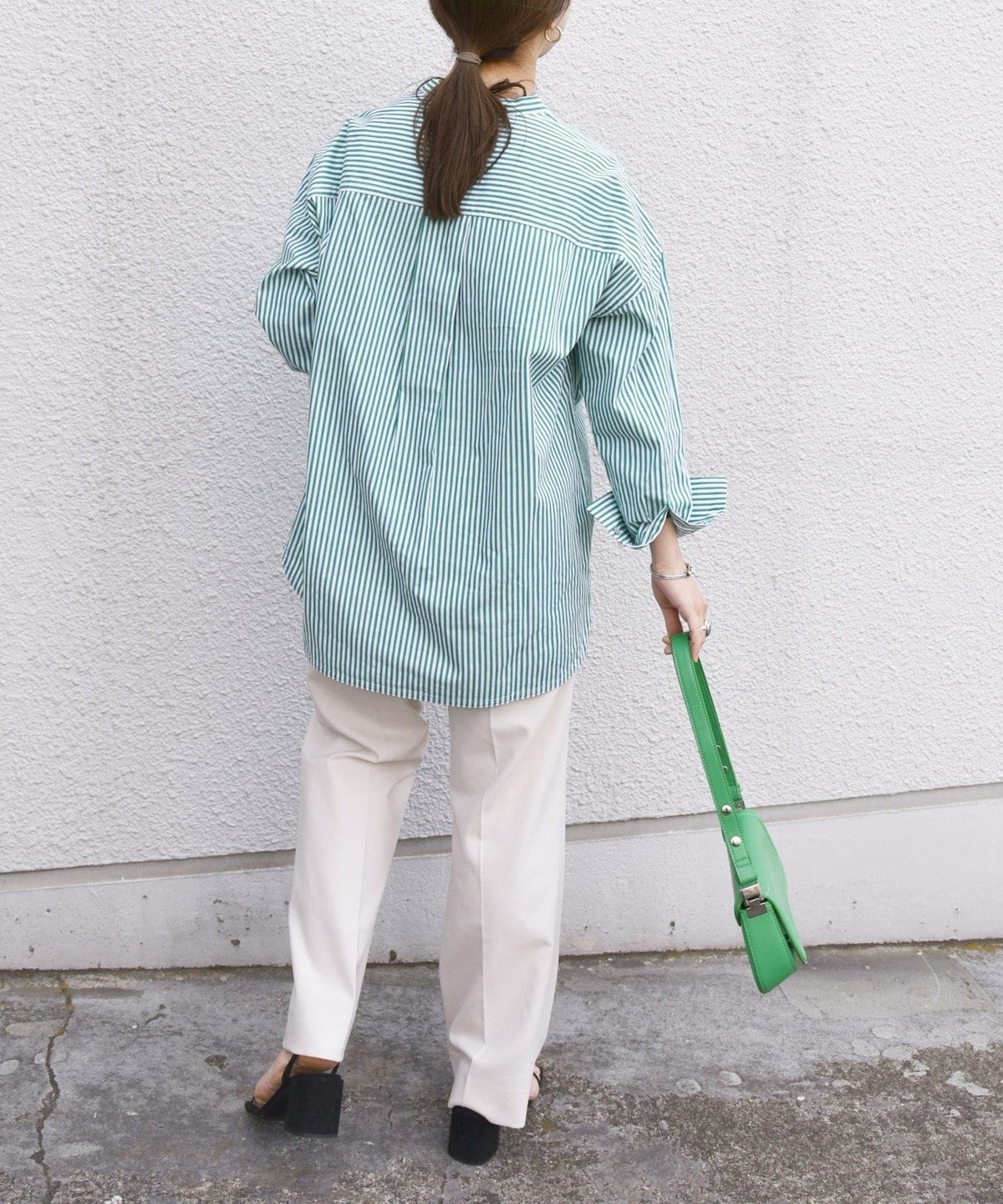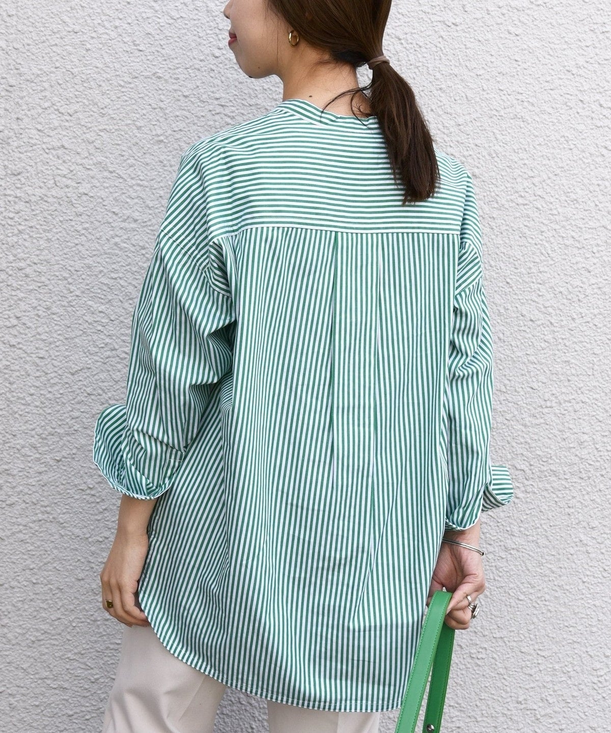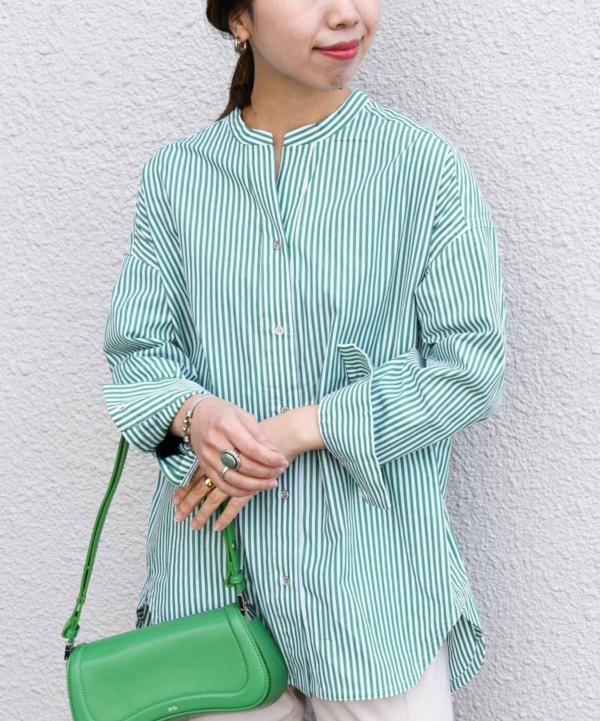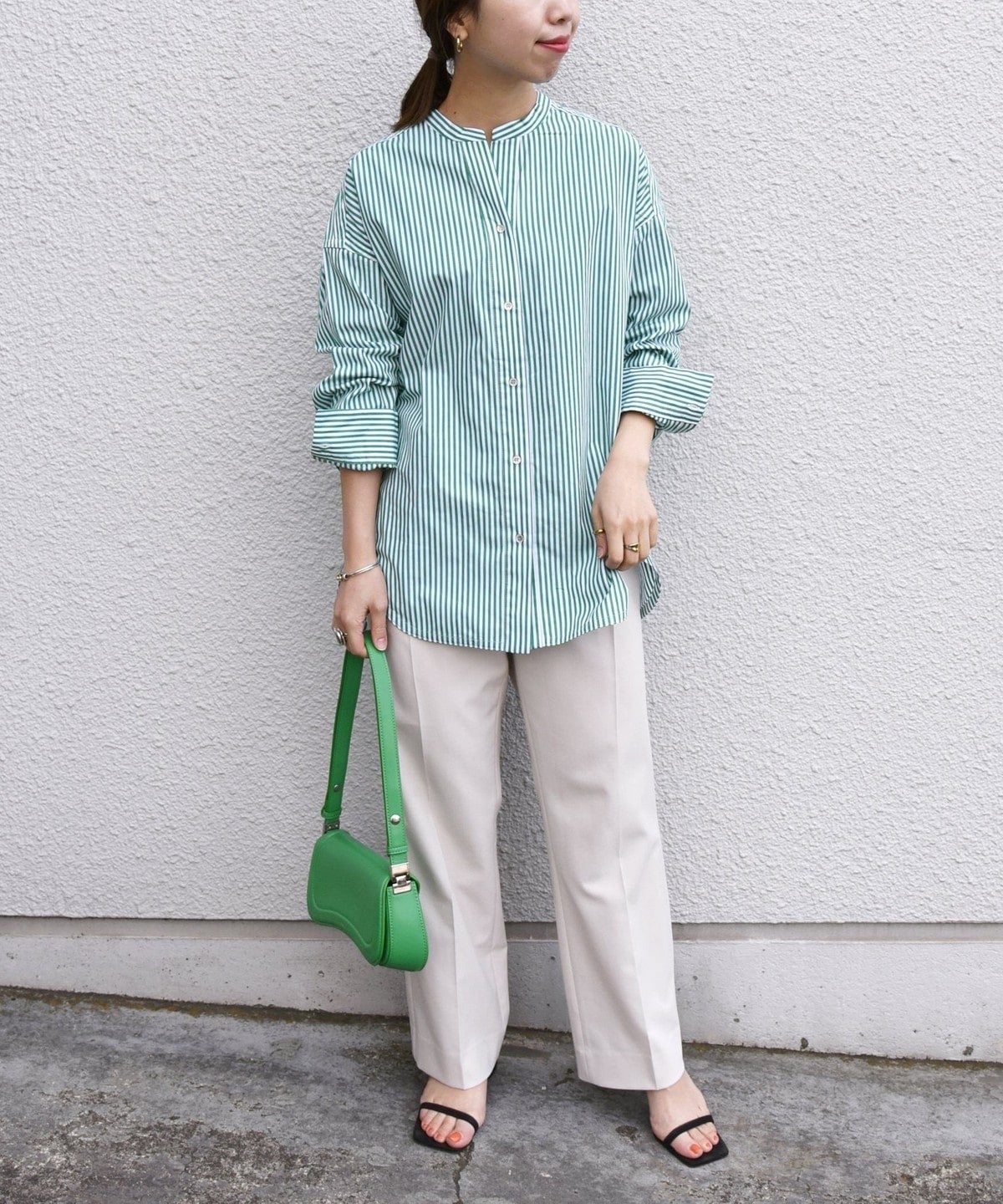 すっきりとしたバンドカラーのデザインは幅広いスタイリングで活躍間違いです。