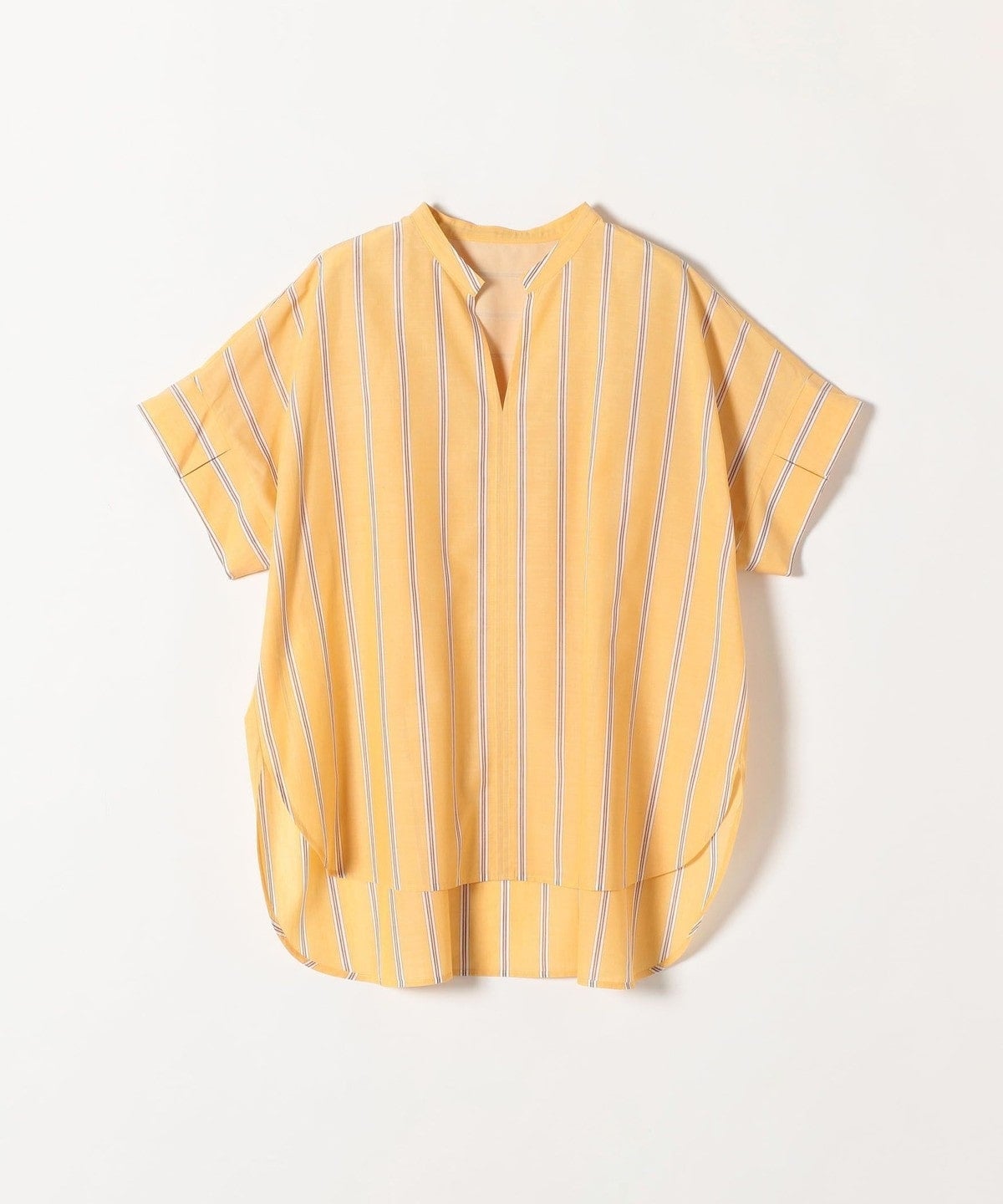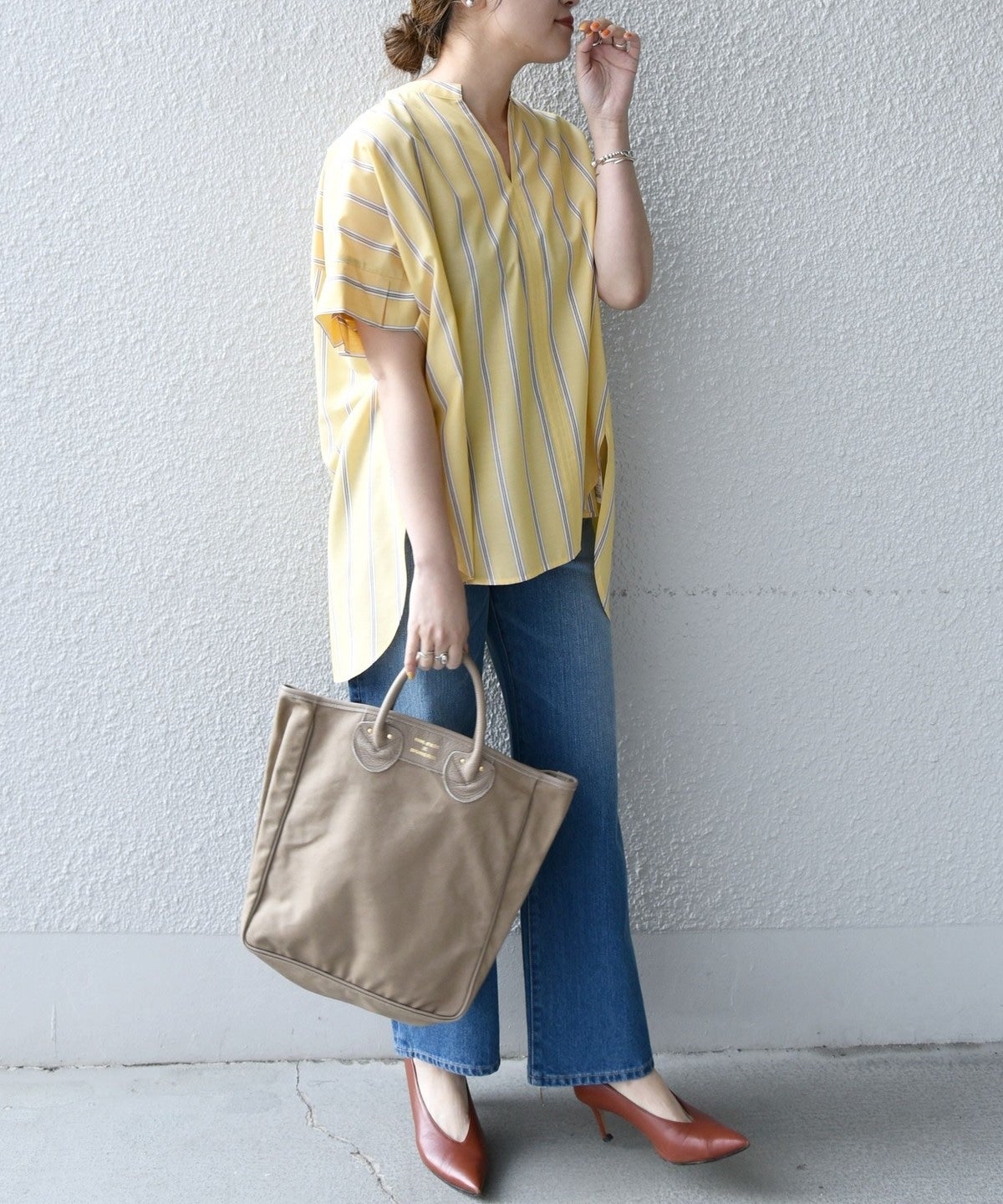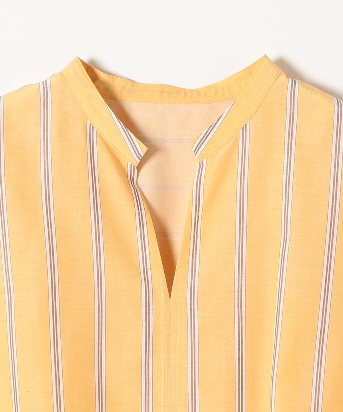 マルチストライプが爽やかな印象を与えてくれるスキッパーブラウス。