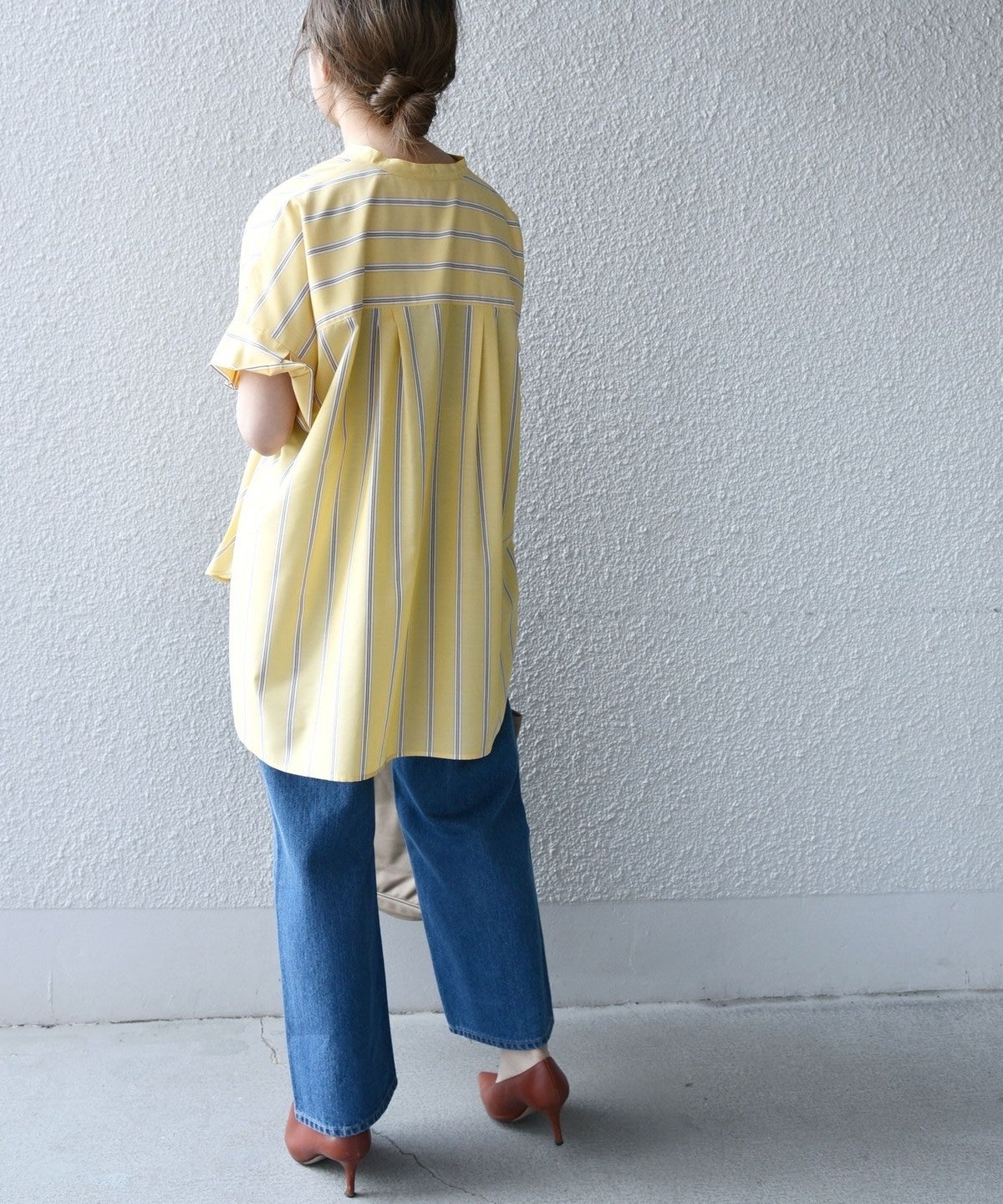 ルーズなシルエットなので、着用すると自然と衿が抜けてラフな印象に仕上がります。