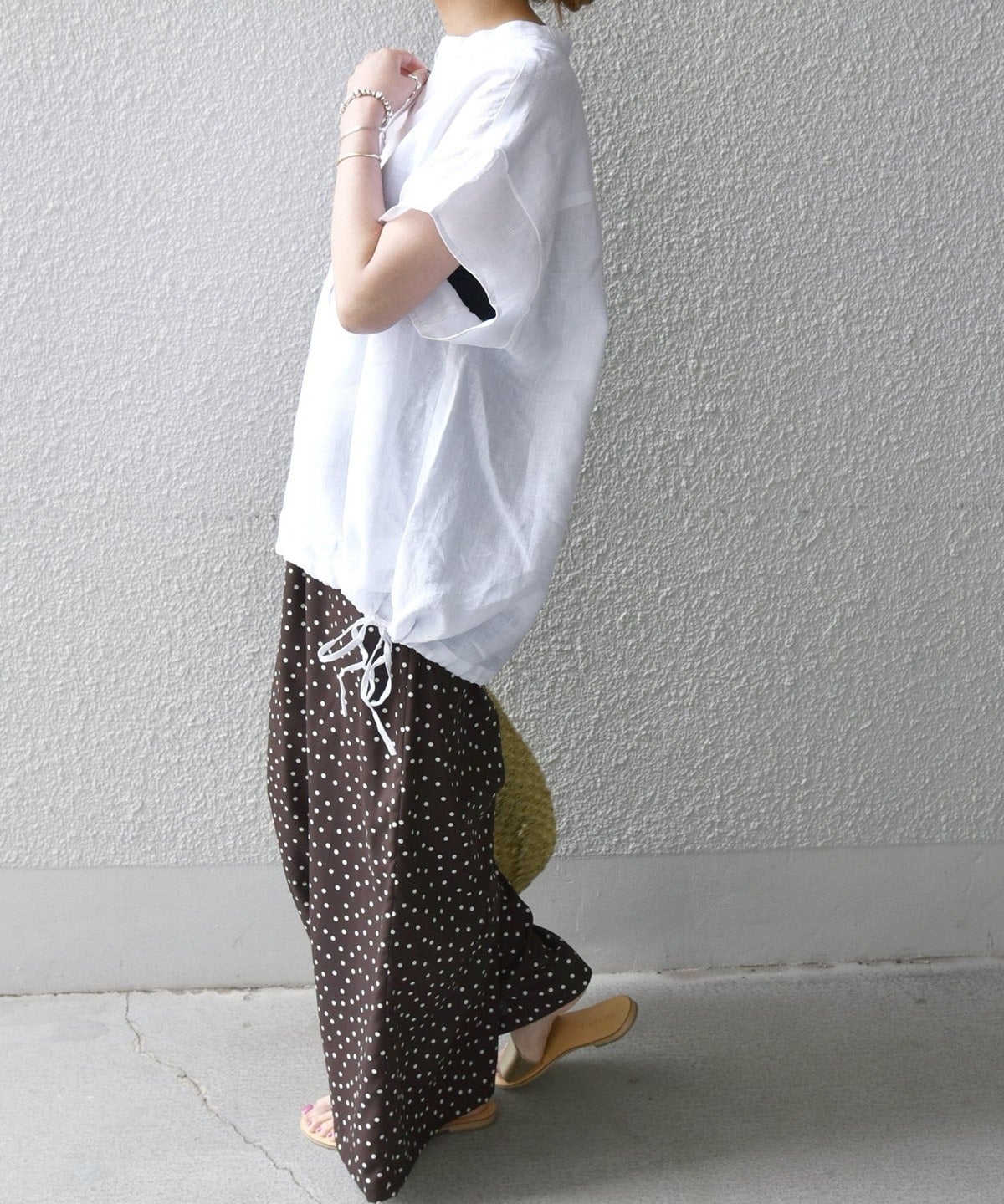 スタイリングに合わせてギュッと絞ってブラウジングしたり、緩めてチュニックのようなシルエットでもご着用いただけます。