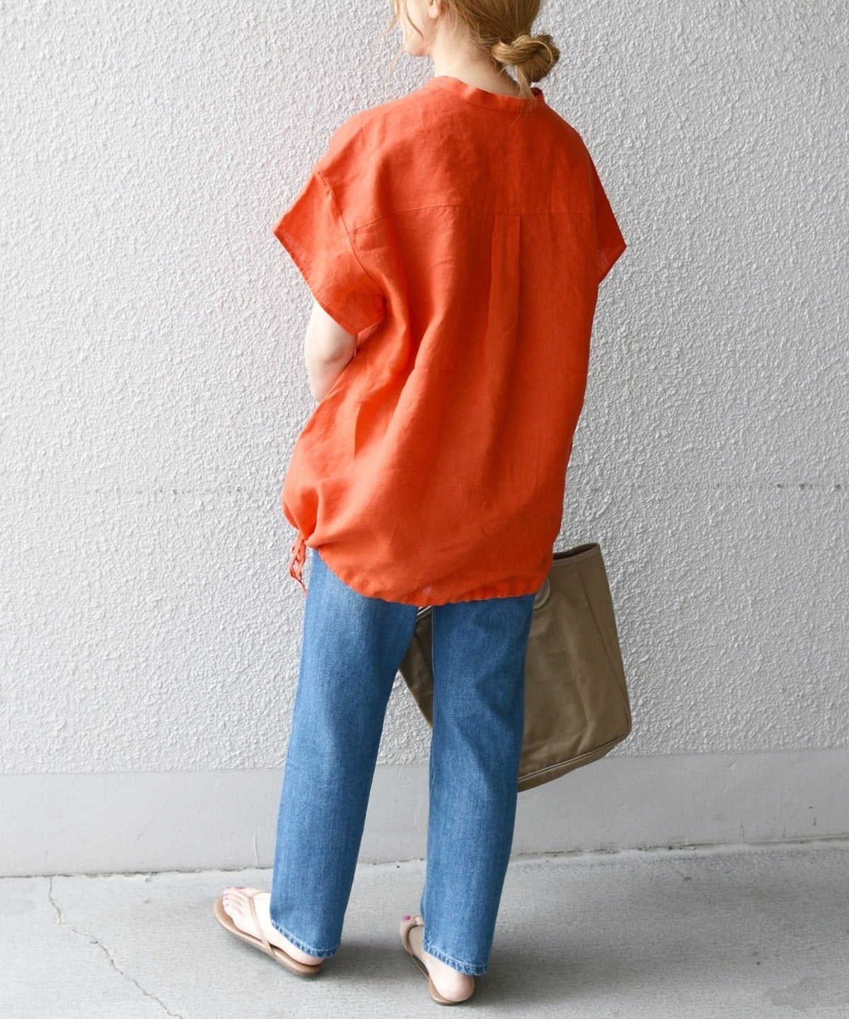 スタイリングに合わせてギュッと絞ってブラウジングしたり、緩めてチュニックのようなシルエットでもご着用いただけます。