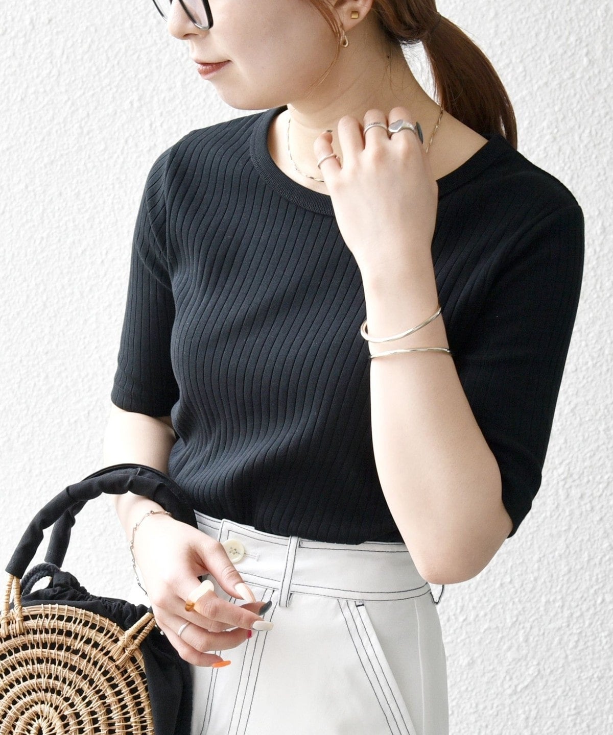 程よい肉感がポイントのSHIPS any定番のテレコ素材のハーフスリーブTEE。
