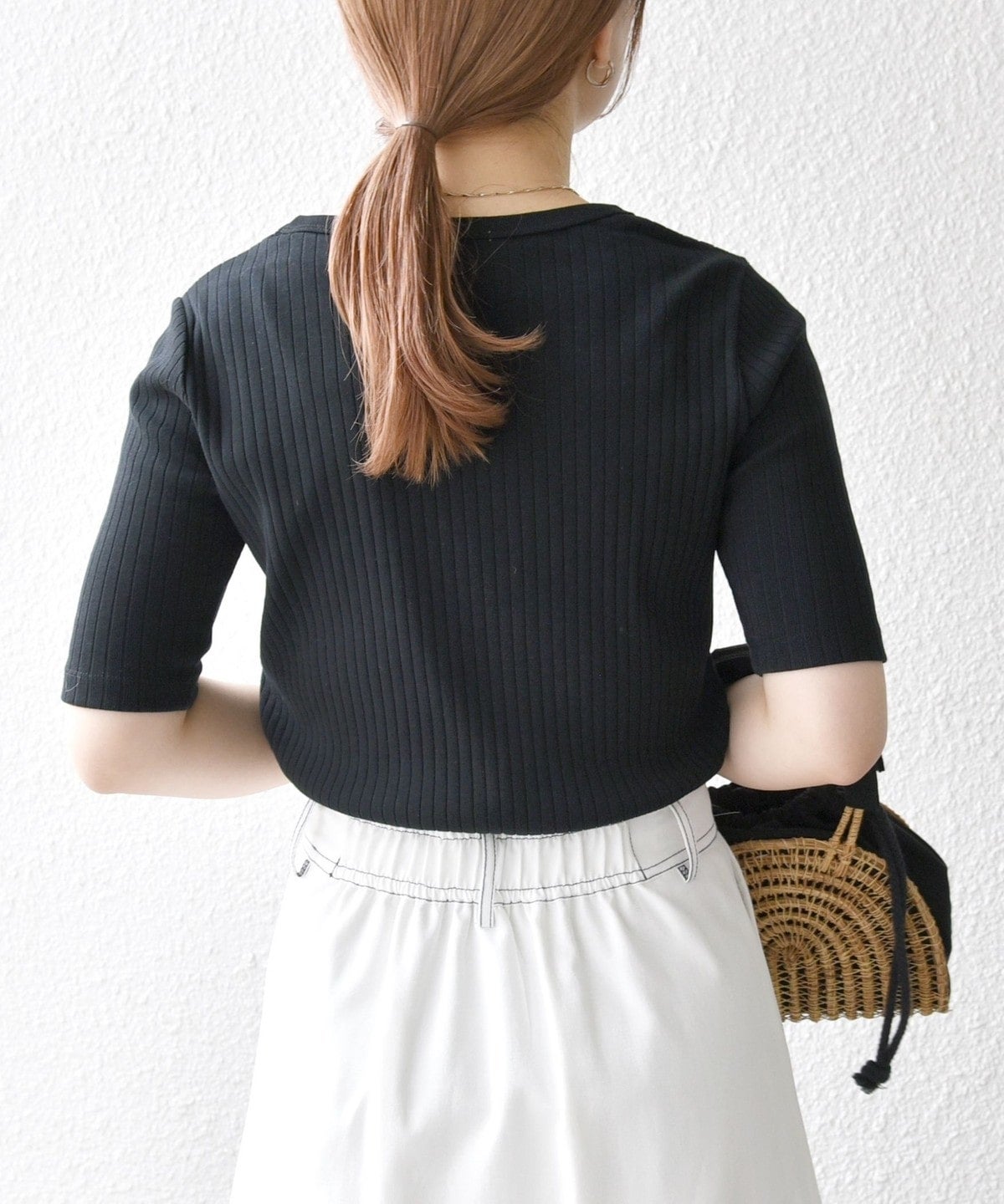 SHIPS any:〈洗濯機可能〉テレコ リブ ハーフスリーブ TEE