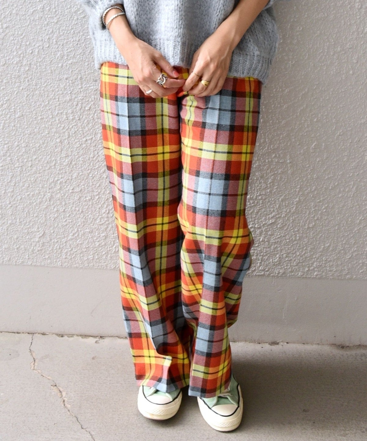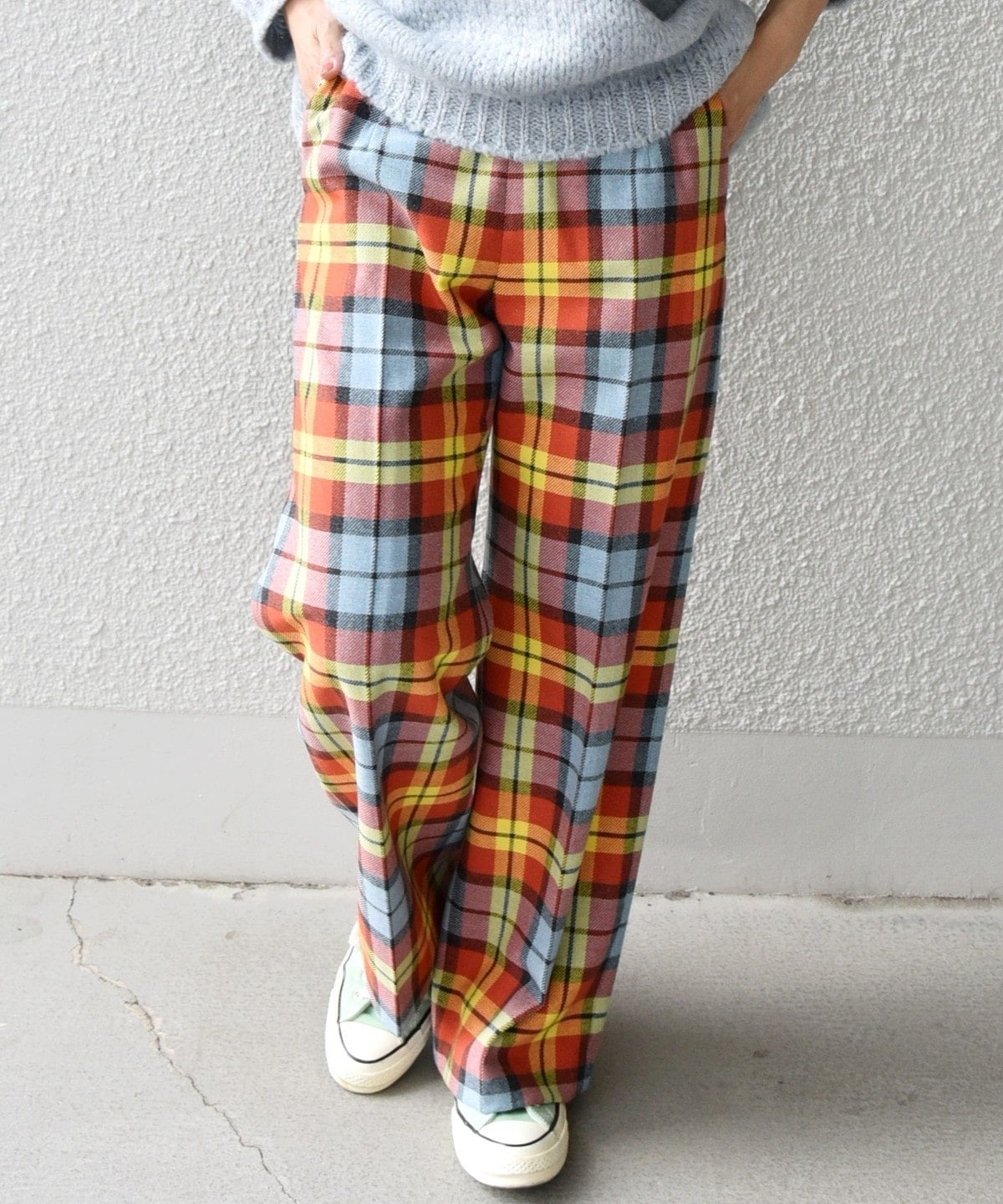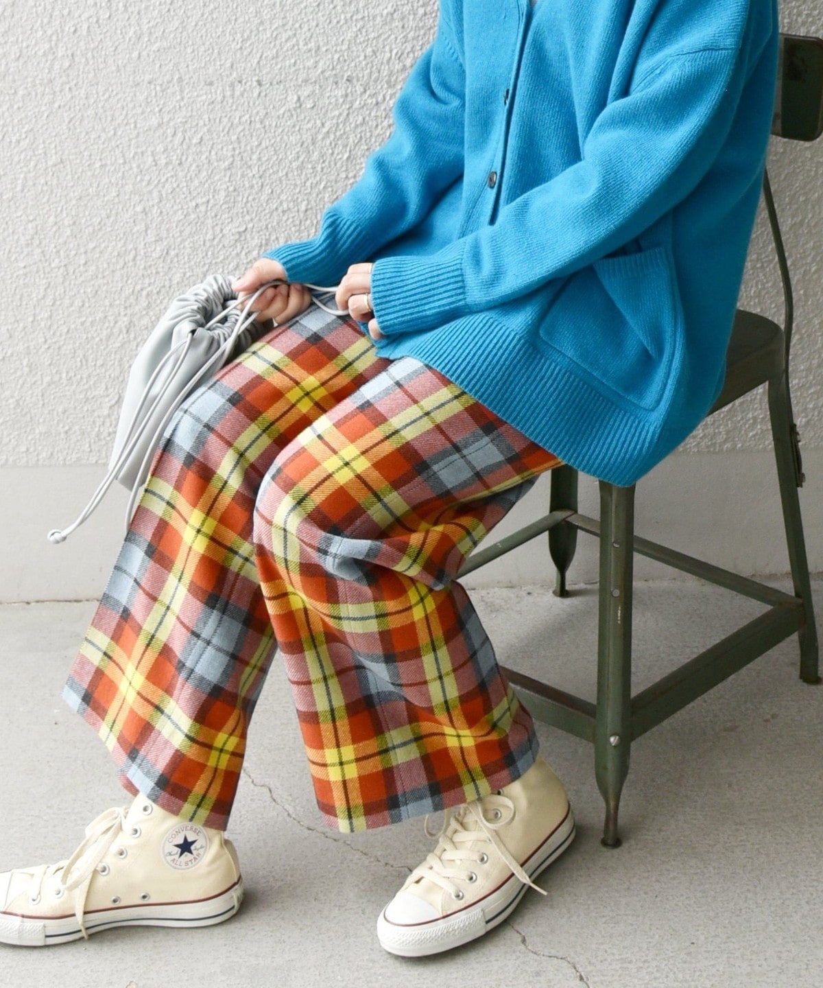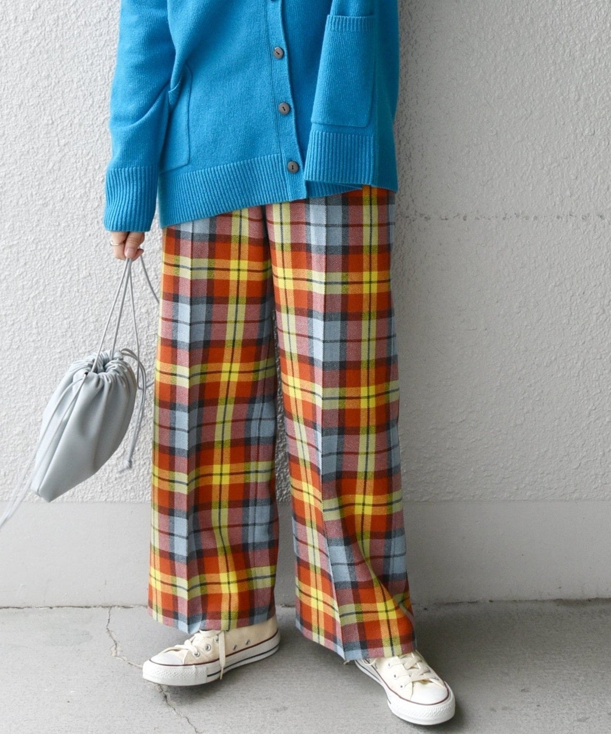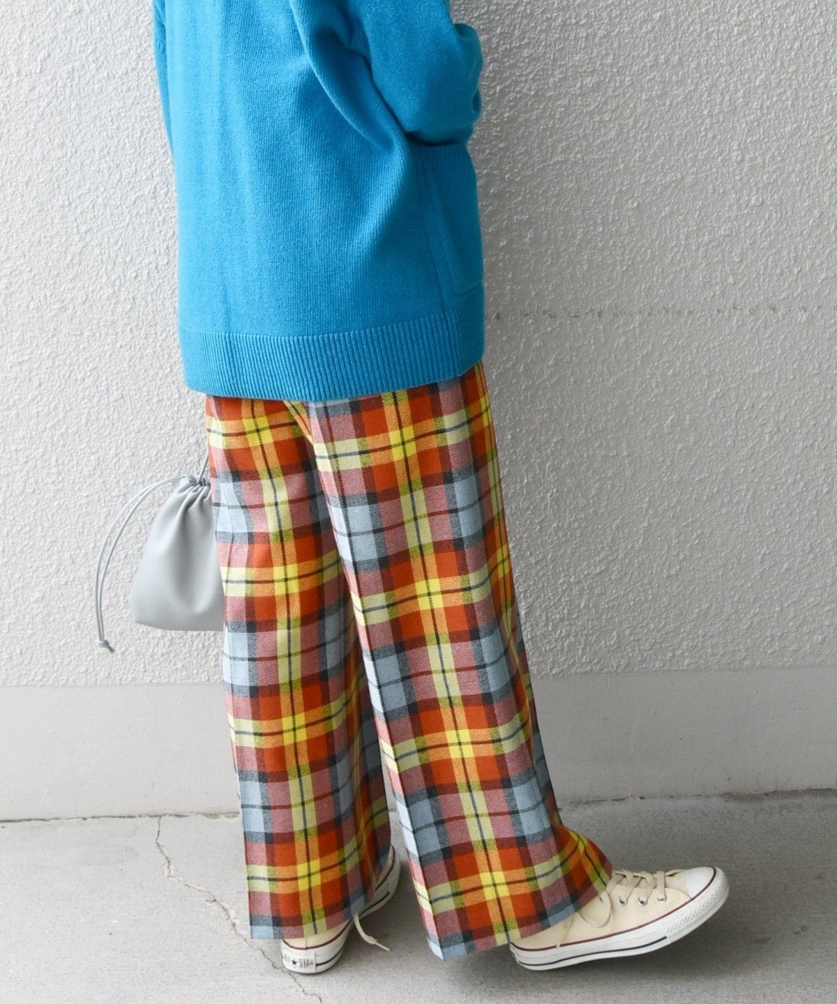 SHIPS anyオリジナルカラーの大胆な配色のチェックが目をひくウィンターマリンテイストのワイドパンツです。