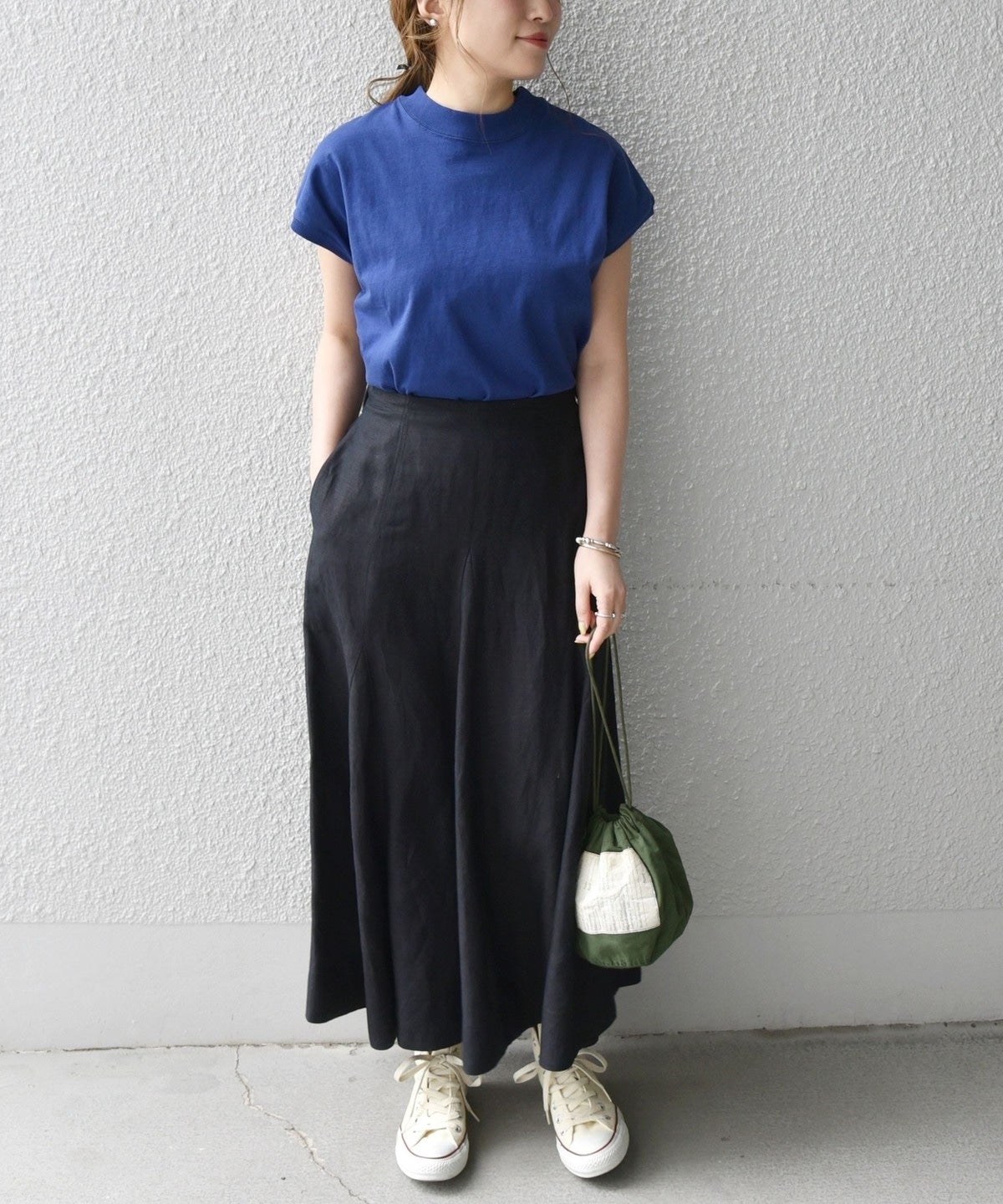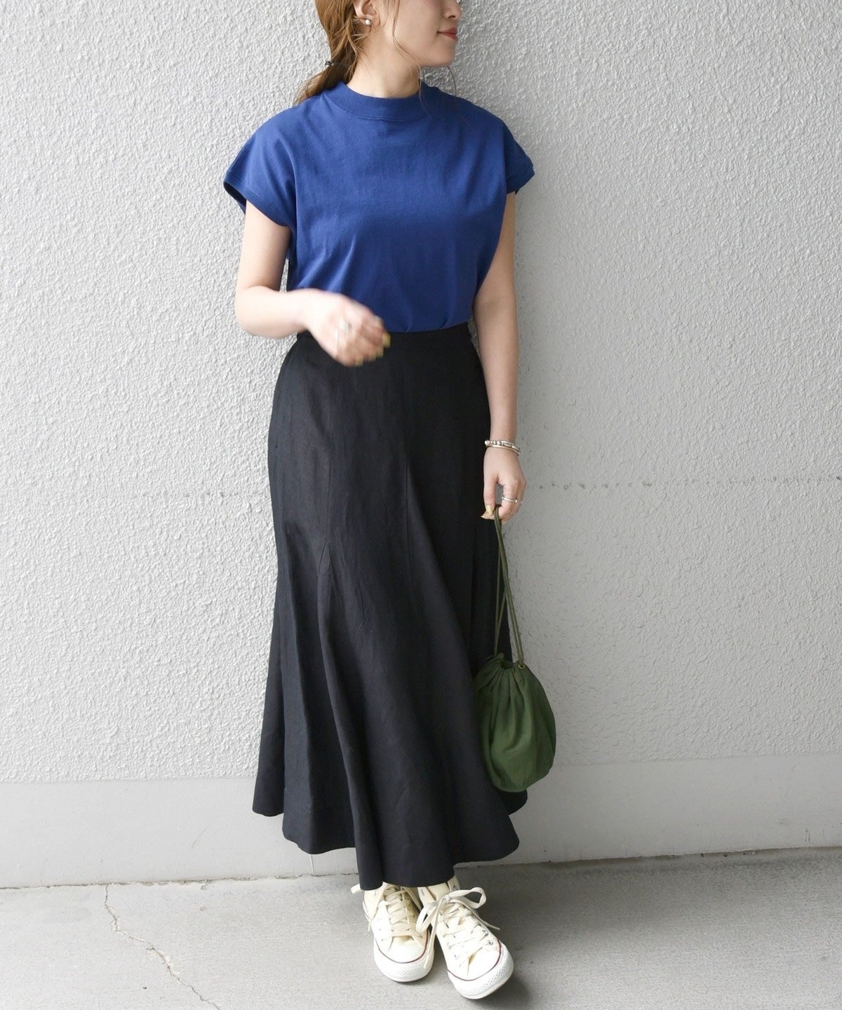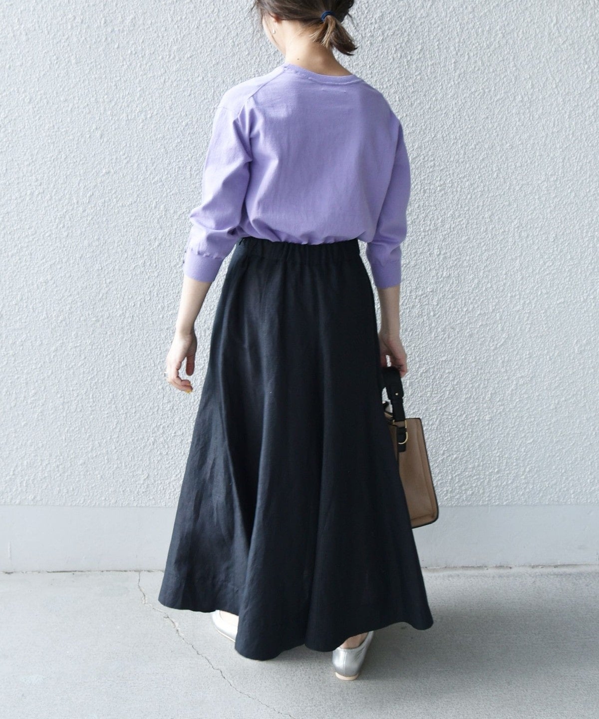 腰回りはすっきりとしたデザインなのでオーバーサイズのトップスを合わせても◎